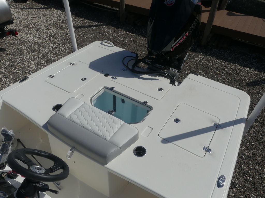 Thanks to the Rapid Planing System™ transom, the skiff delivers enhanced rear lift for quicker, smoother takeoffs in shallow conditions. From bow to stern, the boat is rock-solid, providing edge-to-edge stability that makes fishing more comfortable and efficient. Six vertical rod holders keep your gear within reach, while additional storage under the front deck ensures everything stays organized. Trim tab provisions and an optional poling platform add versatility, making this skiff a serious inshore threat.