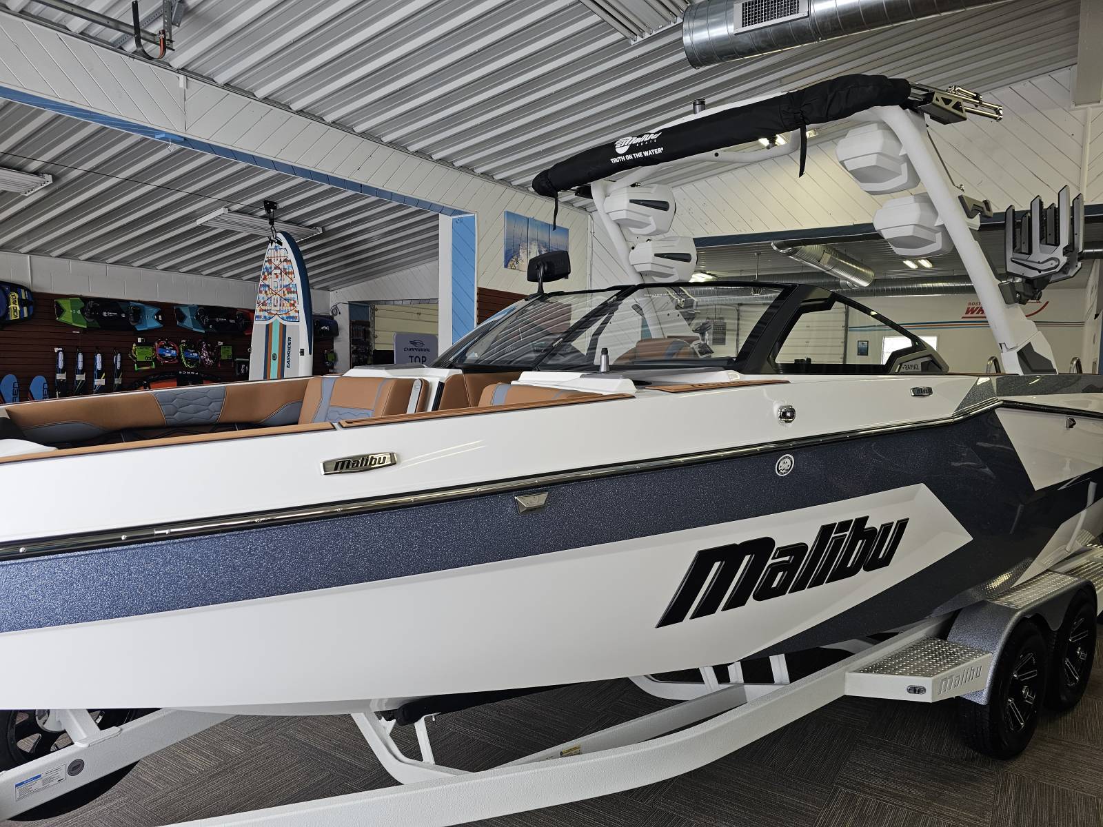 2026 Malibu 24 MXZ The 2026 Malibu 24 MXZ is engineered to deliver the best wakes, waves, and overall performance on the water. With Malibu’s signature hull design and premium features, this boat is ideal for wakeboarding, wakesurfing, cruising, and family fun.Whether you’re chasing perfectly shaped surf wakes or enjoying a smooth cruise, the 24 MXZ offers cutting-edge technology, comfort, and style.Highlights:Monsoon M6Di 430HPTandem Axle TrailerSURFGATEPower Wedge III(4) Wet Sounds Rev-12 Tower SpeakersPTM Clamping Board RacksBiminiFull Cover360 Camera SystemPlug'N'Play BallstBow BallastWhy Choose Gull Lake Marine?Gull Lake Marine is West Michigan’s trusted marine dealership, with over 100 years of experience providing fun on the water. Every boat purchase includes:Free Delivery: Within 15 milesOn-Water Orientation: With our trained delivery captainGuaranteed Service: After the saleContact our Sales Department today at Sales@GullLakeMarine.com for more details. Not finding what you’re looking for? View our entire inventory at GullLakeMarine.com or reach out to our team directly.