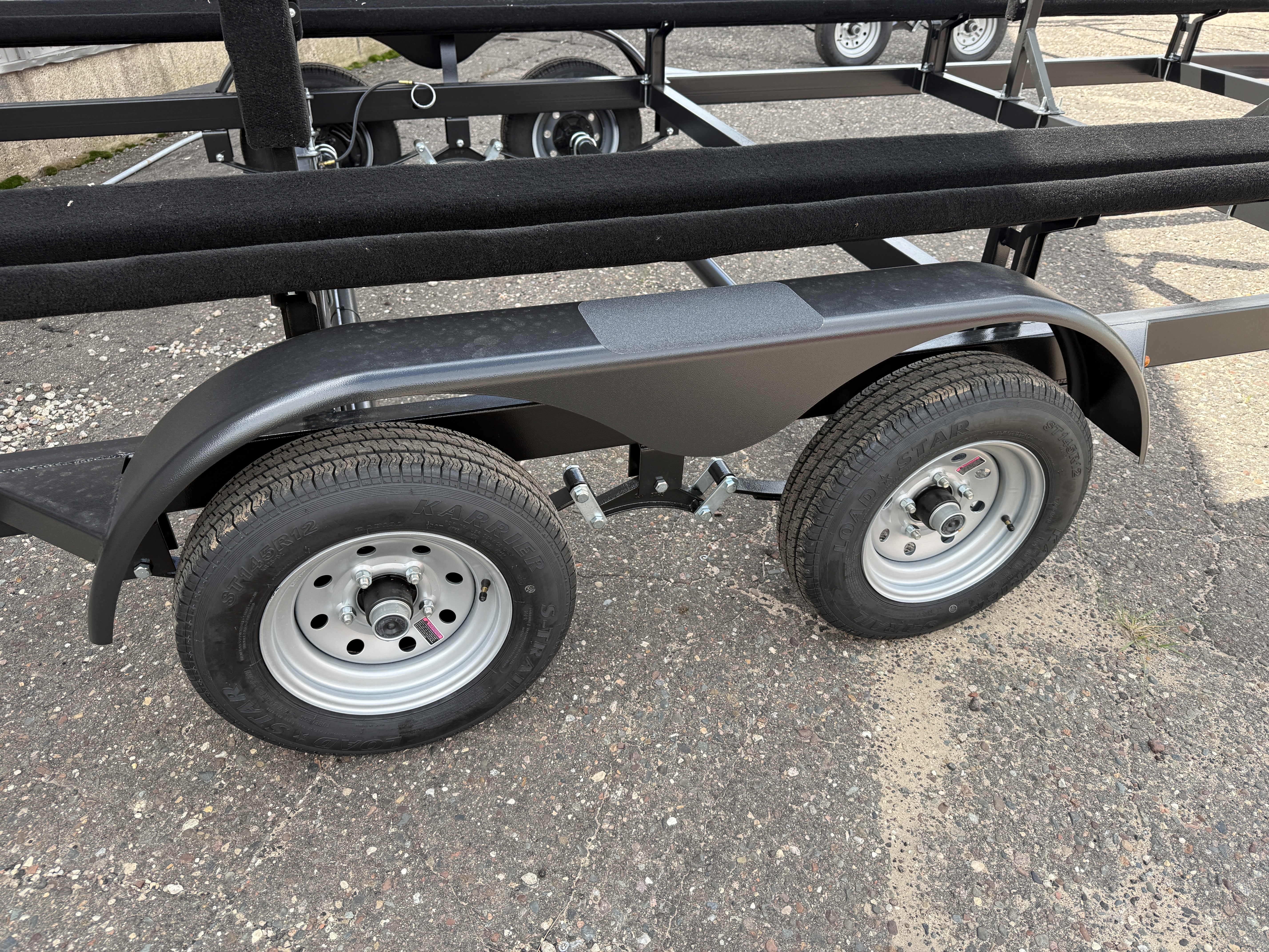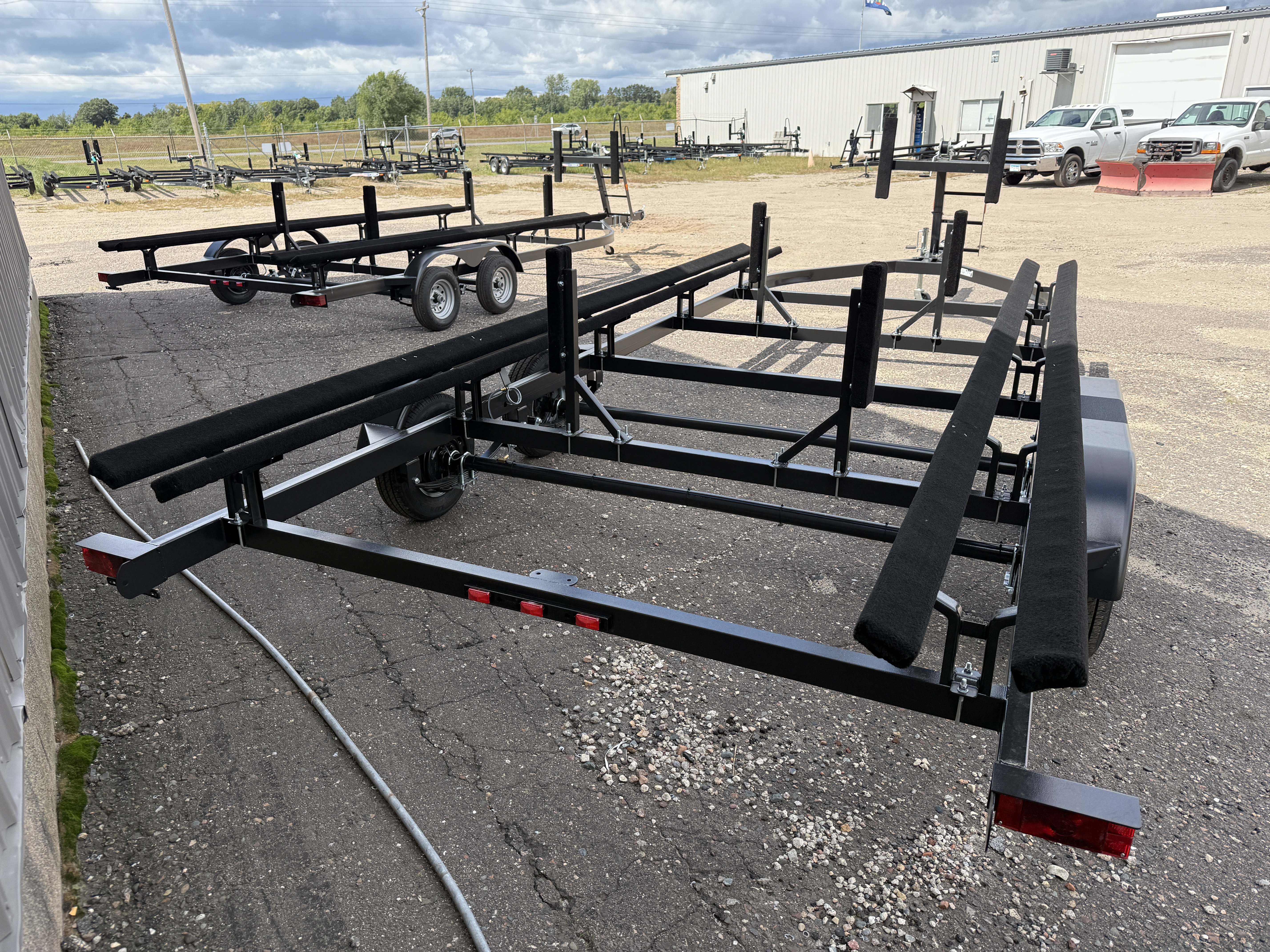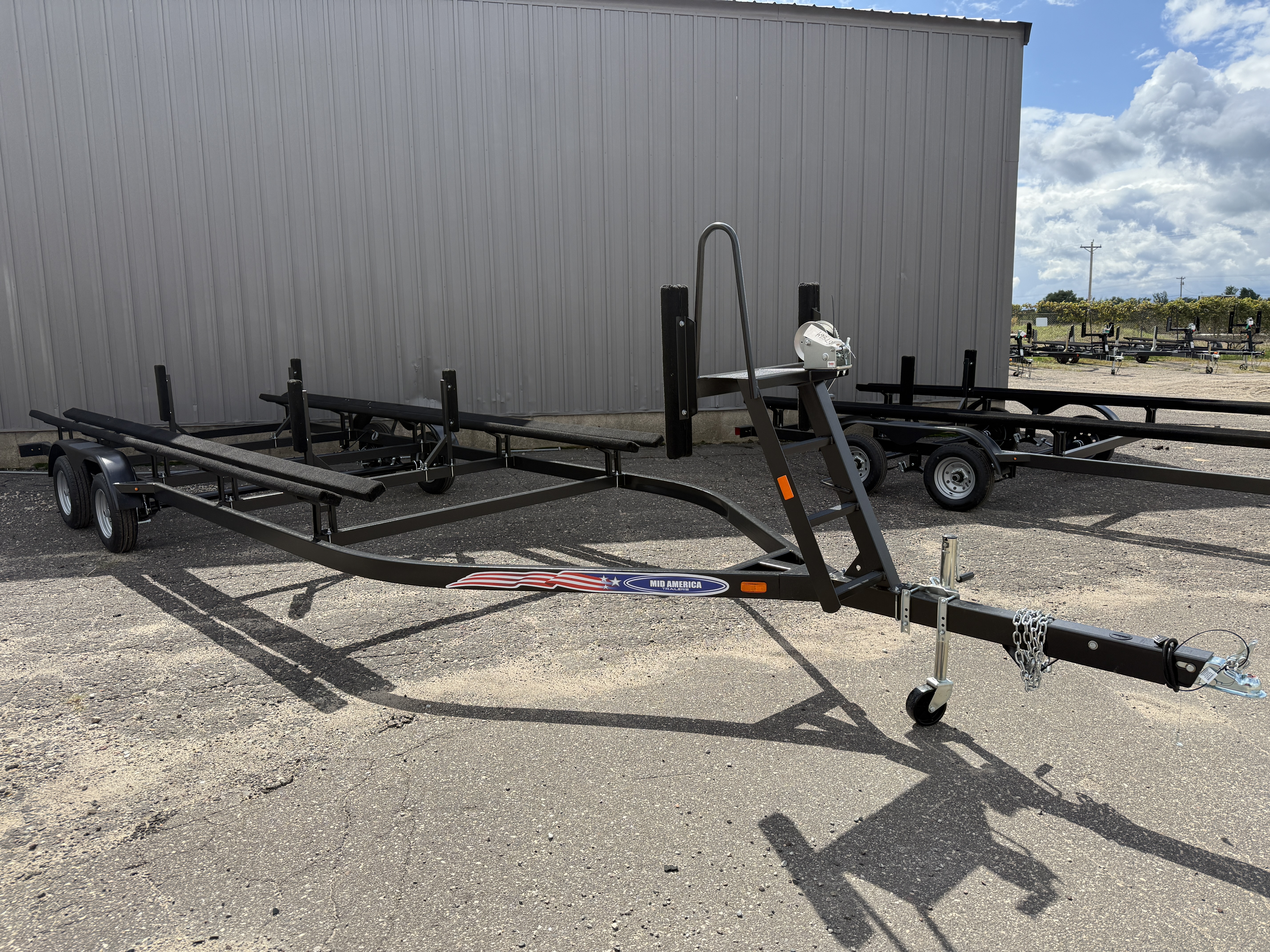 2026 Mid-America PTV22T Pontoon Bunk Tandem Axle Trailer. This 22' Adjustable Pontoon Trailer Has A 1200 LB Wheel Tongue Jack, LED Lights, Surge Brakes, Loading Guides (On Two Tube Trailer), Nice Wide Front Boarding Ladder, Carrying Capacity Of 5030 LBS, Safety Chains, Dual 3500 LB Axle With EZ Lube Hubs.