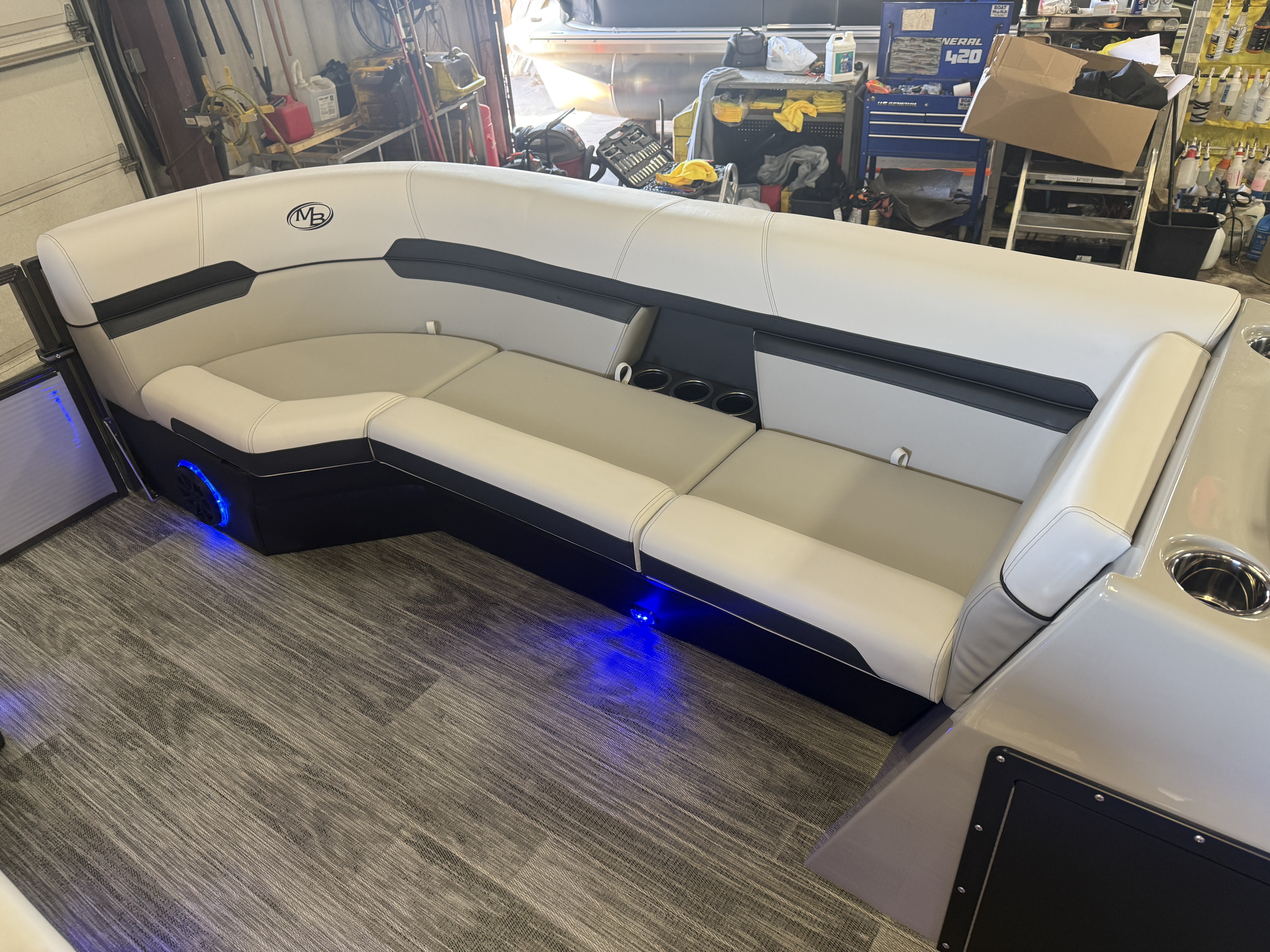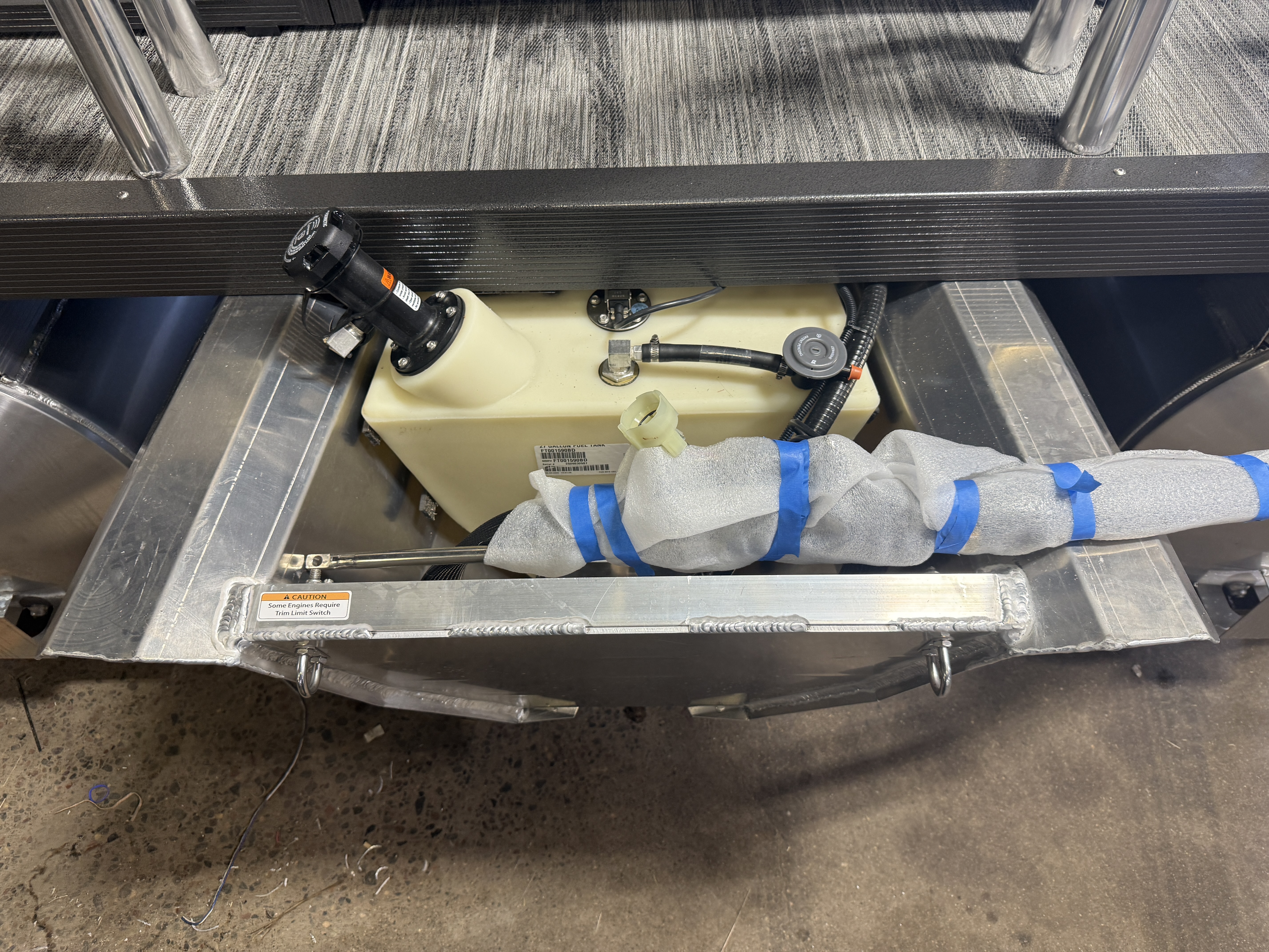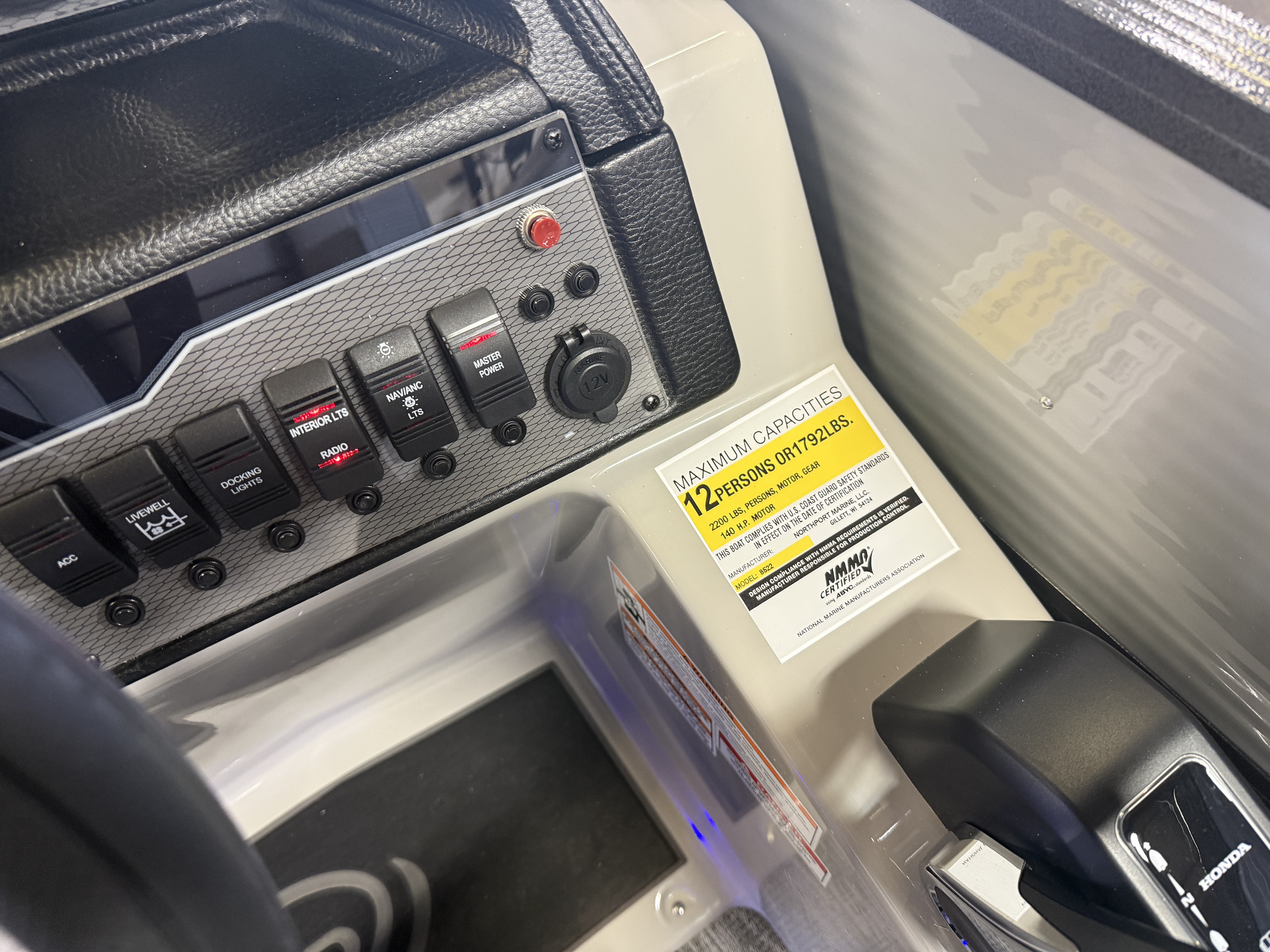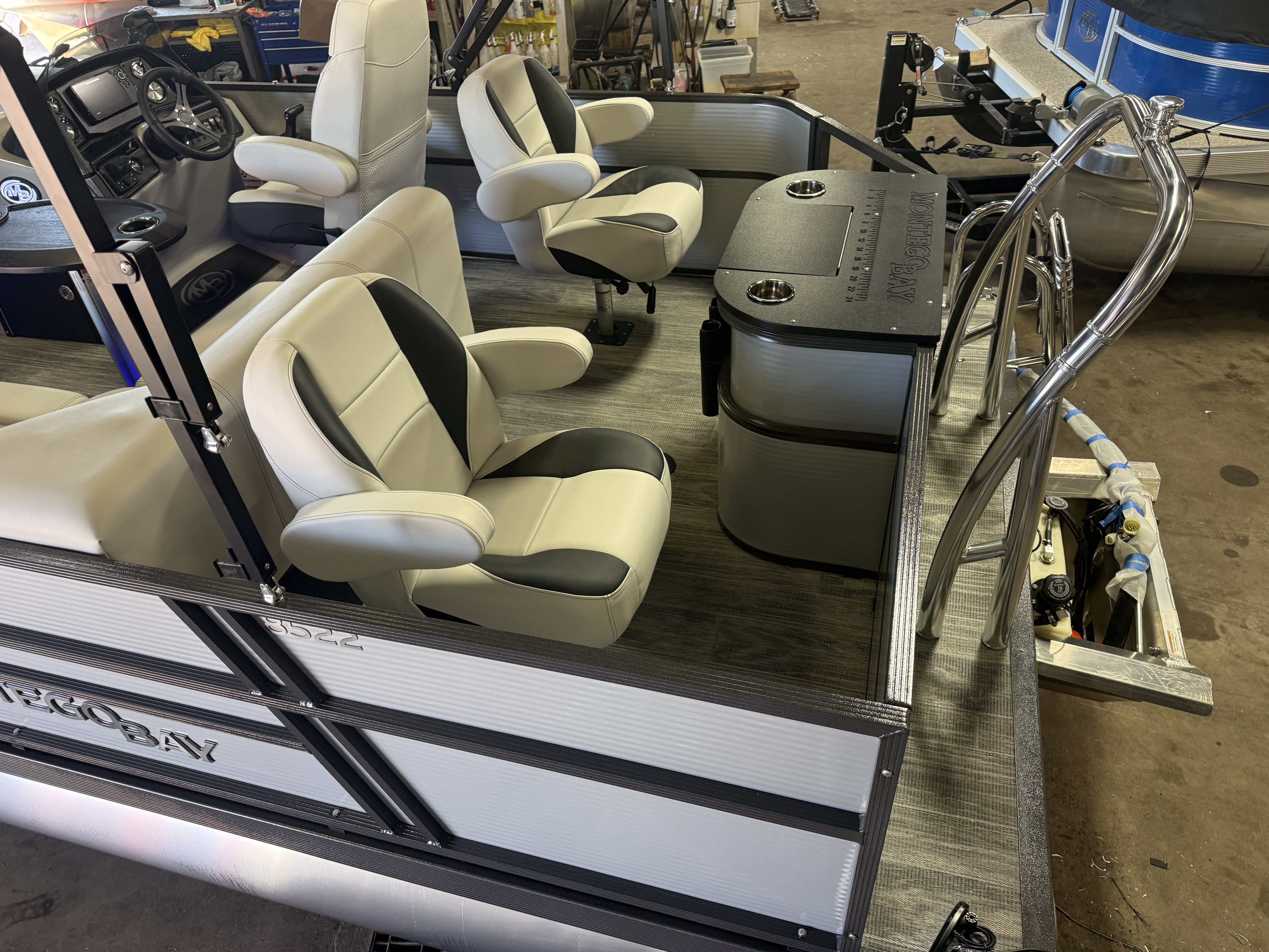 9' Bimini Top, 25" Tubes, Helm Storage, Flip Up Cleats, Changing Station. Rated