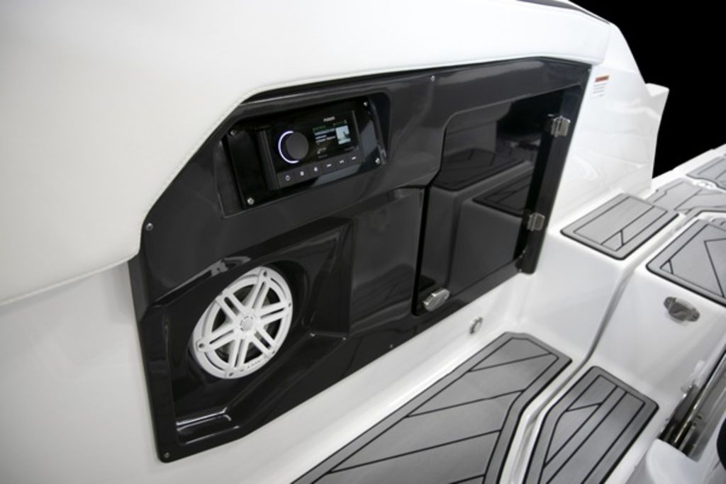 Loaded with an abundance of standard features and amenities, the 255SS features an ergonomically designed helm station with compass, depth sounder with shallow water alarm, digital GPS speedometer, instrumentation with fog resistant digital gauges and low glare night lighting, as well as power assisted tilt steering, making this a captain’s dream. A Fusion satellite ready AM/FM/Bluetooth stereo with built in iPod dock and 4 JL audio speakers, 8 stainless steel drink holders, 12V courtesy lighting, 48 court carry-on cooler, and telescoping and recessed swim ladder help to complete the package, making this the perfect vessel for all your on the water adventures