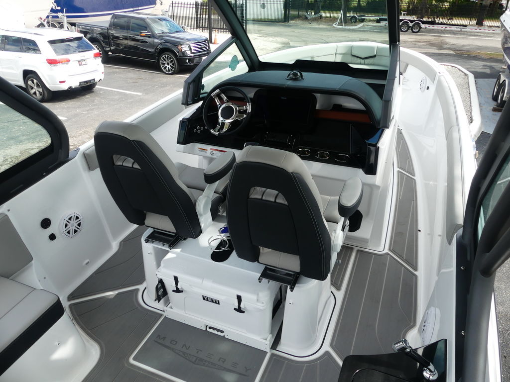 The Monterey Elite 25 OB blends luxury and performance in a sleek, single-outboard design. Built for comfort and entertaining, it features spacious seating, a fiberglass hardtop, ample storage, and a wet bar. Powered by a single engine delivering up to 350 HP, and riding on Monterey’s SVT hull, it offers a smooth, confident ride ideal for coastal cruising in true Monterey style.
