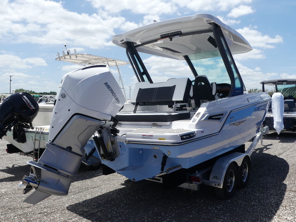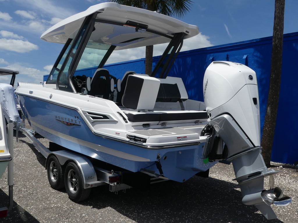 The Monterey Elite 25 OB blends luxury and performance in a sleek, single-outboard design. Built for comfort and entertaining, it features spacious seating, a fiberglass hardtop, ample storage, and a wet bar. Powered by a single engine delivering up to 350 HP, and riding on Monterey’s SVT hull, it offers a smooth, confident ride ideal for coastal cruising in true Monterey style.