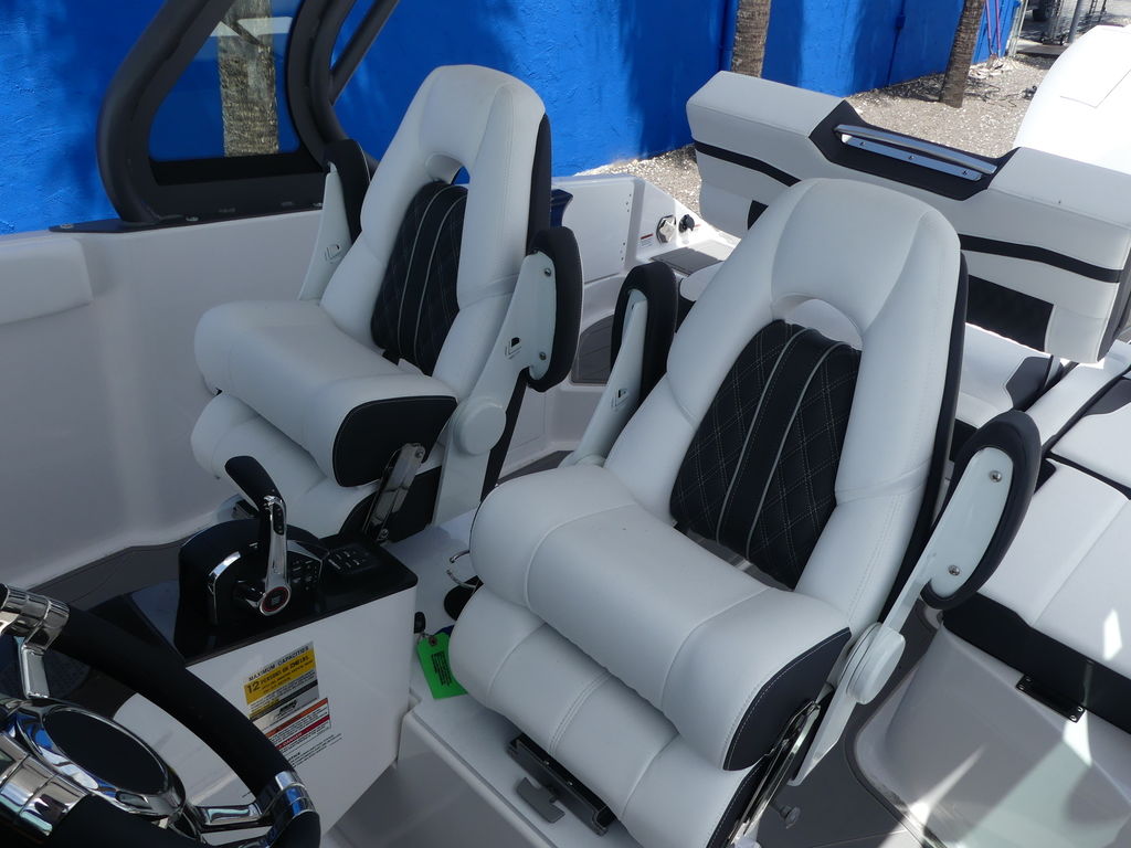 - Port & Starboard Helm Seats, w/Swivel Base, Slider & Flip-Up Thigh Rise, Fold Down Armrest