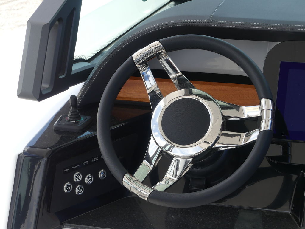 - Steering Wheel, Leather Wrapped with Chromed Stainless Spokes