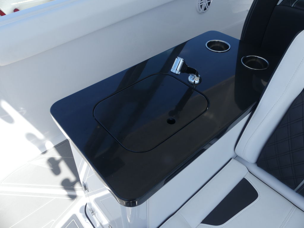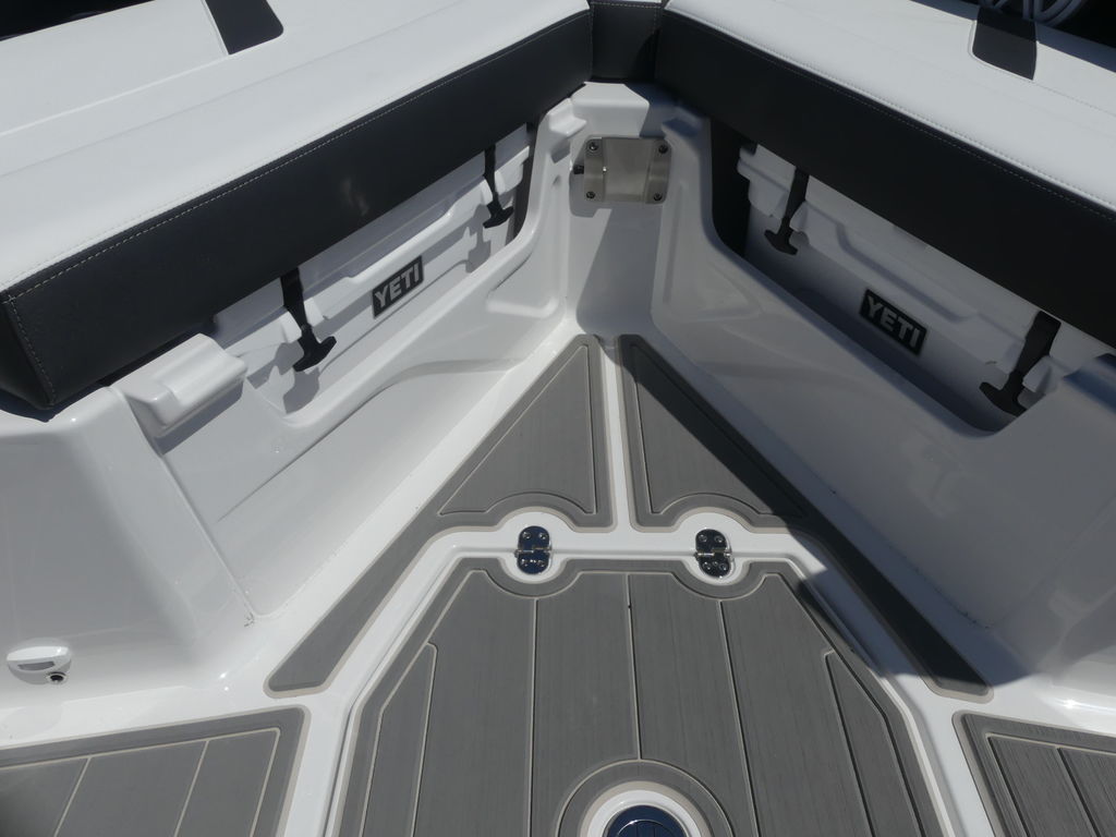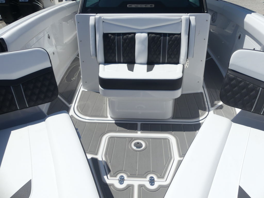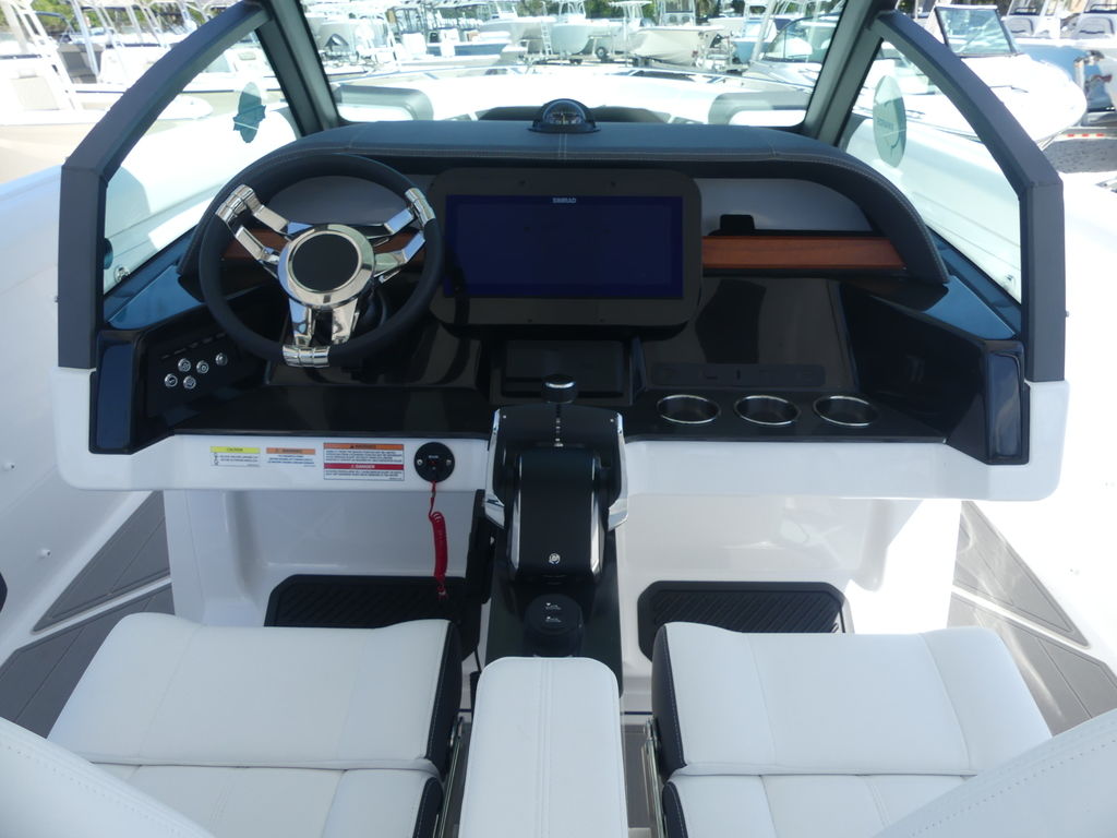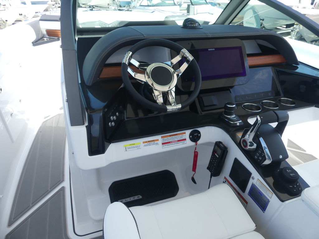 Onboard, the Elite 30 OB is thoughtfully designed to provide a luxurious and social atmosphere for family and guests. The spacious bow seating area features plush, wraparound lounge seating with high-end marine-grade upholstery, creating the perfect place to relax and enjoy the views. The cockpit continues the upscale feel with a well-appointed layout that encourages conversation and comfort, while the helm station is equipped with advanced digital displays, intuitive controls, and excellent visibility for a confident and enjoyable driving experience.
