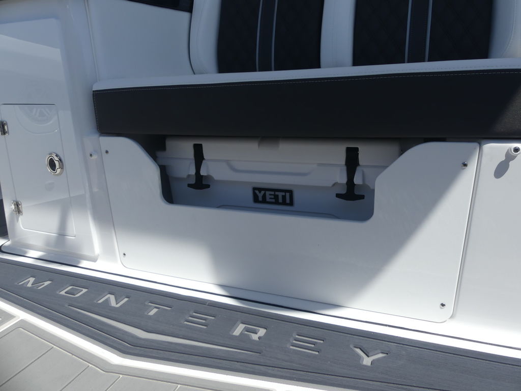 The 2026 Monterey Elite 30 OB is loaded with premium features that enhance every moment on the water. Its advanced hull design ensures a smooth, stable ride even in choppier conditions, while the twin Yamaha 300HP engines provide the power and efficiency needed for both cruising and watersports. A large integrated swim platform with a boarding ladder allows for easy water access, making swimming and sandbar stops effortless. Throughout the boat, abundant storage compartments keep gear organized, while stainless steel hardware adds durability and a refined finish. A premium marine sound system sets the tone for entertaining, and the spacious seating layout ensures everyone on board can relax in comfort during long days on the water.