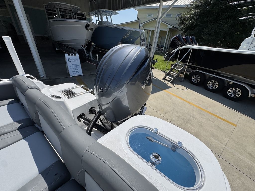 - Plush 3-Across Aft Seating w/Battery Storage (Starboard), Insulated Cooler (Middle), & Cast Net Bucket Storage (Port Side)