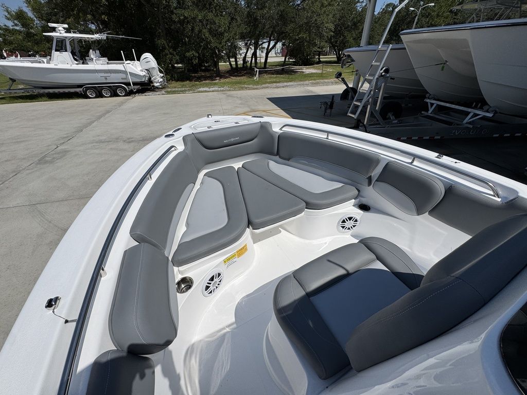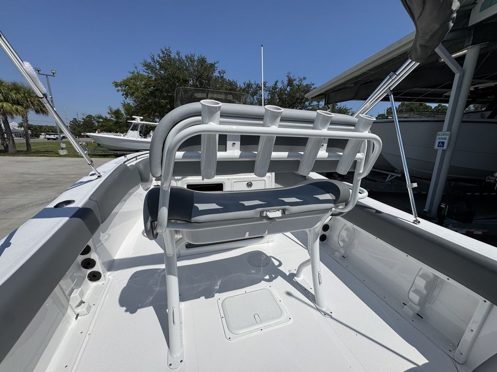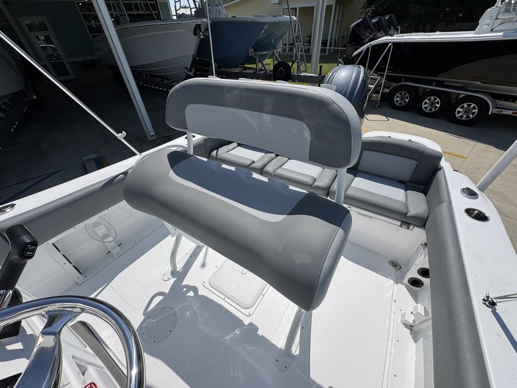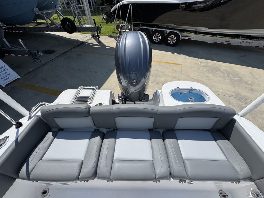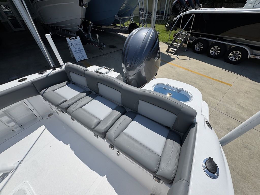 - Plush 3-Across Aft Seating w/Battery Storage (Starboard), Insulated Cooler (Middle), & Cast Net Bucket Storage (Port Side)