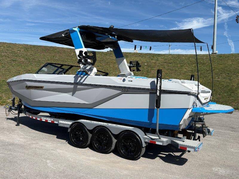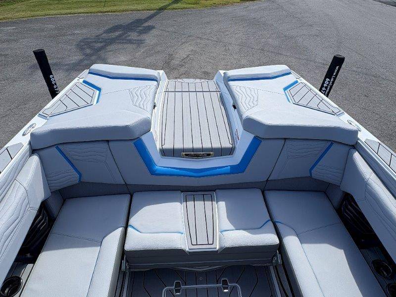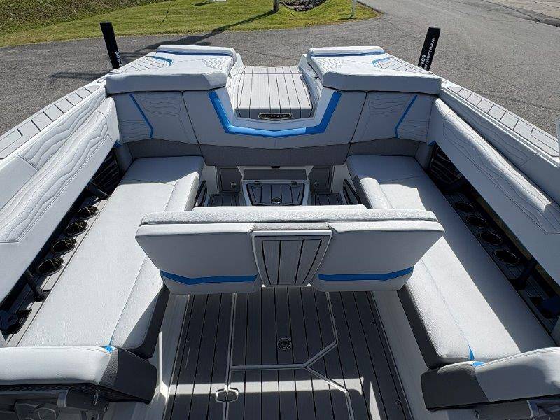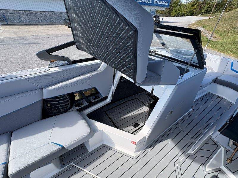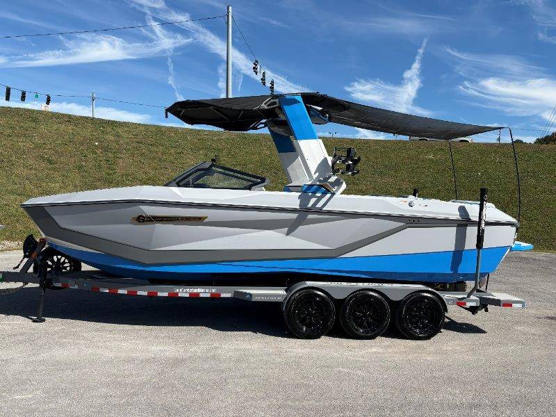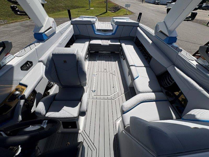 2026 Nautique G25 Standard Features Super Air Nautique G25 Standard Items listed below Nautique Configurable Running Surface with Hydro-Plate Nautique LINC PANORAY with Helm Control, Zero Off GPS Speed Control Nautique Surf System™ with WAVEPLATE & Surf Pipe Exhaust Freshwater Engine Flush System Wake Package(Integrated 2400 lbs Ballast System) Power Management Access with Dual AGM Batteries Lighting-Navigation and Docking Light Array, LED Courtesy Lights Cleats (4), Coolers 2 (Removable), Waste Receptacle Sliding Reversible Stern Seat and Flip-Up Lounge Seat (Port) Transom Seating GoPro™ Ready Rotating Tow Point MyNautique™ Connectivity Platform Helm Command Center with Wireless Charger Fire Extinguisher - Automatic Standard Folding Mirror unless Telescoping Tower is selected Stereo - JL Audio® M6 Series Elite with DSP (Stereo, 6 Speakers, 10in Subwoofer and 8 Channel Amp) if Stereo JL Audio® M6 Series Studio Elite (Wavefront) not selected Flight Control Tower (Textured Finish) with Nautique Awareness Camera if Flight Control Tower Actuated or Telescoping Tower is not selected Rotating Wakeboard/Wakesurf Racks if Nautique Strapless Board Racks is not selected PRICING AND OPTIONS Packages (Included in Product Price) Super Air Nautique G25 Engines ZZ8S 630HP - 6.2L Supercharged/Direct Injection Tower Accessories Extended Sun Shade - Aft (Telescoping) Tower Accessories Extended Sun Shade - Forward (Telescoping) Tower Accessories Telescoping Flight Control Tower System Tower Accessories Tower Prep Kit JL Audio M Series Studio(Pre-Wired 8 Channel Amp) Maps US-Canada Battery System Battery Maintenance System 110 (Integrated Charger-Dual Battery) Cover Cover - Platform Cover Cover-Telescoping Tower Towable/Mooring w/Anti-Pooling(TowerDown) Options Ballast - Supplemental (Additional 1,200 lbs) Options Heater with Defroster Options Ladder - Platform Access Options Lights - Enhanced Courtesy Lighting Package Options Lights - Underwater Options LINC Panoray - Navionics Maps Options LINC Panoray - Paddle Wheel for River Mode Options Nautique Integrated Steering Assist Options Phender Pro (6) - Boat Fender Attachment System Options Pillows 1 Set (2 Per Set) Options Surf Select with Surf Switch Options Wireless Chargers - Magnetic, Pockets and Glovebox Seating Seating - Bow Armrests (Retractable) Seating Seating - Heated Driver's and Loveseat Stereo Stereo - JL Audio M6 Series Studio Elite (Wavefront) Stereo Stereo - Transom Mounted Remote Control Chromax Badging Legacy Gold Chrome Finish with Illusion Frost Interior Deck Color MYSTIC WHITE Forward Accent Color MYSTIC WHITE Main Stripe Color HAZE GREY