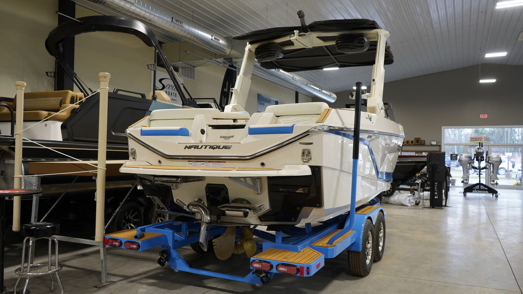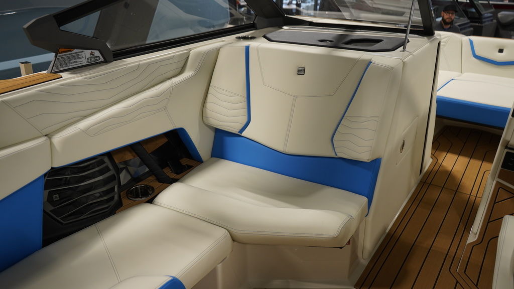 - Quickly slide out and flip up the reversible stern seat on the Super Air Nautique G23 so you can comfortably watch all the action. When it’s stowed away, it also acts as a lounge seat and Nauteak Non-Skid covered step to get to the back-transom area of the G23.