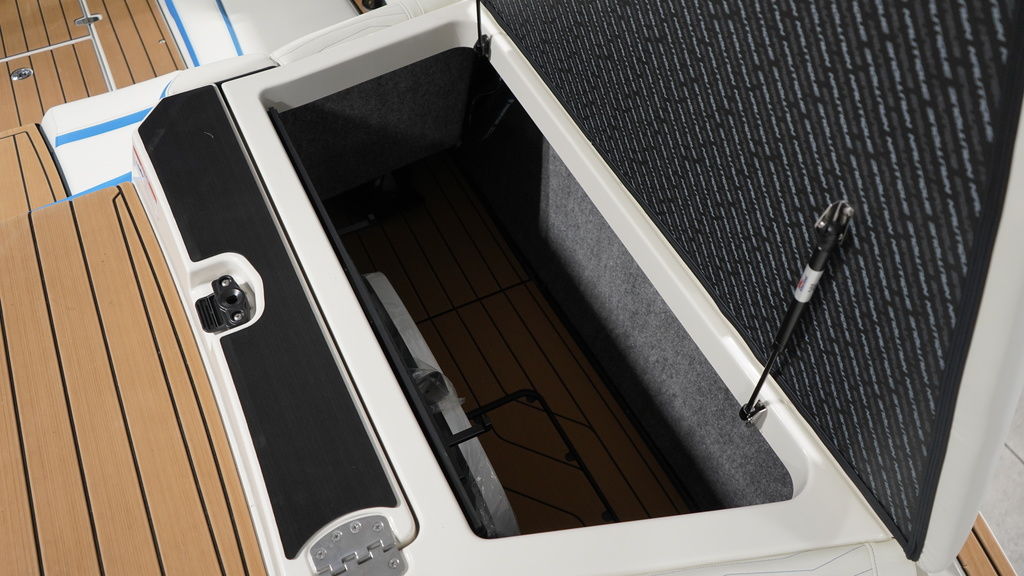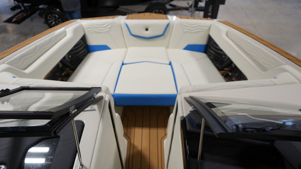 BOW- The bow of the G23 is an amazing place to spend a gorgeous summer day. Two lounge seats with optional flip-up armrests on either side complete this comfortable place to lounge. Flip up the seats for storage underneath, utilize the cup holders in various places and let the JL Audio® speakers keep the vibe alive with its own zone for your convenience.
