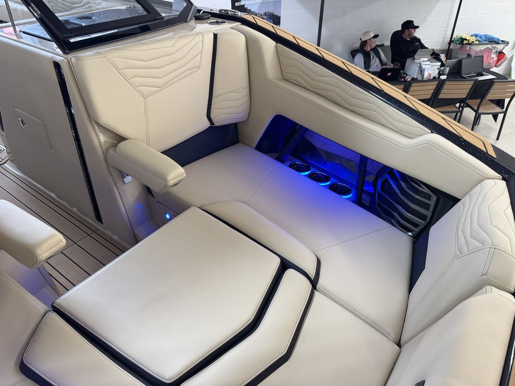 BOW- The bow of the G23 is an amazing place to spend a gorgeous summer day. Two lounge seats with optional flip-up armrests on either side complete this comfortable place to lounge. Flip up the seats for storage underneath, utilize the cup holders in various places and let the JL Audio® speakers keep the vibe alive with its own zone for your convenience.