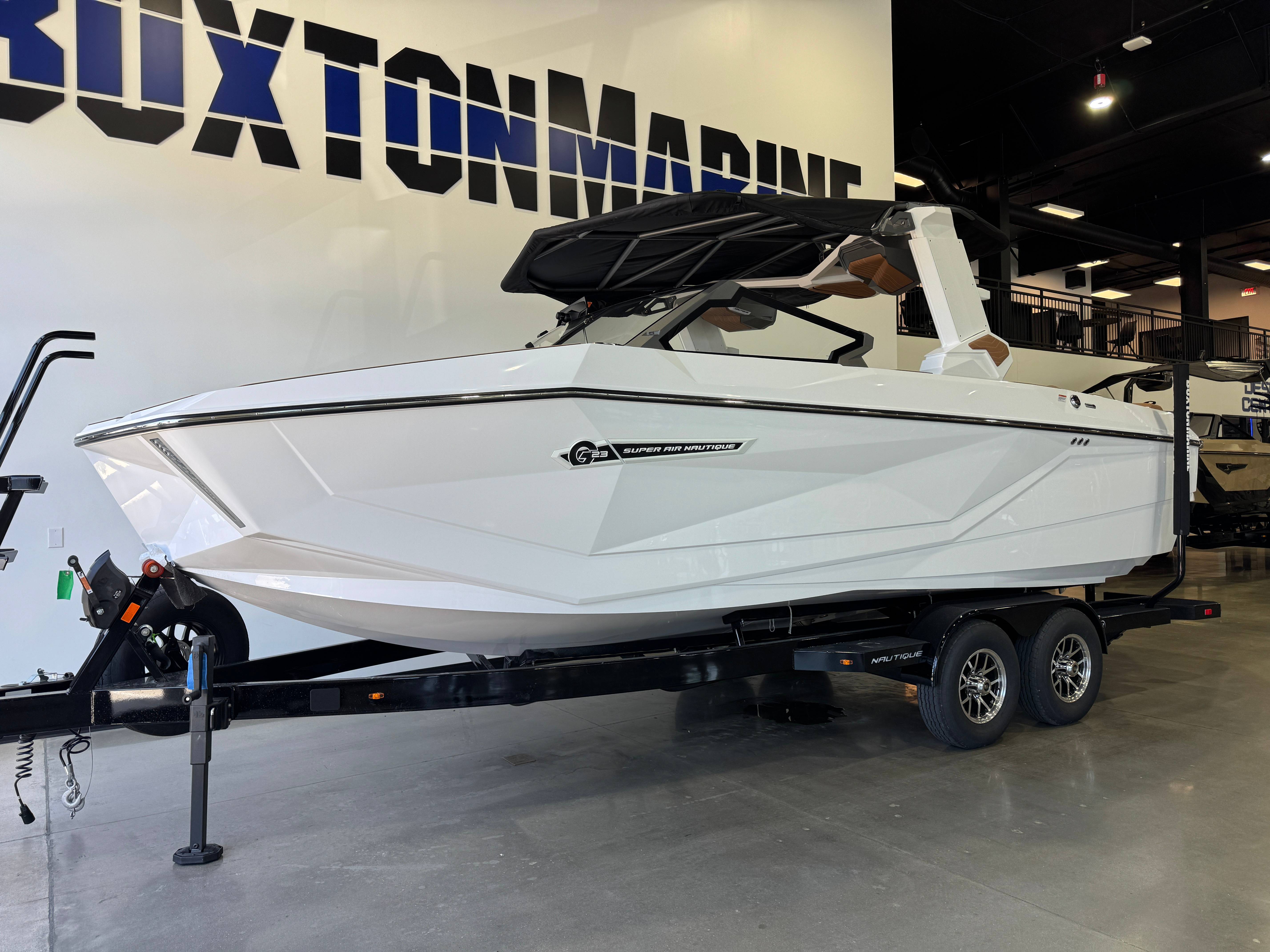 2026 Super Air Nautique G23 ZZ6 450HP - 6.2L Direct Injection Telescoping Flight Control Tower System Tower Prep Kit JL Audio M Series Studio(Pre-Wired 8 Channel Amp) Maps US-Canada Battery Maintenance System 110 (Integrated Charger-Dual Battery) Cover - Platform Cover-Telescoping Tower Towable/Mooring w/Anti-Pooling(TowerDown) Air Pump Inflator System Ballast - Supplemental (Additional 1,200 lbs) Ladder - Platform Access Lights - Enhanced Courtesy Lighting Package LINC Panoray - Navionics Maps Nautique Integrated Steering Assist Wireless Chargers - Magnetic, Pockets and Glovebox Seating - Actuated Helm Seat, Height Adjustable Seating - Bow Filler Cushion Seating - Heated Driver's and Loveseat Stereo - JL Audio M6 Series Studio Elite (Wavefront) Stereo - Transom Mounted Remote Control Air-Dam Walk-Thru Air-Dam (Smoked Acrylic Pocket Door) 2026 Super Air Nautique G23 Standard Items listed below Nautique Configurable Running Surface with Hydro-Plate Nautique LINC PANORAY with Helm Control, Zero Off GPS Speed Control Nautique Surf System™ with WAVEPLATE & Surf Pipe Exhaust Freshwater Engine Flush System Wake Package(Integrated 2400 lbs Ballast System) Power Management Access with Dual AGM Batteries Lighting-Navigation and Docking Light Array, LED Courtesy Lights Cleats (4), Coolers 2 (Removable), Waste Receptacle Sliding Reversible Stern Seat and Flip-Up Lounge Seat (Port) Transom Seating GoPro™ Ready Rotating Tow Point MyNautique™ Connectivity Platform Helm Command Center with Wireless Charger Fire Extinguisher - Automatic Premium Mirror unless Telescoping Tower is selected Stereo - JL Audio® M6 Series Elite with DSP(Stereo, 6 Speakers, 10in Subwoofer and 8 Channel Amp) if Stereo JL Audio® M6 Series Studio Elite (Wavefront) not selected Flight Control Tower (Textured Finish) with Nautique Awareness Camera if Flight Control Tower Actuated or Telescoping Tower is not selected Rotating Wakeboard/Wakesurf Racks if Nautique Strapless Board Racks is not selected