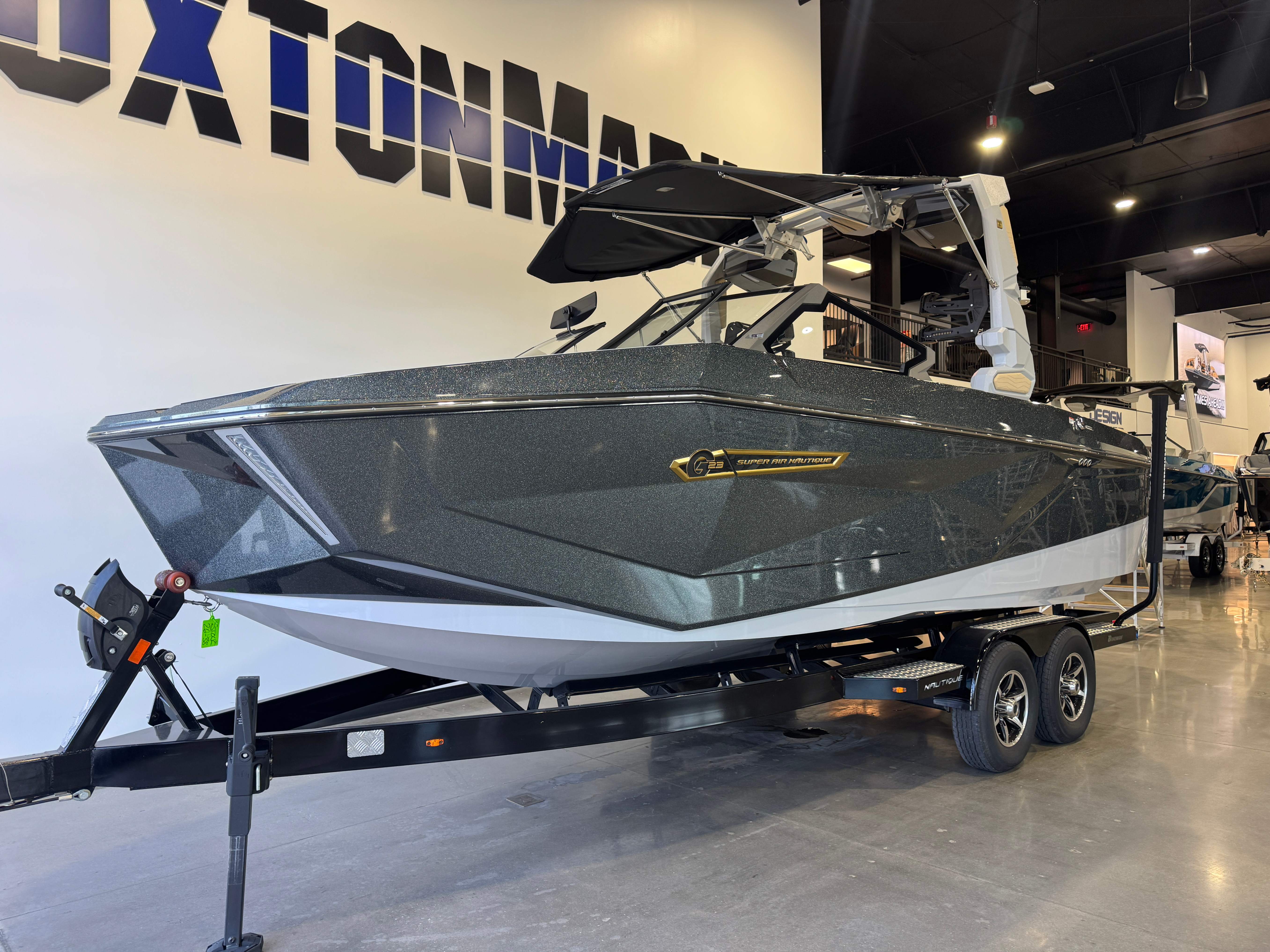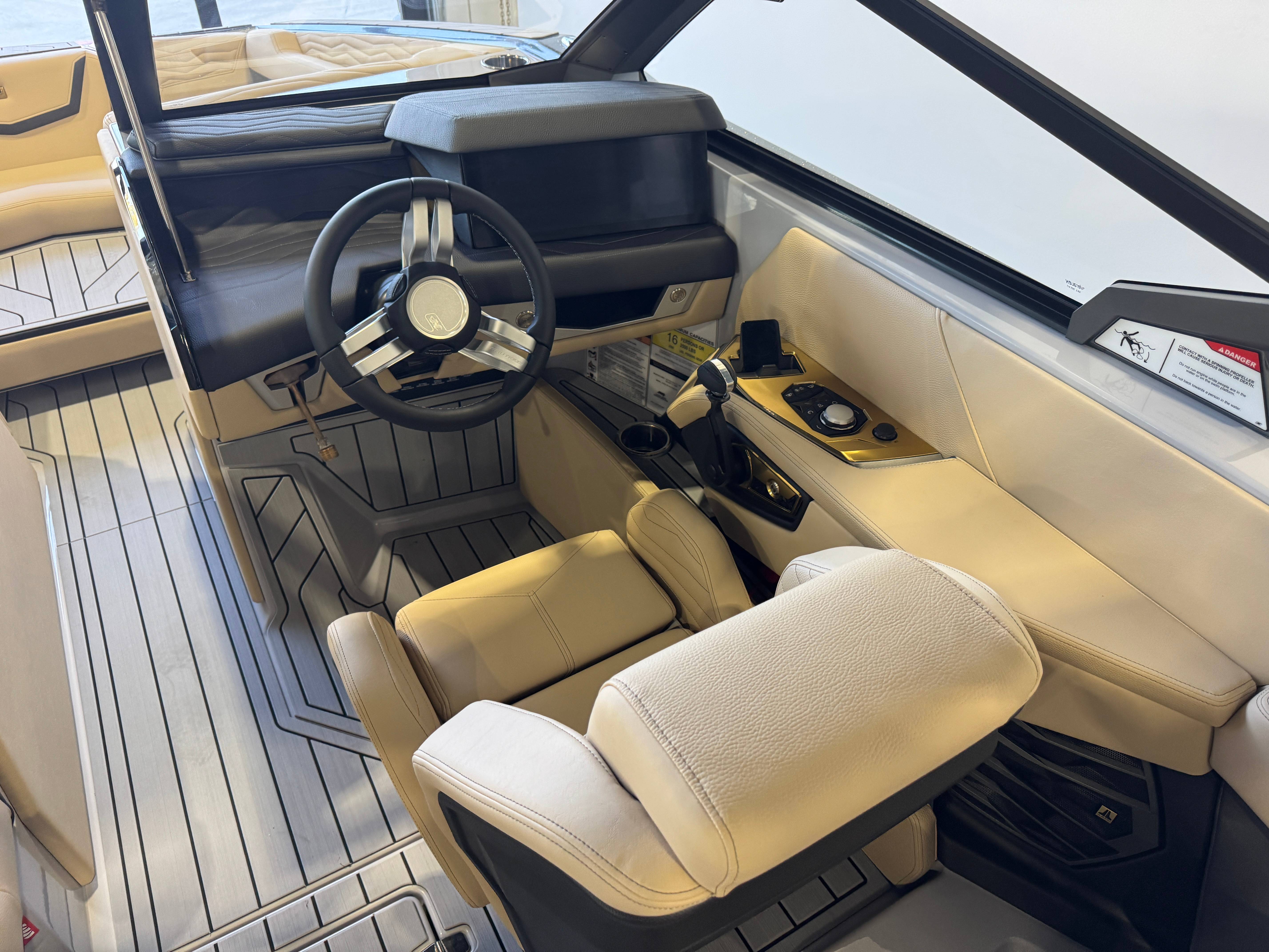 2026 Super Air Nautique G23 ZZ6 450HP - 6.2L Direct Injection Bimini - Tower Mounted Tri-Fold with Surf Pockets Nautique Strapless Board Racks Tower Prep Kit JL Audio M Series Studio(Pre-Wired 8 Channel Amp) Tower Speakers-Dual Spkr Housing JL Audio M6 Series 880x Spkrs(4) Tower Shock 3000N Maps US-Canada Battery Maintenance System 110 (Integrated Charger-Dual Battery) Cover - Platform Cover-Towable/Mooring w/Anti-Pooling(Std or Actuated Tower) Air Pump Inflator System Ballast - Supplemental (Additional 1,200 lbs) Ladder - Platform Access Lights - Enhanced Courtesy Lighting Package LINC Panoray - Navionics Maps Nautique Integrated Steering Assist Tandem Spoke Leather Steering Wheel Wireless Chargers - Magnetic, Pockets and Glovebox Seating - Actuated Helm Seat, Height Adjustable Seating - Bow Armrests (Retractable) Seating - Bow Filler Cushion Stereo - JL Audio M6 Series Studio Elite (Wavefront) Stereo - Transom Mounted Remote Control 2026 Super Air Nautique G23 Standard Items listed below Nautique Configurable Running Surface with Hydro-Plate Nautique LINC PANORAY with Helm Control, Zero Off GPS Speed Control Nautique Surf System™ with WAVEPLATE & Surf Pipe Exhaust Freshwater Engine Flush System Wake Package(Integrated 2400 lbs Ballast System) Power Management Access with Dual AGM Batteries Lighting-Navigation and Docking Light Array, LED Courtesy Lights Cleats (4), Coolers 2 (Removable), Waste Receptacle Sliding Reversible Stern Seat and Flip-Up Lounge Seat (Port) Transom Seating GoPro™ Ready Rotating Tow Point MyNautique™ Connectivity Platform Helm Command Center with Wireless Charger Fire Extinguisher - Automatic Premium Mirror unless Telescoping Tower is selected Stereo - JL Audio® M6 Series Elite with DSP(Stereo, 6 Speakers, 10in Subwoofer and 8 Channel Amp) if Stereo JL Audio® M6 Series Studio Elite (Wavefront) not selected Flight Control Tower (Textured Finish) with Nautique Awareness Camera if Flight Control Tower Actuated or Telescoping Tower is not selected Rotating Wakeboard/Wakesurf Racks if Nautique Strapless Board Racks is not selected