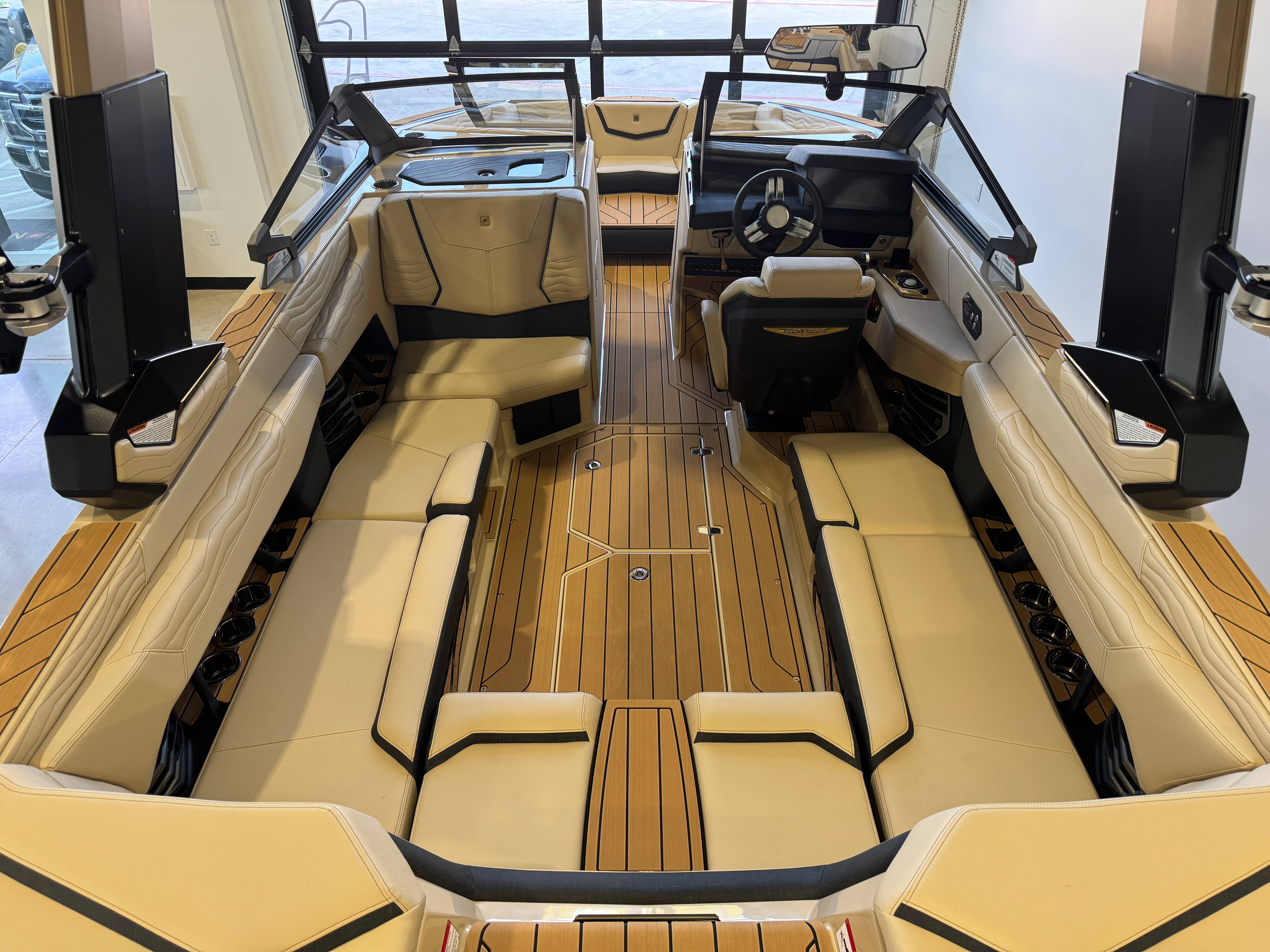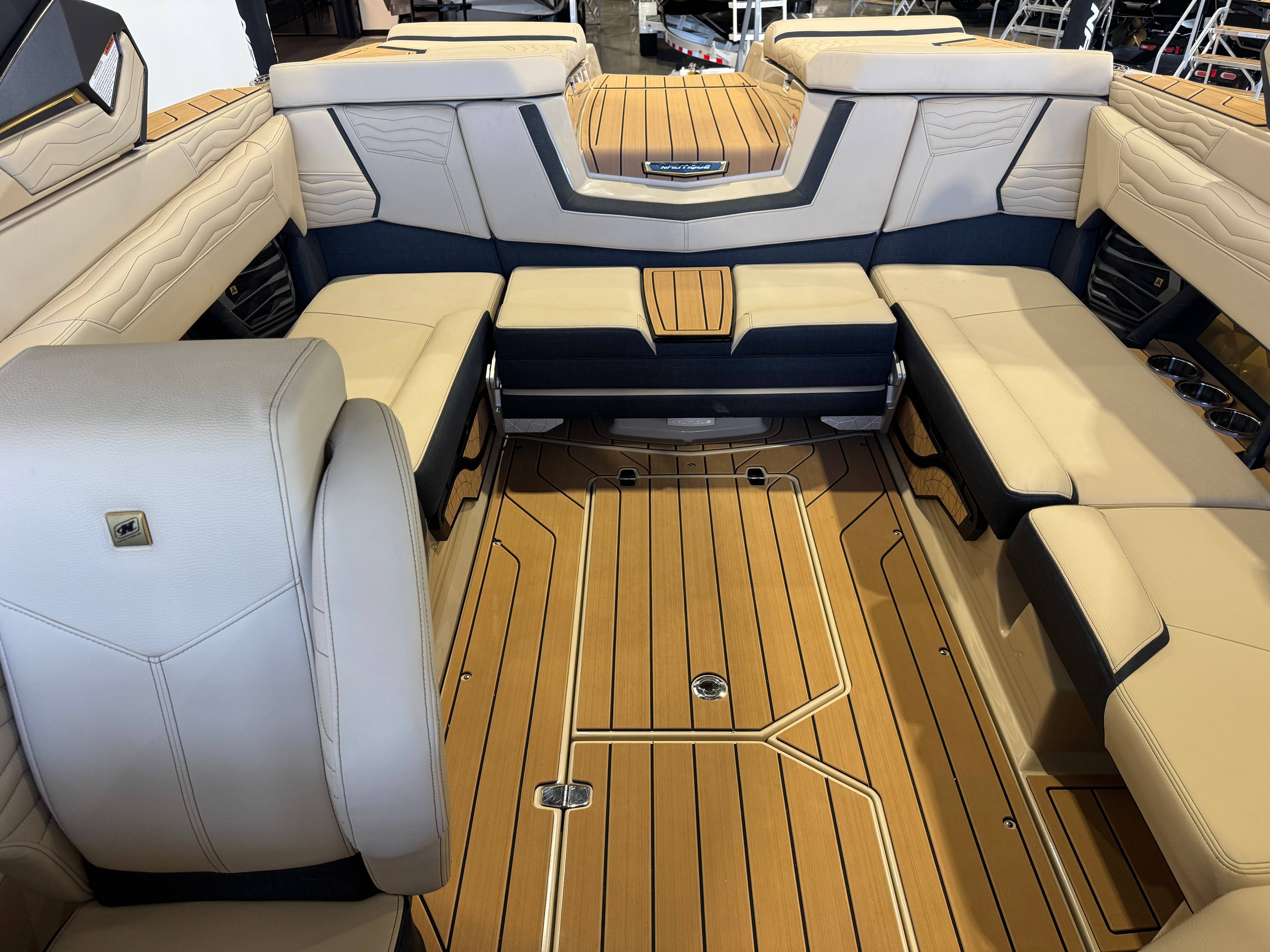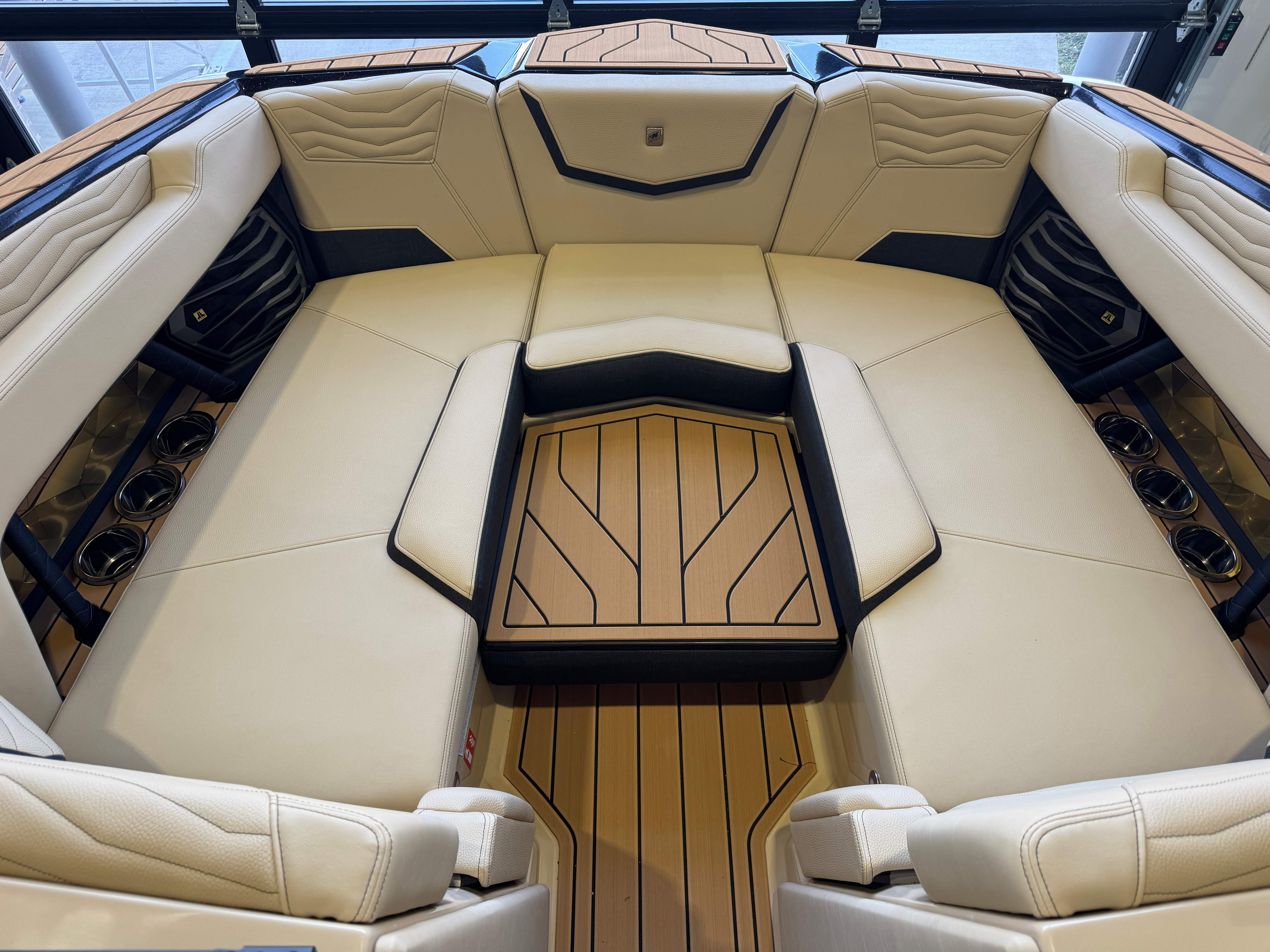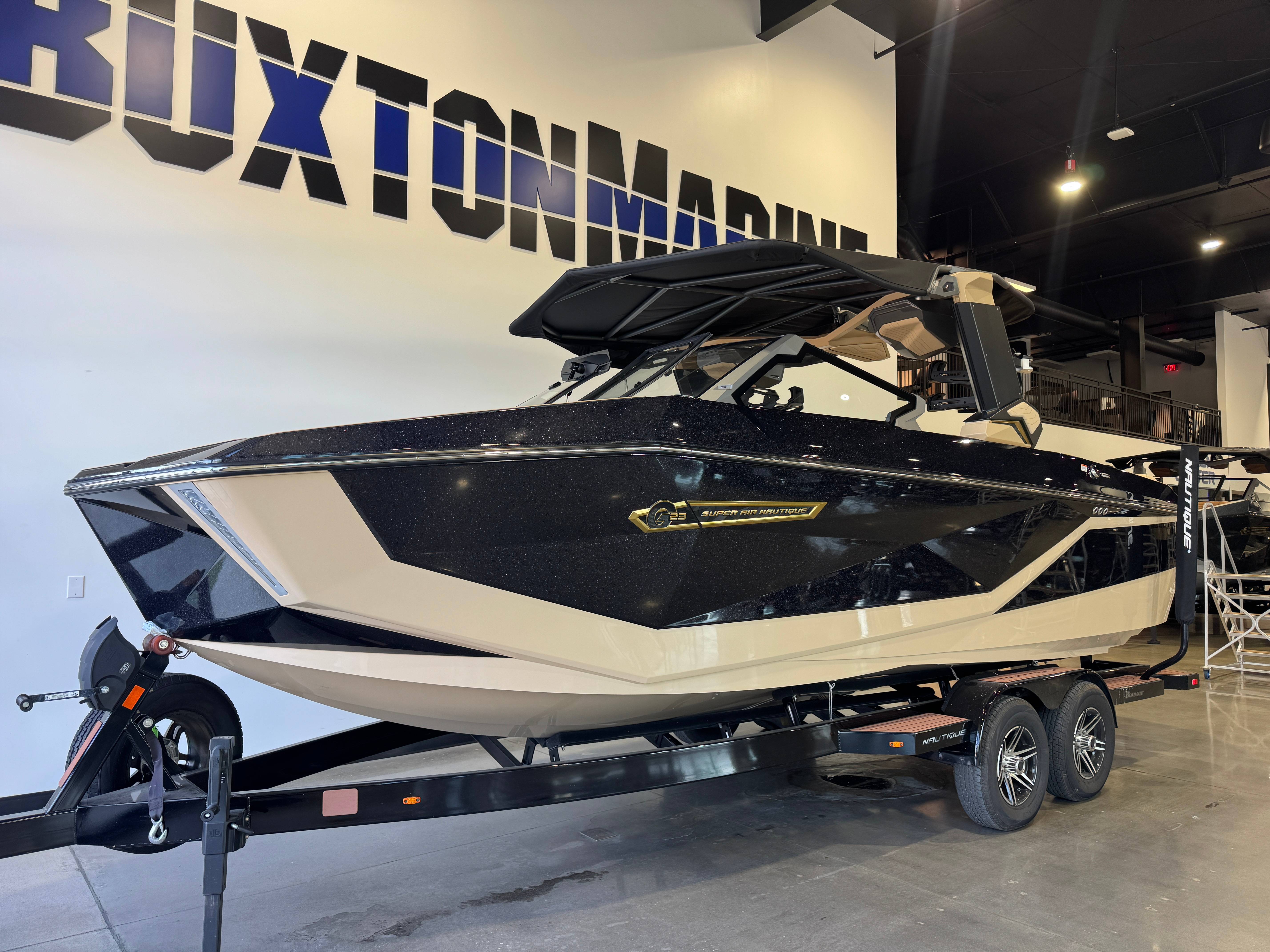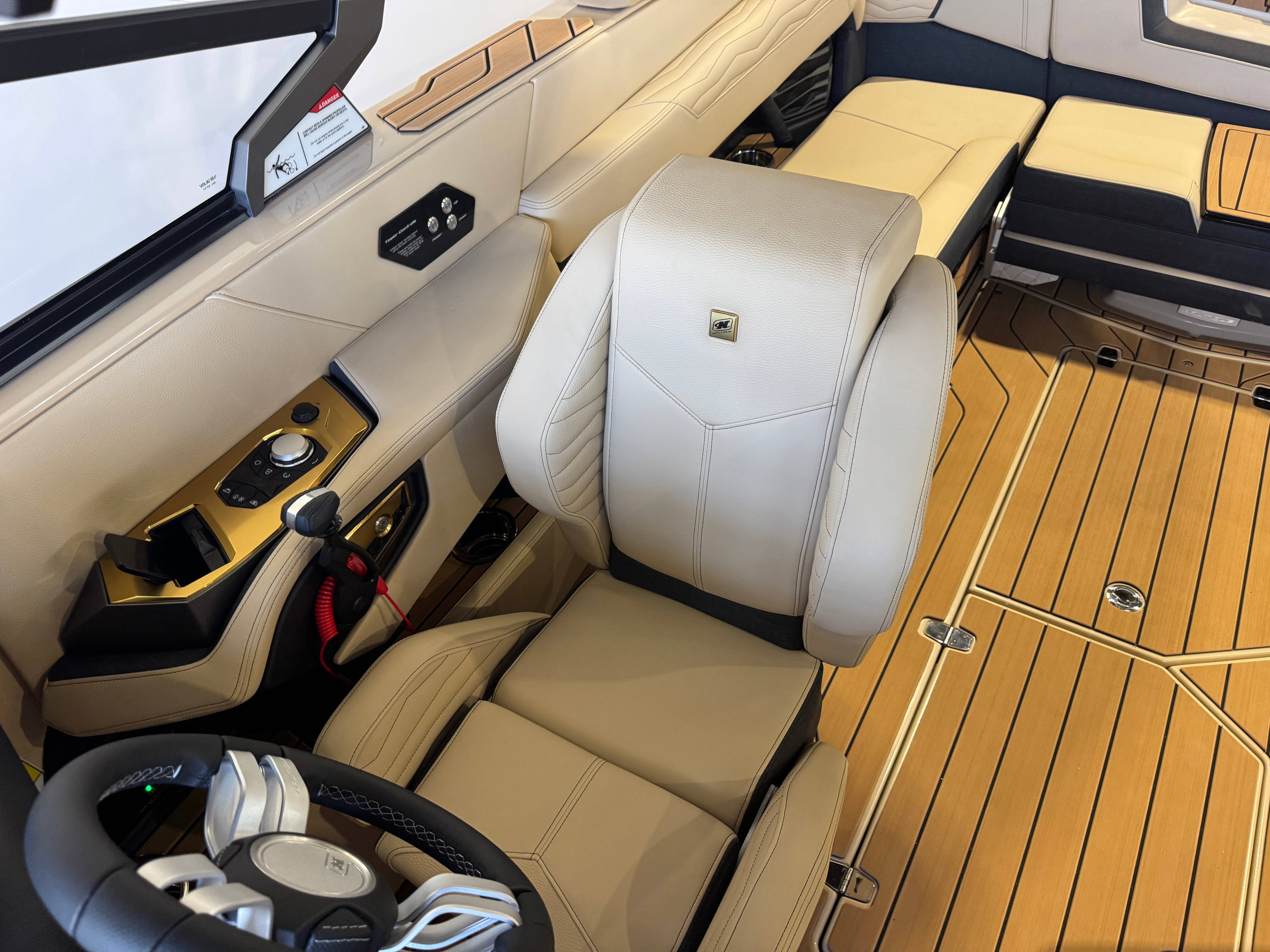 2026 Super Air Nautique G23 ZZ6 450HP - 6.2L Direct Injection Extended Sun Shade - Aft (Telescoping) Telescoping Flight Control Tower System Tower Prep Kit JL Audio M Series Studio(Pre-Wired 8 Channel Amp) Maps US-Canada Battery Maintenance System 110 (Integrated Charger-Dual Battery) Cover - Platform Cover-Telescoping Tower Towable/Mooring w/Anti-Pooling(TowerDown) Air Pump Inflator System Ballast - Supplemental (Additional 1,200 lbs) Ladder - Platform Access Lights - Enhanced Courtesy Lighting Package Lights - Underwater LINC Panoray - Navionics Maps Nautique Integrated Steering Assist Pillows 1 Set (2 Per Set) Tandem Spoke Leather Steering Wheel Chargers - Magnetic, Pockets and Glovebox Seating - Actuated Helm Seat, Height Adjustable Seating - Bow Armrests (Retractable) Seating - Bow Filler Cushion Seating - Heated Driver's and Loveseat Stereo - JL Audio M6 Series Studio Elite (Wavefront) Stereo - Transom Mounted Remote Control Walk-Thru Air-Dam (Smoked Acrylic Pocket Door) 2026 Super Air Nautique G23 Standard Items listed below Nautique Configurable Running Surface with Hydro-Plate Nautique LINC PANORAY with Helm Control, Zero Off GPS Speed Control Nautique Surf System™ with WAVEPLATE & Surf Pipe Exhaust Freshwater Engine Flush System Wake Package(Integrated 2400 lbs Ballast System) Power Management Access with Dual AGM Batteries Lighting-Navigation and Docking Light Array, LED Courtesy Lights Cleats (4), Coolers 2 (Removable), Waste Receptacle Sliding Reversible Stern Seat and Flip-Up Lounge Seat (Port) Transom Seating GoPro™ Ready Rotating Tow Point MyNautique™ Connectivity Platform Helm Command Center with Wireless Charger Fire Extinguisher - Automatic Premium Mirror unless Telescoping Tower is selected Stereo - JL Audio® M6 Series Elite with DSP(Stereo, 6 Speakers, 10in Subwoofer and 8 Channel Amp) if Stereo JL Audio® M6 Series Studio Elite (Wavefront) not selected Flight Control Tower (Textured Finish) with Nautique Awareness Camera if Flight Control Tower Actuated or Telescoping Tower is not selected Rotating Wakeboard/Wakesurf Racks if Nautique Strapless Board Racks is not selected
