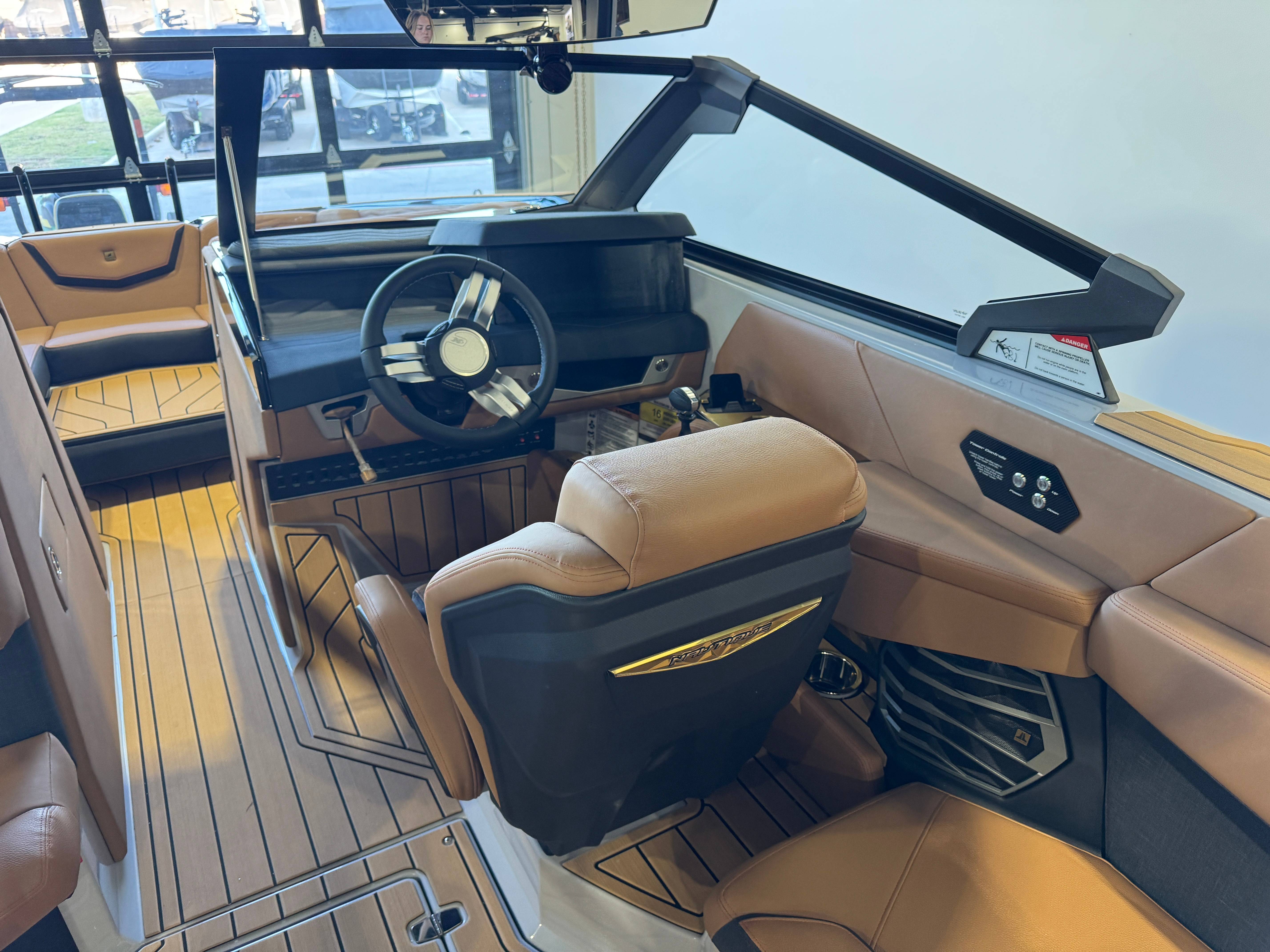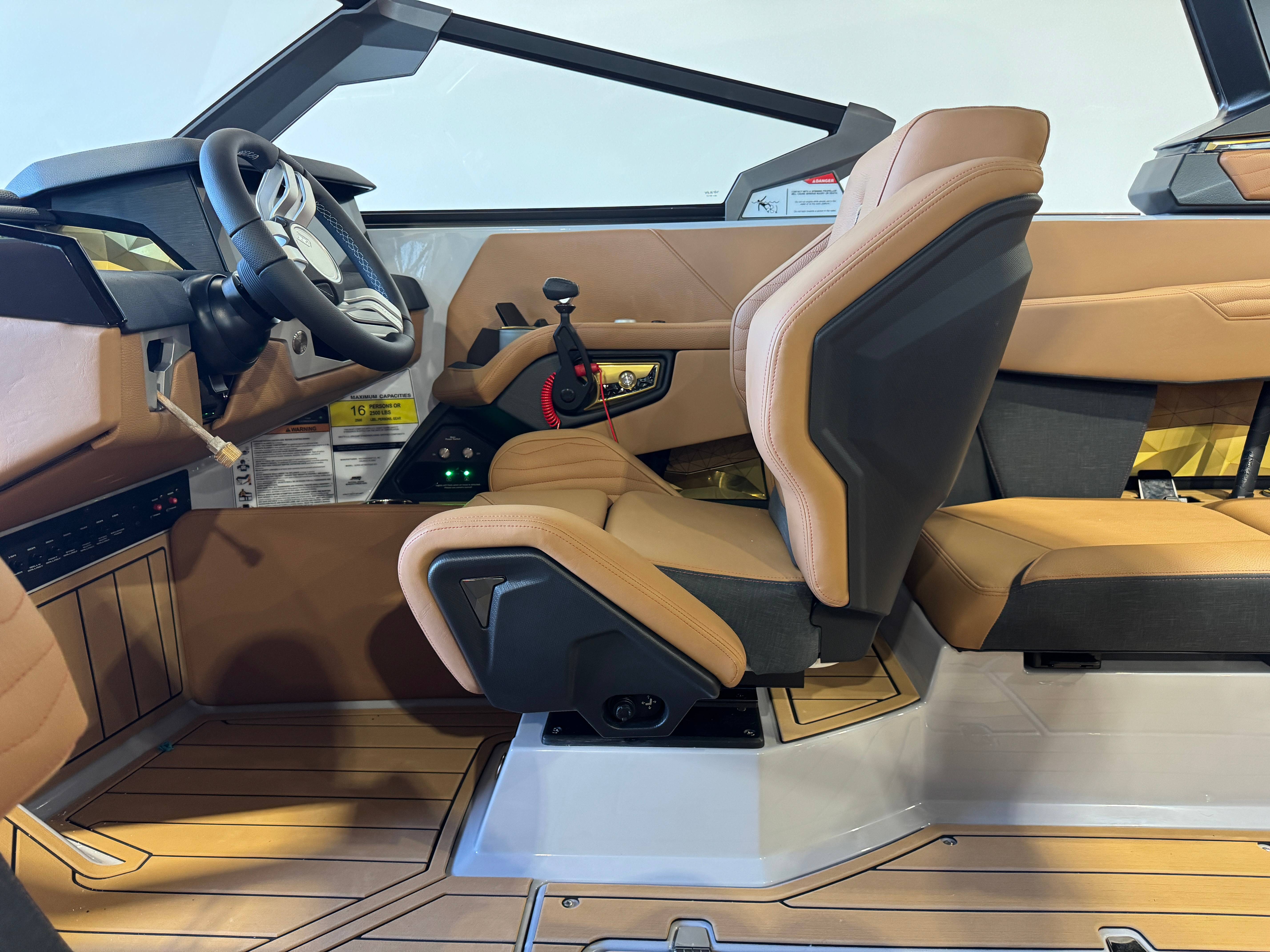 2026 Super Air Nautique G23 ZZ6 450HP - 6.2L Direct Injection Extended Sun Shade - Aft (Telescoping) Telescoping Flight Control Tower System Tower Prep Kit JL Audio M Series Studio(Pre-Wired 8 Channel Amp) Maps US-Canada Battery Maintenance System 110 (Integrated Charger-Dual Battery) Cover - Platform Cover-Telescoping Tower Towable/Mooring w/Anti-Pooling(TowerDown) Air Pump Inflator System Ballast - Supplemental (Additional 1,200 lbs) Ladder - Platform Access Lights - Enhanced Courtesy Lighting Package Lights - Underwater LINC Panoray - Navionics Maps Nautique Integrated Steering Assist Pillows 1 Set (2 Per Set) Tandem Spoke Leather Steering Wheel Chargers - Magnetic, Pockets and Glovebox Seating - Actuated Helm Seat, Height Adjustable Seating - Bow Armrests (Retractable) Seating - Bow Filler Cushion Seating - Heated Driver's and Loveseat Stereo - JL Audio M6 Series Studio Elite (Wavefront) Stereo - Transom Mounted Remote Control Walk-Thru Air-Dam (Smoked Acrylic Pocket Door) 2026 Super Air Nautique G23 Standard Items listed below Nautique Configurable Running Surface with Hydro-Plate Nautique LINC PANORAY with Helm Control, Zero Off GPS Speed Control Nautique Surf System™ with WAVEPLATE & Surf Pipe Exhaust Freshwater Engine Flush System Wake Package(Integrated 2400 lbs Ballast System) Power Management Access with Dual AGM Batteries Lighting-Navigation and Docking Light Array, LED Courtesy Lights Cleats (4), Coolers 2 (Removable), Waste Receptacle Sliding Reversible Stern Seat and Flip-Up Lounge Seat (Port) Transom Seating GoPro™ Ready Rotating Tow Point MyNautique™ Connectivity Platform Helm Command Center with Wireless Charger Fire Extinguisher - Automatic Premium Mirror unless Telescoping Tower is selected Stereo - JL Audio® M6 Series Elite with DSP(Stereo, 6 Speakers, 10in Subwoofer and 8 Channel Amp) if Stereo JL Audio® M6 Series Studio Elite (Wavefront) not selected Flight Control Tower (Textured Finish) with Nautique Awareness Camera if Flight Control Tower Actuated or Telescoping Tower is not selected Rotating Wakeboard/Wakesurf Racks if Nautique Strapless Board Racks is not selected