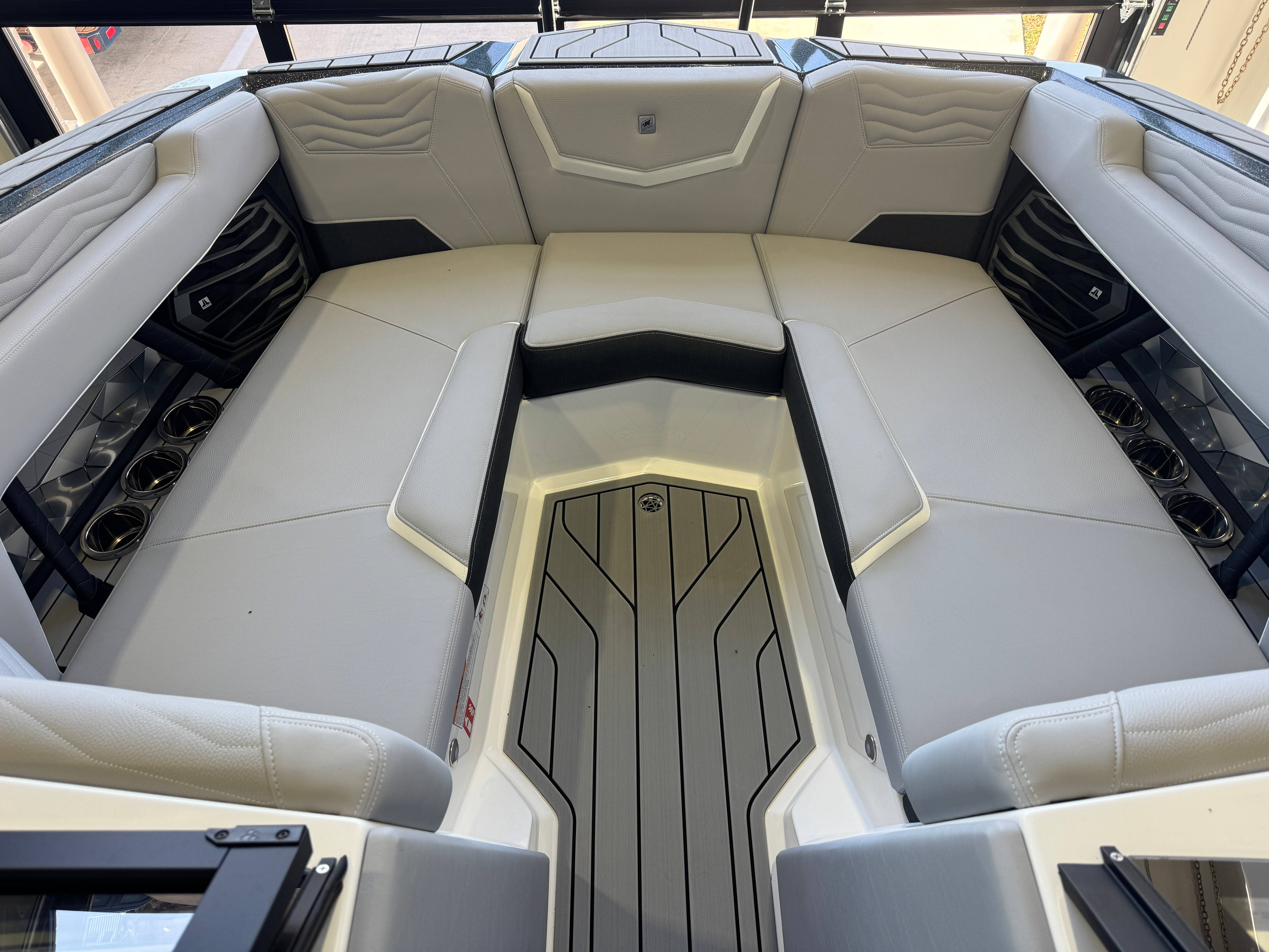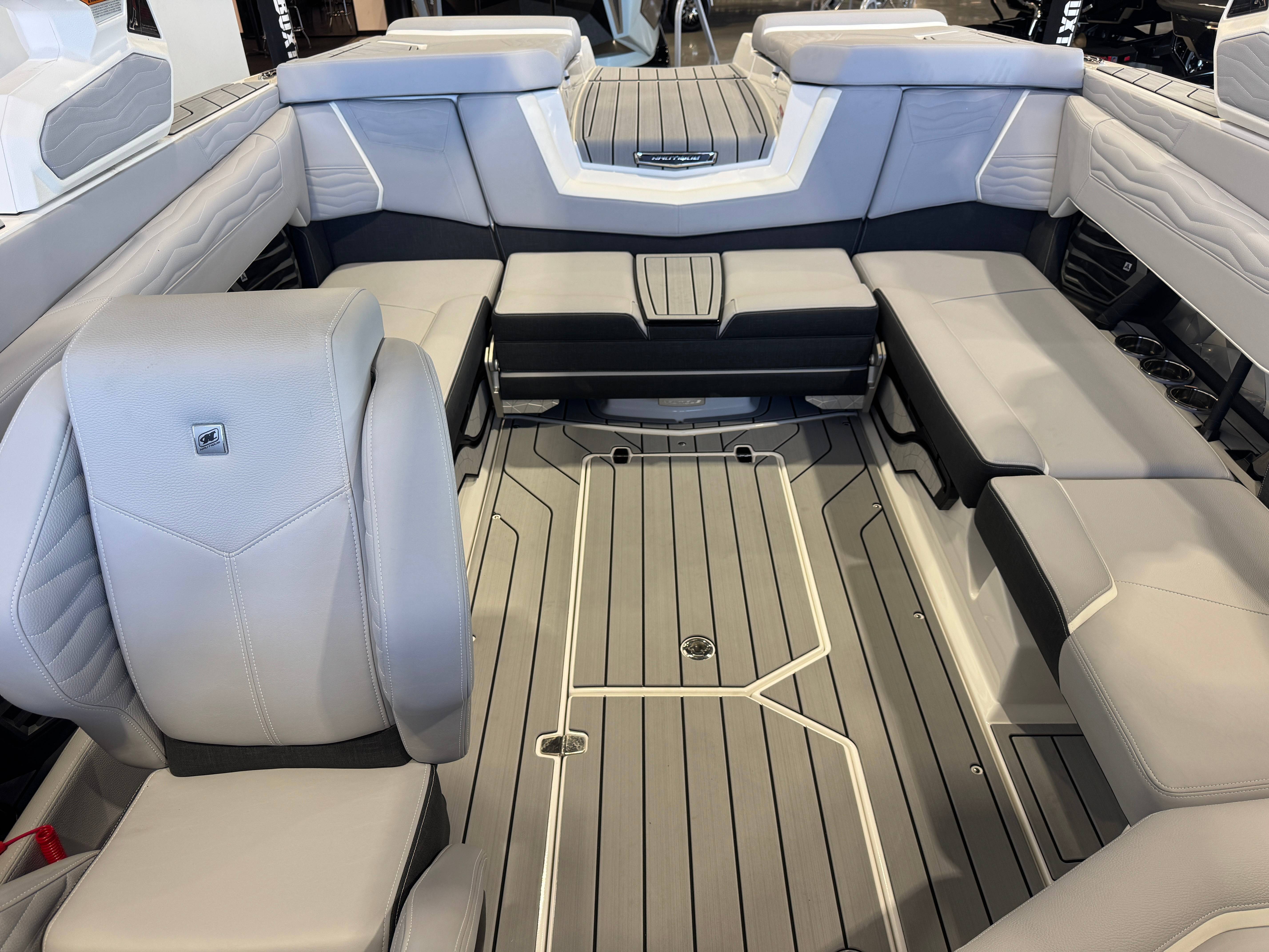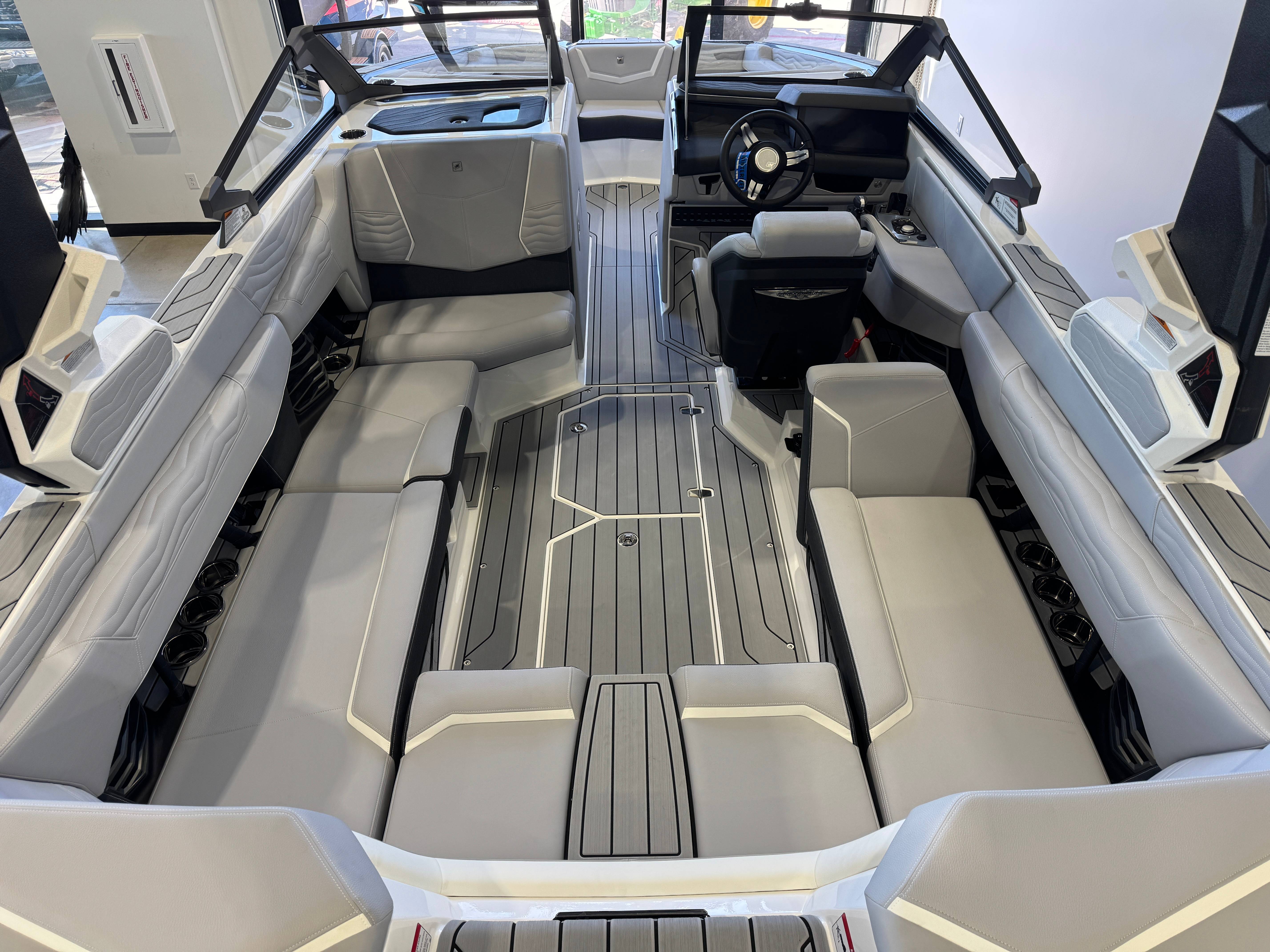 2026 Super Air Nautique G23 ZZ6 450HP - 6.2L Direct Injection Bimini - Tower Mounted Tri-Fold with Surf Pockets Nautique Strapless Board Racks Tower Prep Kit JL Audio M Series Studio(Pre-Wired 8 Channel Amp) Tower Speakers-Dual Spkr Housing JL Audio M6 Series 880x Spkrs(4) Tower Shock 3000N Maps NO MAP Battery Maintenance System 110 (Integrated Charger-Dual Battery) Cover - Platform Cover-Towable/Mooring w/Anti-Pooling(Std or Actuated Tower) Ballast - Supplemental (Additional 1,200 lbs) Lights - Enhanced Courtesy Lighting Package Wireless Chargers - Magnetic, Pockets and Glovebox Seating - Actuated Helm Seat, Height Adjustable Stereo - JL Audio M6 Series Studio Elite (Wavefront) 2026 Super Air Nautique G23 Standard Items listed below Nautique Configurable Running Surface with Hydro-Plate Nautique LINC PANORAY with Helm Control, Zero Off GPS Speed Control Nautique Surf System™ with WAVEPLATE & Surf Pipe Exhaust Freshwater Engine Flush System Wake Package(Integrated 2400 lbs Ballast System) Power Management Access with Dual AGM Batteries Lighting-Navigation and Docking Light Array, LED Courtesy Lights Cleats (4), Coolers 2 (Removable), Waste Receptacle Sliding Reversible Stern Seat and Flip-Up Lounge Seat (Port) Transom Seating GoPro™ Ready Rotating Tow Point MyNautique™ Connectivity Platform Helm Command Center with Wireless Charger Fire Extinguisher - Automatic Premium Mirror unless Telescoping Tower is selected Stereo - JL Audio® M6 Series Elite with DSP(Stereo, 6 Speakers, 10in Subwoofer and 8 Channel Amp) if Stereo JL Audio® M6 Series Studio Elite (Wavefront) not selected Flight Control Tower (Textured Finish) with Nautique Awareness Camera if Flight Control Tower Actuated or Telescoping Tower is not selected Rotating Wakeboard/Wakesurf Racks if Nautique Strapless Board Racks is not selected