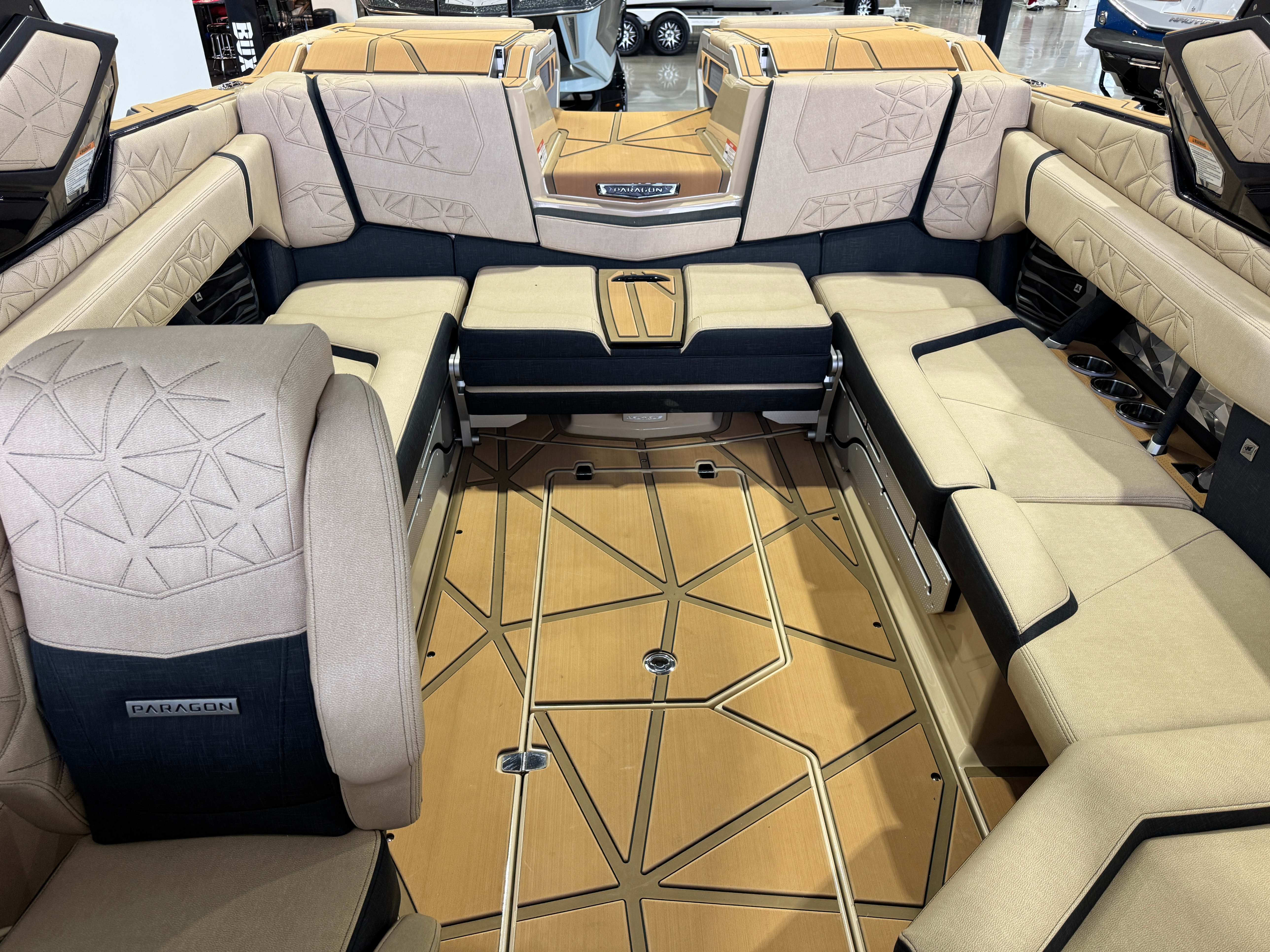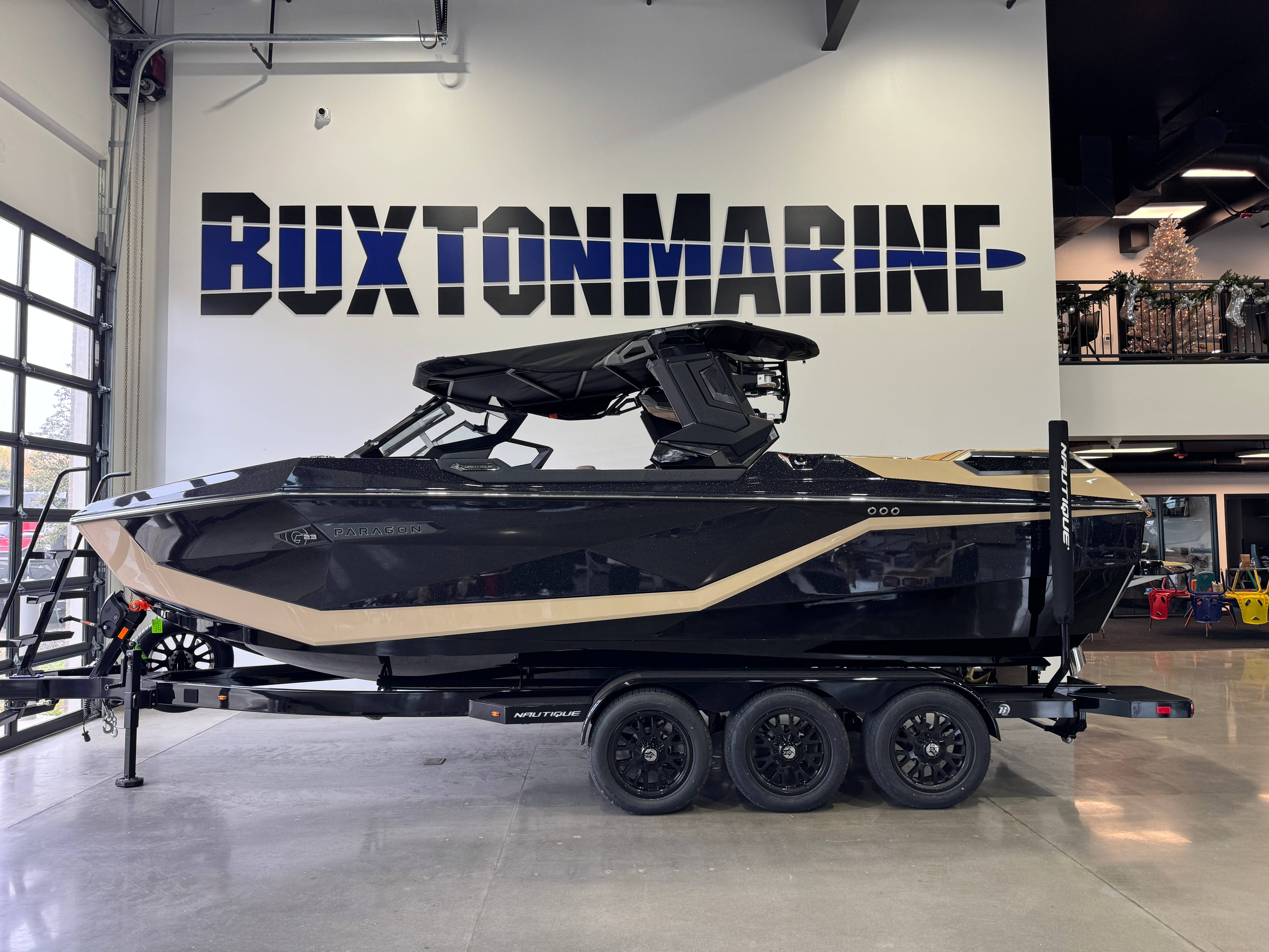 2026 Super Air Nautique Paragon 23 Engines ZZ8S 630HP - 6.2L Supercharged/Direct Injection Extended Sun Shade - Aft (Telescoping) Extended Sun Shade - Forward (Telescoping) Nautique Strapless Board Racks Maps US-Canada System Battery Maintenance System 110 (3 AGM Batteries) Ballast - Supplemental (Additional 1,200 lbs) LINC Panoray - Navionics Maps Seating - Bow Filler Cushion 2026 Super Air Nautique Paragon 23 Standard Items Listed Below Nautique Configurable Running Surface with Hydro-Plate Nautique Dual LINC PANORAY with Helm Control, Zero Off, MyNautique™ Connectivity Platform Nautique Surf System™ with WAVEPLATE & Surf Pipe Exhaust & Integrated Ballast (2,500 lbs) Paragon Telescoping Flight Control Tower System including: Nautique Awareness Camera, Bimini Top with Surf Pockets Stereo - JL Audio® M6 Series Studio Elite with Wavefront™ (Includes: Wavefront™, Dual Subwoofers (12"), Monoblock Subwoofer Amplifier) Tower Speakers - Dual Speaker Housing, JL Audio® M6 Series 880x Speakers (4) Stereo - Transom Mounted Remote Control Stereo - JL Audio® Wake Sub Nautique Integrated Steering Assist Helm Command Center with Wireless Charger Enhanced Courtesy Lighting Package (Customized Colors on Illuminated Cupholders, Courtesy Lights and Interior Chromax Badging) LED Lighting - Docking Light Array; Courtesy Lights; Underwater Lights Phender Pro - Boat Fender Attachment System (6) Freshwater Engine Flush System Power Management Including 3 AGM Batteries, with Battery Charger Coolers (Removable In-Floor and Transom),Waste Receptacle Sliding Reversible Stern Seat, Flip-Up Lounge Seat (Port) and Convertible Transom Seating. Seating - Bow Armrests (Retractable) Seating - Actuated Helm Seat and Height Adjustable Tandem Spoke Leather Steering Wheel GoPro™ Ready Rotating Tow Point Walk-Thru Air-Dam (Smoked Acrylic Pocket Door) Ladder - Platform Access Cleats (4) Premium Swivel Mirror Fire Extinguisher - Automatic Board Management System Towable/Mooring Cover (Tower Down) and Platform Cover