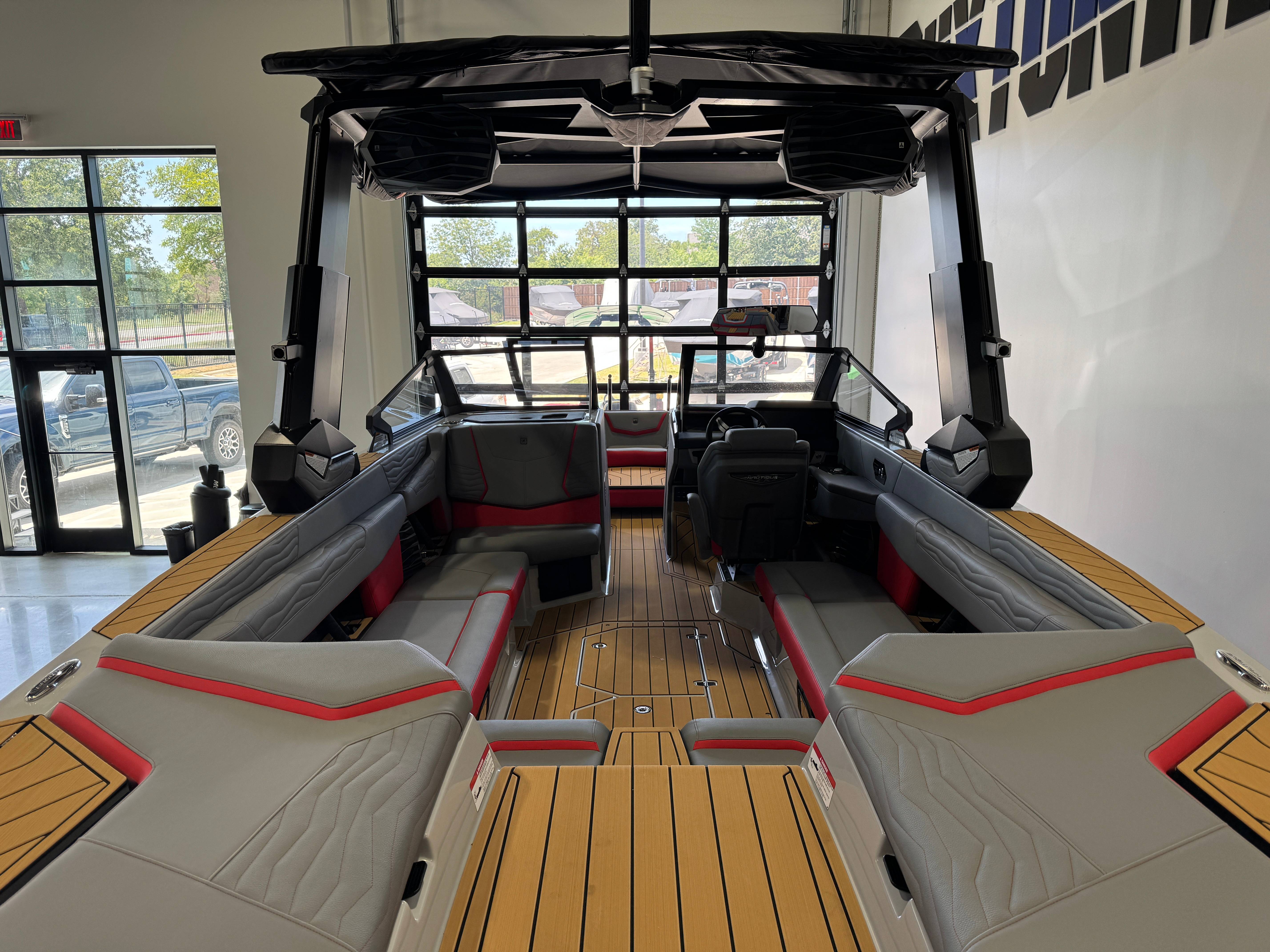 2026 Super Air Nautique G25 ZZ6 450HP - 6.2L Direct Injection Telescoping Flight Control Tower System Tower Prep Kit JL Audio M Series Studio(Pre-Wired 8 Channel Amp) Battery Maintenance System 110 (Integrated Charger-Dual Battery) Cover - Platform Cover-Telescoping Tower Towable/Mooring w/Anti-Pooling(TowerDown) Air Pump Inflator System Ballast - Supplemental (Additional 1,200 lbs) Ladder - Platform Access Lights - Enhanced Courtesy Lighting Package LINC Panoray - Navionics Maps Nautique Integrated Steering Assist Wireless Chargers - Magnetic, Pockets and Glovebox Seating - Bow Filler Cushion Stereo - JL Audio M6 Series Studio Elite (Wavefront) Stereo - Transom Mounted Remote Control Walk-Thru Air-Dam (Smoked Acrylic Pocket Door) 2026 Super Air Nautique G25 Standard Items listed below Nautique Configurable Running Surface with Hydro-Plate Nautique LINC PANORAY with Helm Control, Zero Off GPS Speed Control Nautique Surf System™ with WAVEPLATE & Surf Pipe Exhaust Freshwater Engine Flush System Wake Package(Integrated 2400 lbs Ballast System) Power Management Access with Dual AGM Batteries Lighting-Navigation and Docking Light Array, LED Courtesy Lights Cleats (4), Coolers 2 (Removable), Waste Receptacle Sliding Reversible Stern Seat and Flip-Up Lounge Seat (Port) Transom Seating GoPro™ Ready Rotating Tow Point MyNautique™ Connectivity Platform Helm Command Center with Wireless Charger Fire Extinguisher - Automatic Standard Folding Mirror unless Telescoping Tower is selected Stereo - JL Audio® M6 Series Elite with DSP (Stereo, 6 Speakers, 10in Subwoofer and 8 Channel Amp) if Stereo JL Audio® M6 Series Studio Elite (Wavefront) not selected Flight Control Tower (Textured Finish) with Nautique Awareness Camera if Flight Control Tower Actuated or Telescoping Tower is not selected Rotating Wakeboard/Wakesurf Racks if Nautique Strapless Board Racks is not selected