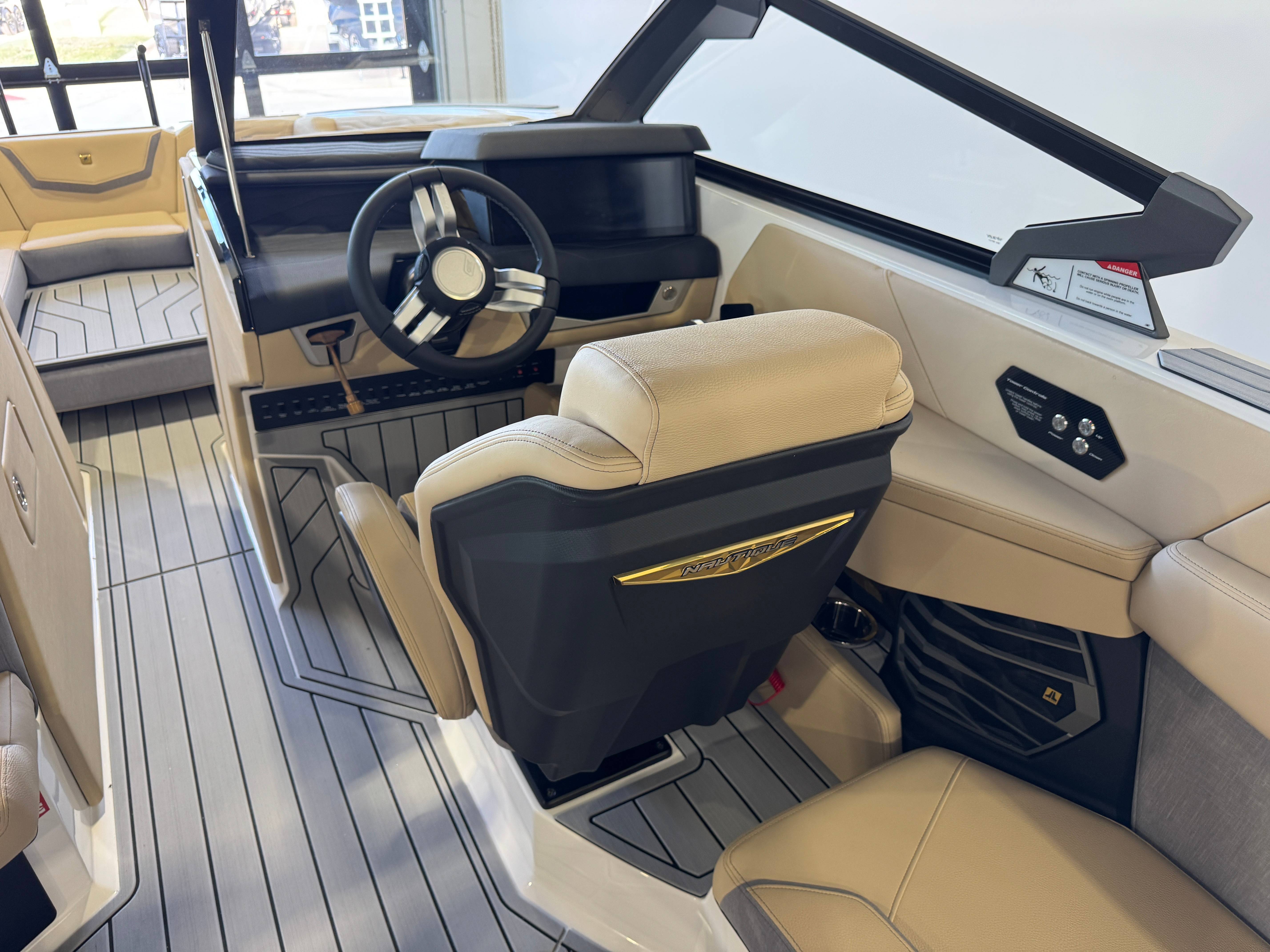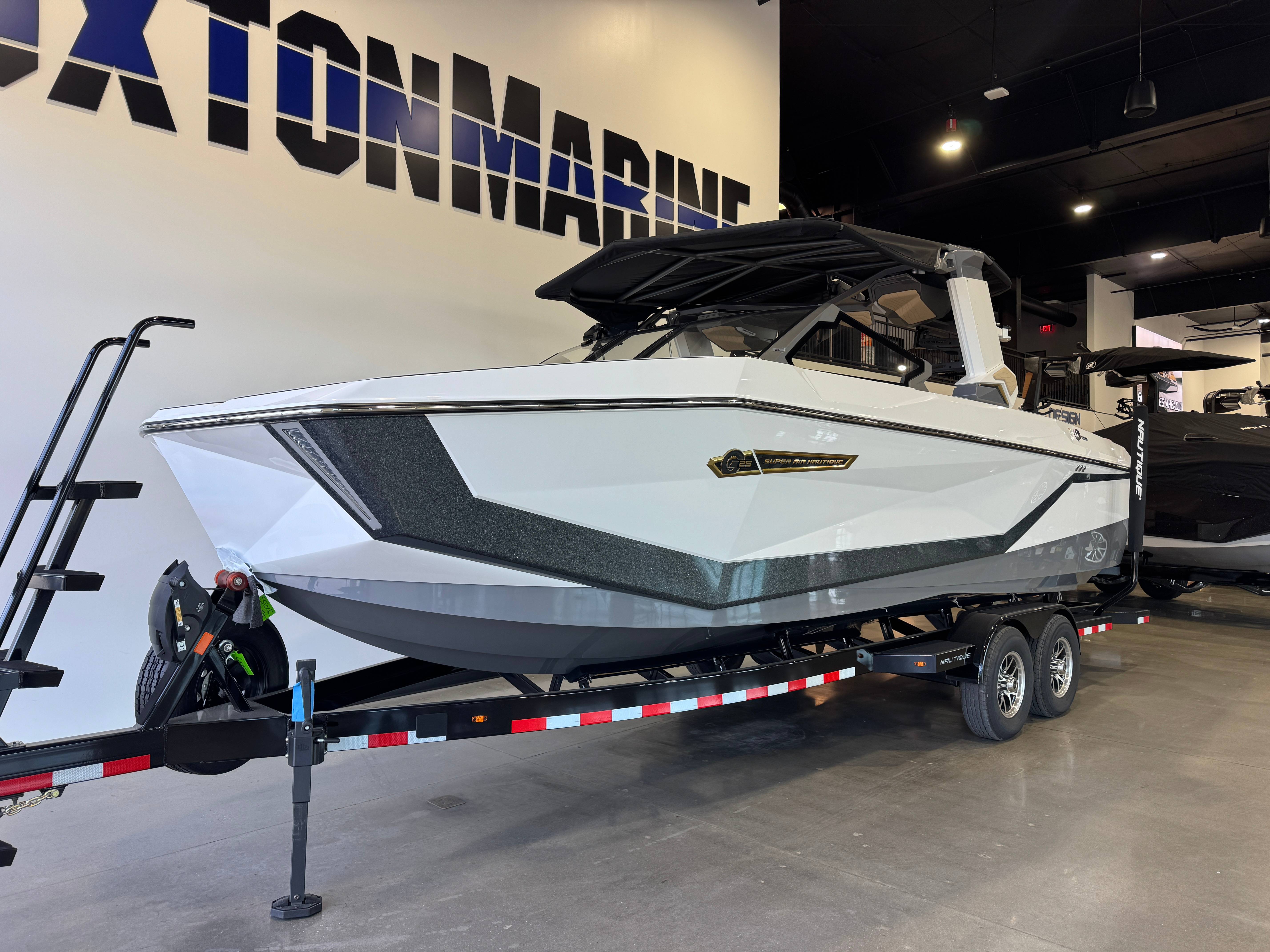 2026 Super Air Nautique G25 ZZ6 450HP - 6.2L Direct Injection Extended Sun Shade - Aft (Telescoping) Telescoping Flight Control Tower System Tower Prep Kit JL Audio M Series Studio(Pre-Wired 8 Channel Amp) Maps US-Canada Battery Maintenance System 110 (Integrated Charger-Dual Battery) Cover - Platform Cover-Telescoping Tower Towable/Mooring w/Anti-Pooling(TowerDown) Air Pump Inflator System Ballast - Supplemental (Additional 1,200 lbs) Ladder - Platform Access Lights - Enhanced Courtesy Lighting Package Lights - Underwater LINC Panoray - Navionics Maps Nautique Integrated Steering Assist Tandem Spoke Leather Steering Wheel Chargers - Magnetic, Pockets and Glovebox Seating - Actuated Helm Seat, Height Adjustable Seating - Bow Armrests (Retractable) Seating - Bow Filler Cushion Seating - Heated Driver's and Loveseat Stereo - JL Audio M6 Series Studio Elite (Wavefront) Stereo - Transom Mounted Remote Control Walk-Thru Air-Dam (Smoked Acrylic Pocket Door) 2026 Super Air Nautique G25 Standard Items listed below Nautique Configurable Running Surface with Hydro-Plate Nautique LINC PANORAY with Helm Control, Zero Off GPS Speed Control Nautique Surf System™ with WAVEPLATE & Surf Pipe Exhaust Freshwater Engine Flush System Wake Package(Integrated 2400 lbs Ballast System) Power Management Access with Dual AGM Batteries Lighting-Navigation and Docking Light Array, LED Courtesy Lights Cleats (4), Coolers 2 (Removable), Waste Receptacle Sliding Reversible Stern Seat and Flip-Up Lounge Seat (Port) Transom Seating GoPro™ Ready Rotating Tow Point MyNautique™ Connectivity Platform Helm Command Center with Wireless Charger Fire Extinguisher - Automatic Premium Mirror unless Telescoping Tower is selected Stereo - JL Audio® M6 Series Elite with DSP(Stereo, 6 Speakers, 10in Subwoofer and 8 Channel Amp) if Stereo JL Audio® M6 Series Studio Elite (Wavefront) not selected Flight Control Tower (Textured Finish) with Nautique Awareness Camera if Flight Control Tower Actuated or Telescoping Tower is not selected Rotating Wakeboard/Wakesurf Racks if Nautique Strapless Board Racks is not selected