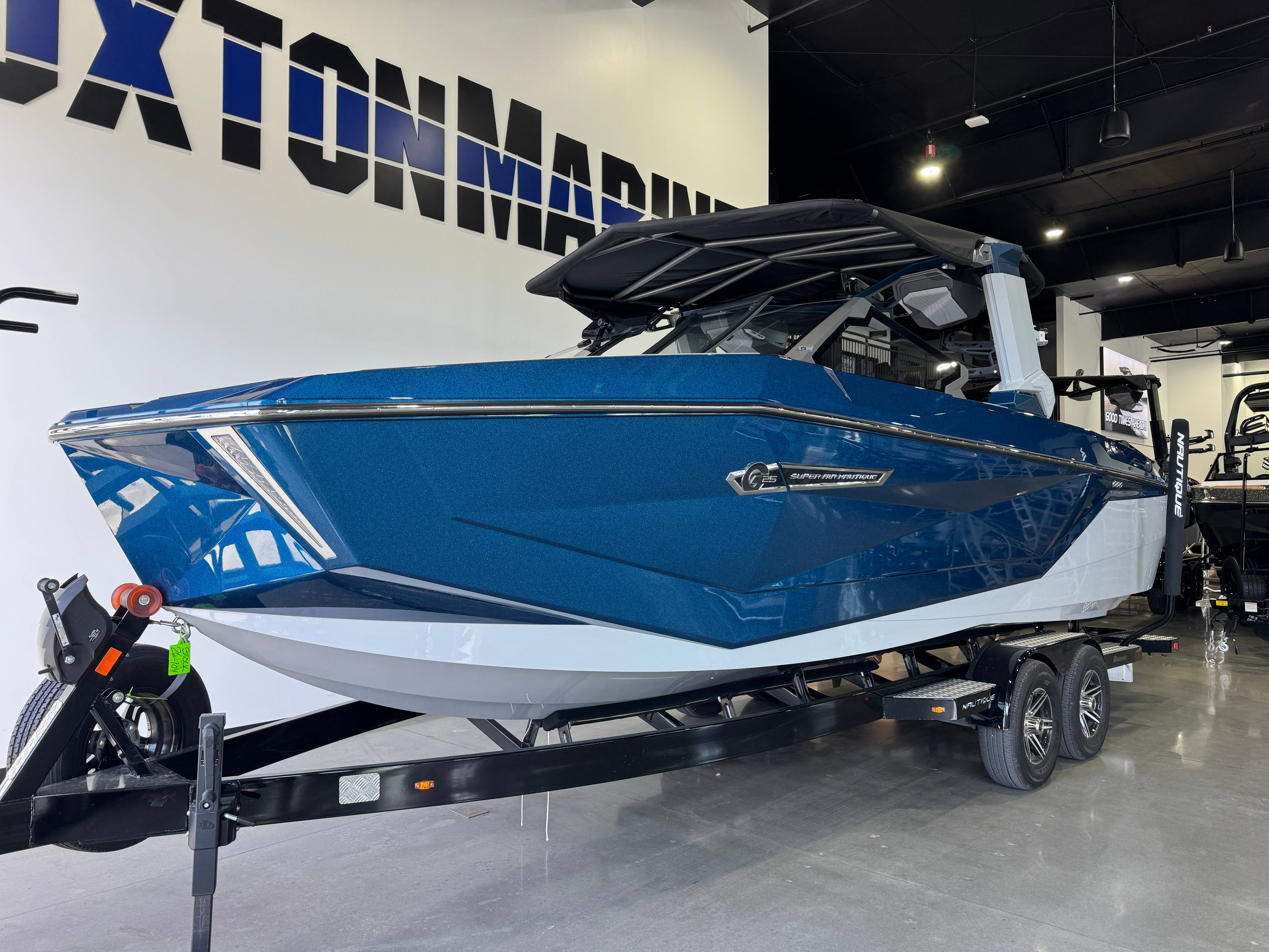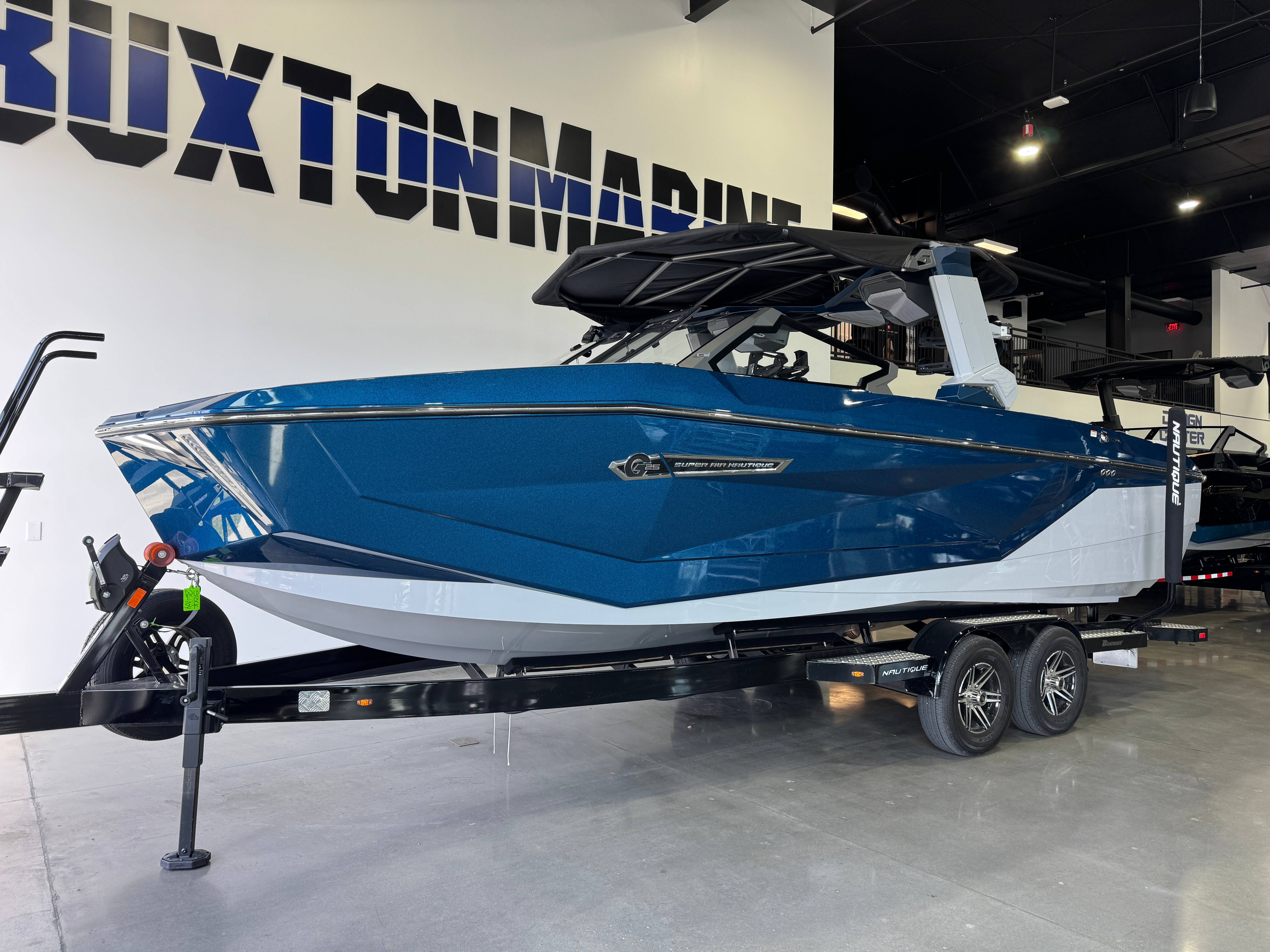 2026 Super Air Nautique G25 Standard Items listed below Nautique Configurable Running Surface with Hydro-Plate Nautique LINC PANORAY with Helm Control, Zero Off GPS Speed Control Nautique Surf System™ with WAVEPLATE & Surf Pipe Exhaust Freshwater Engine Flush System Wake Package(Integrated 2400 lbs Ballast System) Power Management Access with Dual AGM Batteries Lighting-Navigation and Docking Light Array, LED Courtesy Lights Cleats (4), Coolers 2 (Removable), Waste Receptacle Sliding Reversible Stern Seat and Flip-Up Lounge Seat (Port) Transom Seating GoPro™ Ready Rotating Tow Point MyNautique™ Connectivity Platform Helm Command Center with Wireless Charger Fire Extinguisher - Automatic Standard Folding Mirror unless Telescoping Tower is selected Stereo - JL Audio® M6 Series Elite with DSP (Stereo, 6 Speakers, 10in Subwoofer and 8 Channel Amp) if Stereo JL Audio® M6 Series Studio Elite (Wavefront) not selected Flight Control Tower (Textured Finish) with Nautique Awareness Camera if Flight Control Tower Actuated or Telescoping Tower is not selected Rotating Wakeboard/Wakesurf Racks if Nautique Strapless Board Racks is not selected This boat is currently available for sale at Buxton Marine in Lewisville, Texas . Contact us today for more details or to schedule a showing! At Buxton Marine, we believe the right rig makes all the difference. With top-tier boats, an expert team, and a family-first approach, everything we do is focused on helping you and your family make the most of your time on the water. It all adds up to one thing for us: good times ahead!!! Buxton Marine is proud to be the largest Nautique boat dealer in the United States , offering an unmatched selection of industry-leading tow boats. From sales and service to financing and our fully stocked pro shop, the Buxton Crew is known as the best in the business. We stand behind every boat we sell, whether you’re shopping for a brand-new Nautique or a high-quality pre-owned rig. Family-owned and operated for more than 35 years , Buxton Marine is built on relationships, trust, and long-term service. When you purchase a boat from Buxton, you’re not just buying a boat—you’re joining the Buxton Nation!