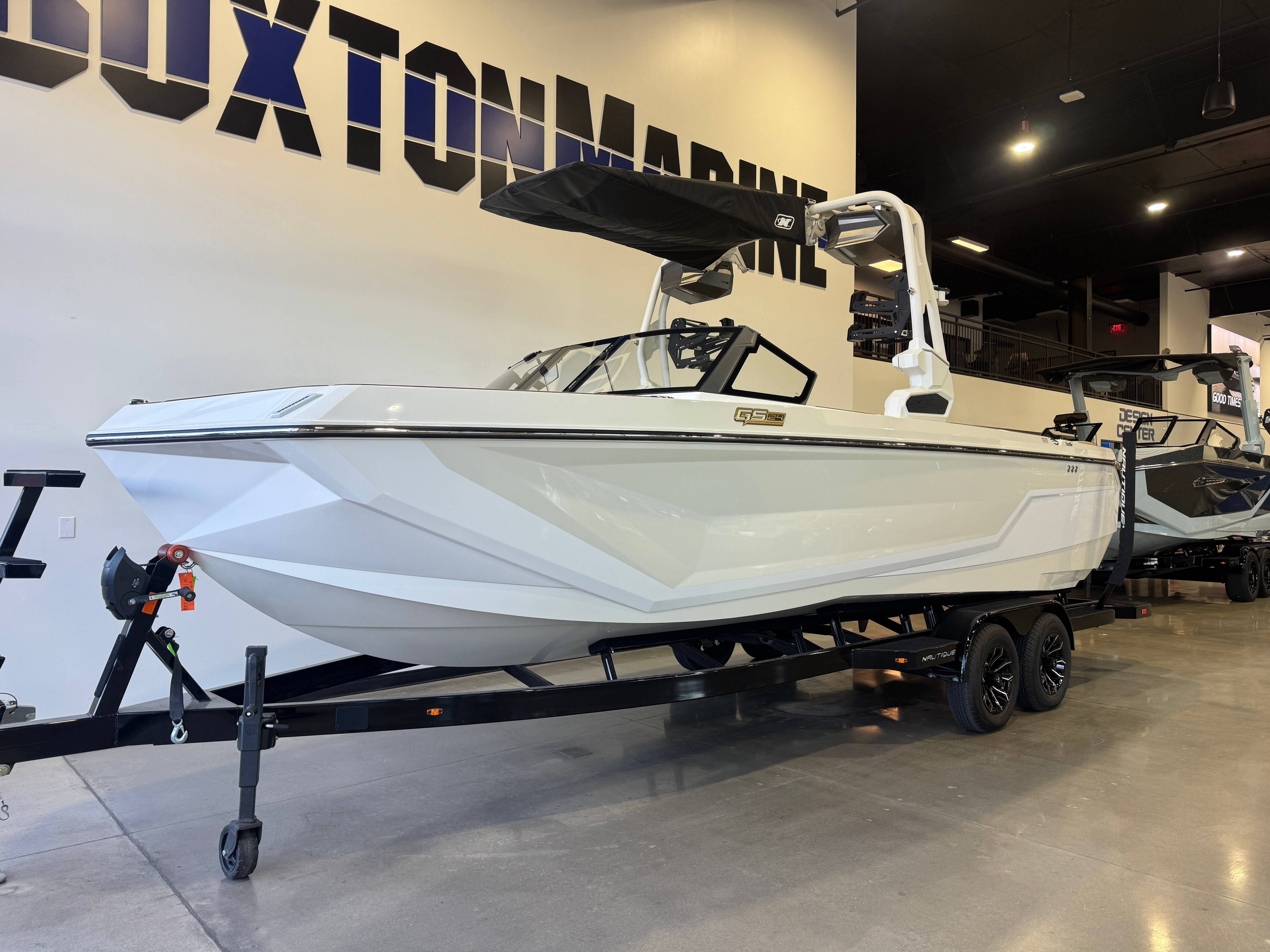 2026 Super Air Nautique GS24 ZZ5 355HP - 5.3L Direct Injection Bimini - Tower Mounted Tri-Fold with Surf Pockets Nautique Awareness Camera Tower Prep Kit JL Audio M Series Elite(Pre-Wired 4 Channel Amp) Tower Speakers-Dual Spkr Housing JL Audio M6 Series 880x Spkrs(4) Tower Shock 2500N Maps US-Canada Battery Maintenance System 110 (Integrated Charger-Dual Battery) Cover - Platform Cover-Towable/Mooring(Tower Up) w/Anti-Pooling (Std or Act Tower) Air Pump Inflator System Ballast - Supplemental (Additional 500 LBS) Ladder - Platform Access Lights - Docking/Daytime Running Light Lights - Enhanced Courtesy Lighting Package LINC Panoray - Navionics Maps Ski Pylon - Retractable Wireless Charging Seating - Bow Filler Cushion Seating - Sliding Reversible Stern Seat Stereo - JL Audio M3 Series Premier Stereo - Transom Mounted Remote Control 2026 Super Air Nautique GS24 Standard Items listed below Nautique Configurable Running Surface with Hydro-Plate Nautique LINC PANORAY with Helm Control, Zero Off GPS Speed Control Flight Control Tower (Textured Finish) Nautique Surf System™ with WAVEPLATE & Surf Pipe Exhaust Freshwater Engine Flush System Wake Package (Integrated 2950 Pound Ballast System) LED Courtesy Lighting Cleats (4), Removable Cooler, Waste Receptacle Flip-Up Lounge Seats MyNautique™ Connectivity Platform Standard Folding Mirror Fire Extinguisher - Automatic Rotating Wakeboard/Wakesurf Racks if Nautique Strapless Board Racks not selected Stereo - JL Audio® M3 Series (Stereo, 2 Channel Amp, 4 M3 Speakers) if Stereo Premier not selected If Flight Control Tower - Actuated with Go Pro Ready Quick Mount is Selected, Nautique Awareness Camera is Included