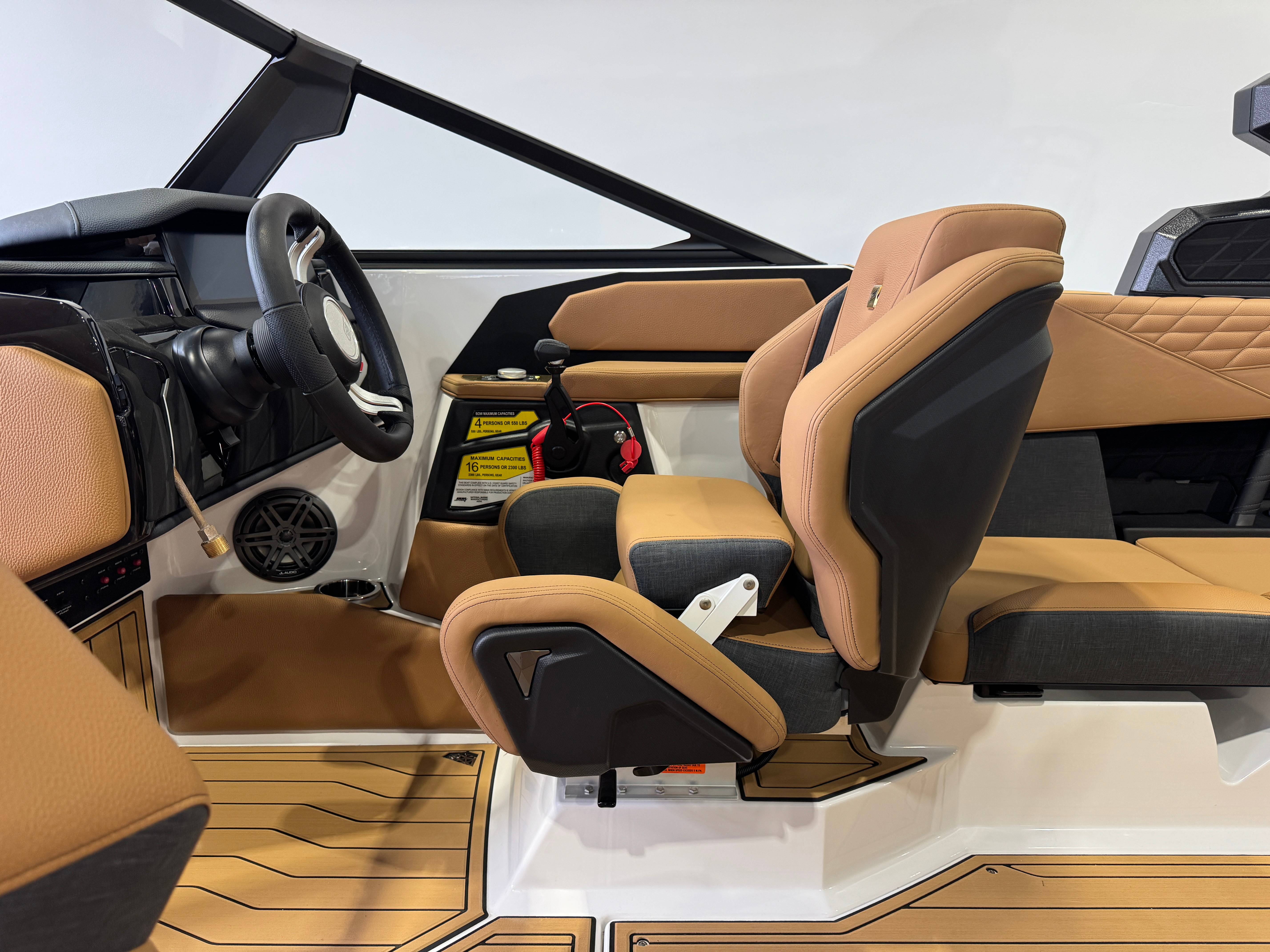 2026 Super Air Nautique S23 ZZ5 355HP - 5.3L Direct Injection Bimini - Tower Mounted Bi-Fold with Surf Pockets Tower Tower Prep Kit JL Audio M Series Elite(Pre-Wired 4 Channel Amp) Tower Speakers-Dual Spkr Housing JL Audio M6 Series 880x Spkrs(4) Tower Shock 3000N Maps US-Canada Battery Maintenance System 110 (Integrated Charger-Dual Battery) Cover - Platform Cover-Towable/Mooring(Tower Up) w/Anti-Pooling (Std or Act Tower) Ballast - Supplemental (Additional 500 LBS) Ladder - Platform Access Lights - Enhanced Courtesy Lighting Package LINC Panoray - Navionics Maps Ski Pylon - Retractable Wireless Charging Seating - Bow Filler Cushion Stereo - JL Audio M3 Series Premier Stereo - Transom Mounted Remote Control Air-Dam Walk-Thru Air-Dam (Slide In) 2026 Super Air Nautique S23 Standard Items listed below Nautique Configurable Running Surface with Hydro-Gate Nautique LINC PANORAY with Helm Control Zero Off GPS Speed Control Nautique Surf System™ with WAVEPLATE & Surf Pipe Exhaust Flight Control Tower (Textured Finish) with Nautique Awareness Camera Freshwater Engine Flush System Wake Package (Integrated Ballast System 2,650 LBS) Cleats (4), LED Courtesy Lighting Removable Cooler, Waste Receptacle MyNautique™ Connectivity Platform Sliding Reversible Stern Seat and Flip-Up Lounge Seat, Transom Seating GoPro™ Ready Rotating Tow Point Fire Extinguisher - Automatic Standard Folding Mirror unless Telescoping Tower is selected Rotating Wakeboard/Wakesurf Racks if Nautique Strapless Board Racks not selected Stereo - JL Audio® M3 Series (Stereo, 2 Channel Amp, 4 M3 Speakers) if Stereo M3 Series Studio Premiere is not selected