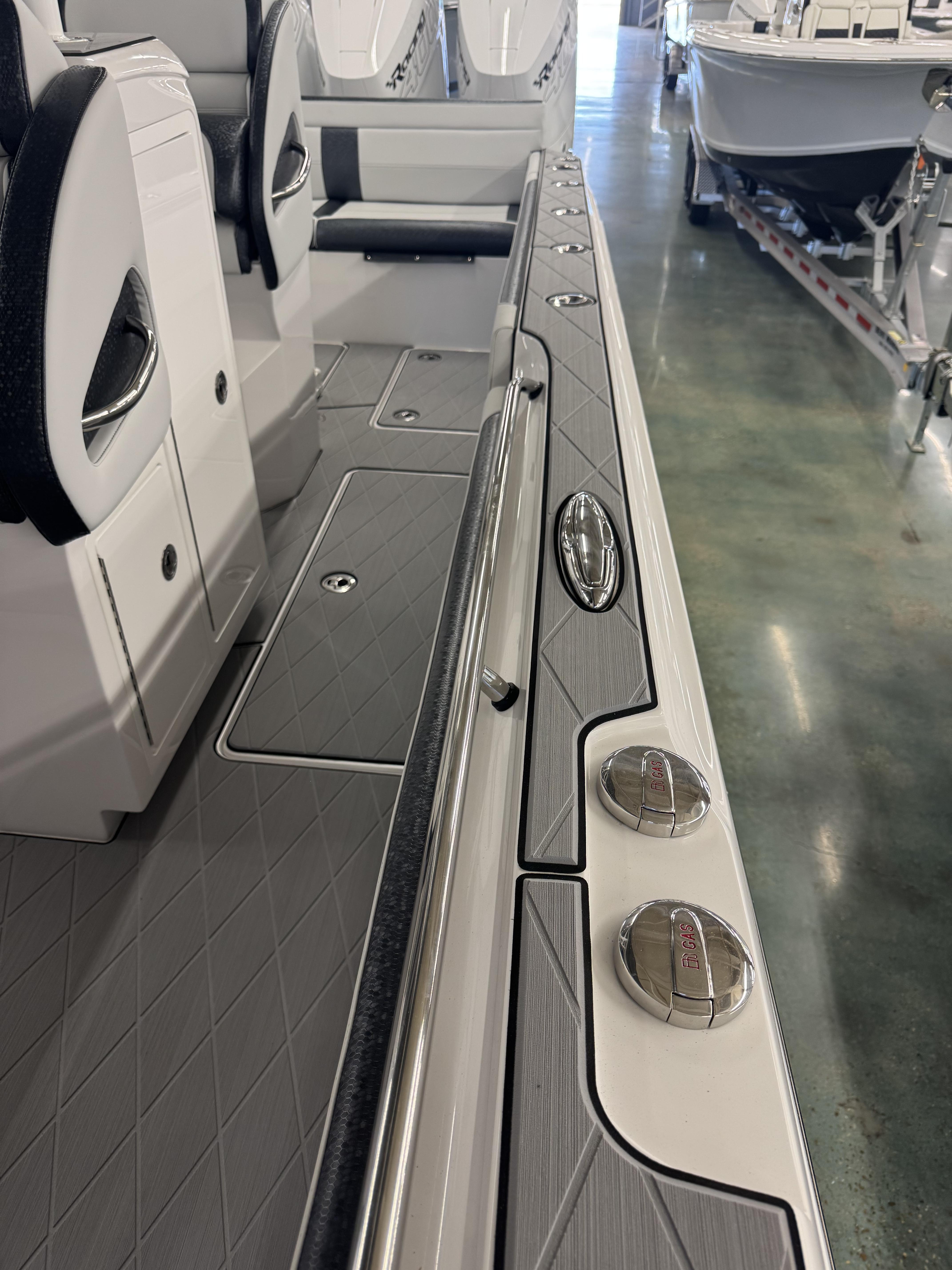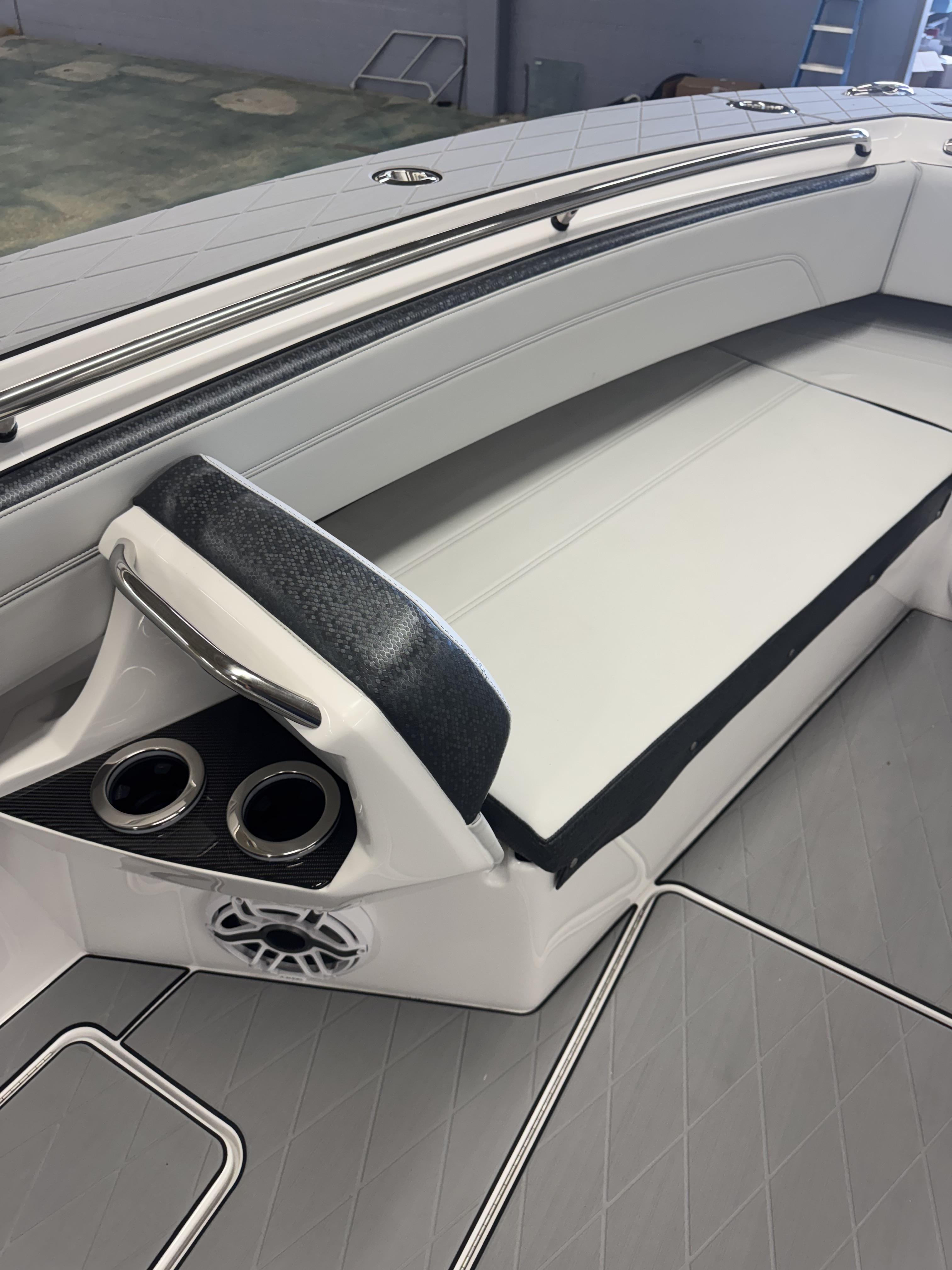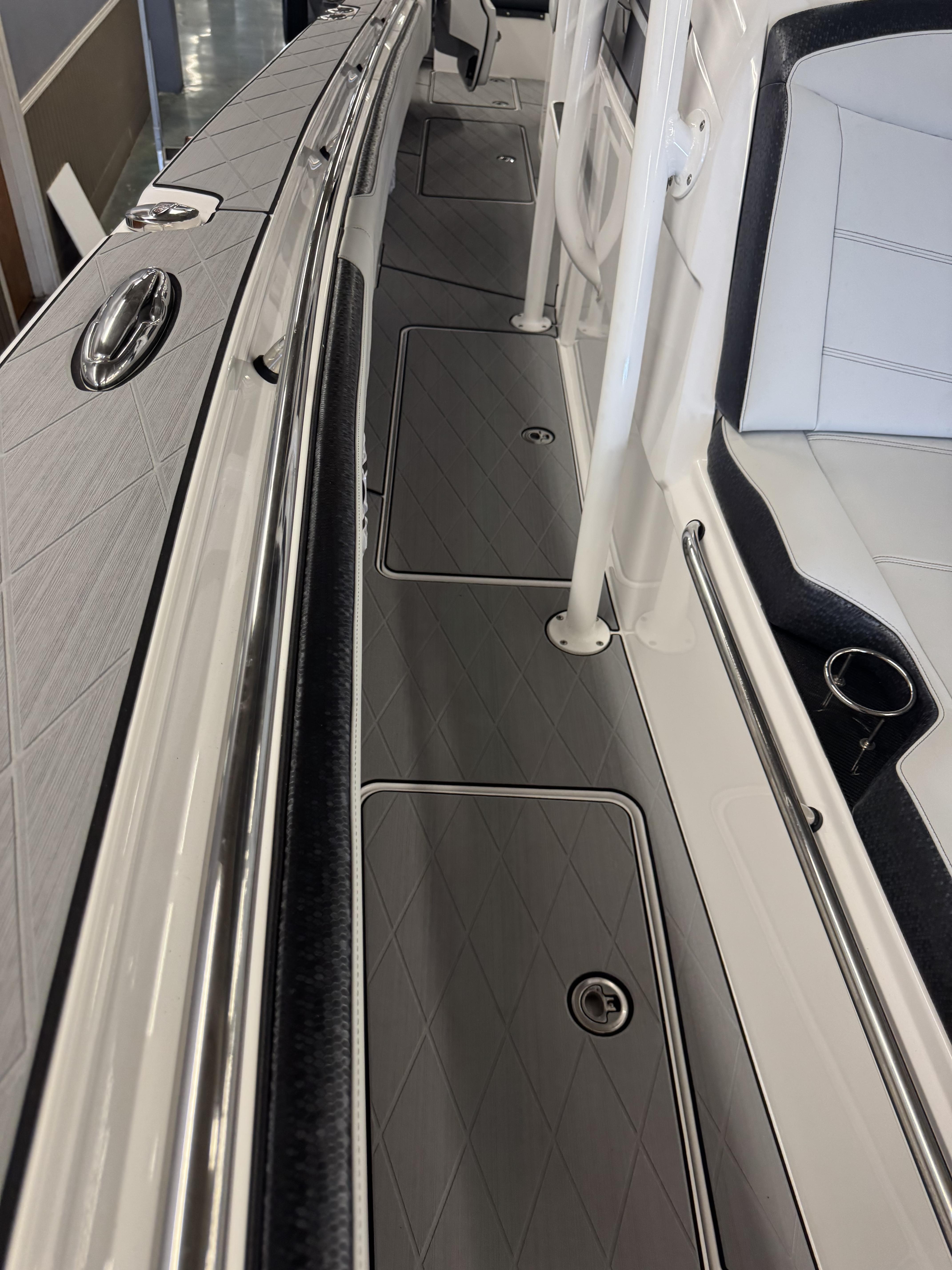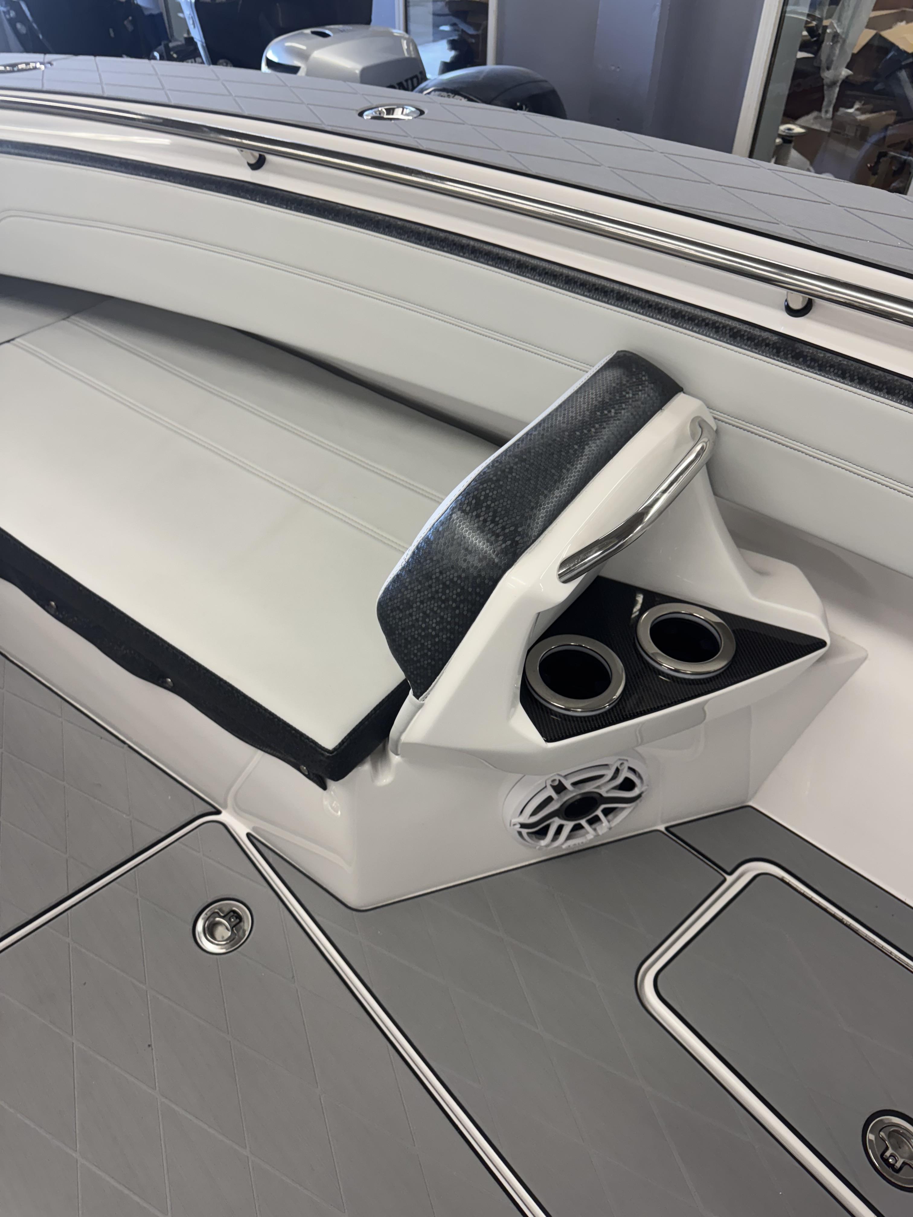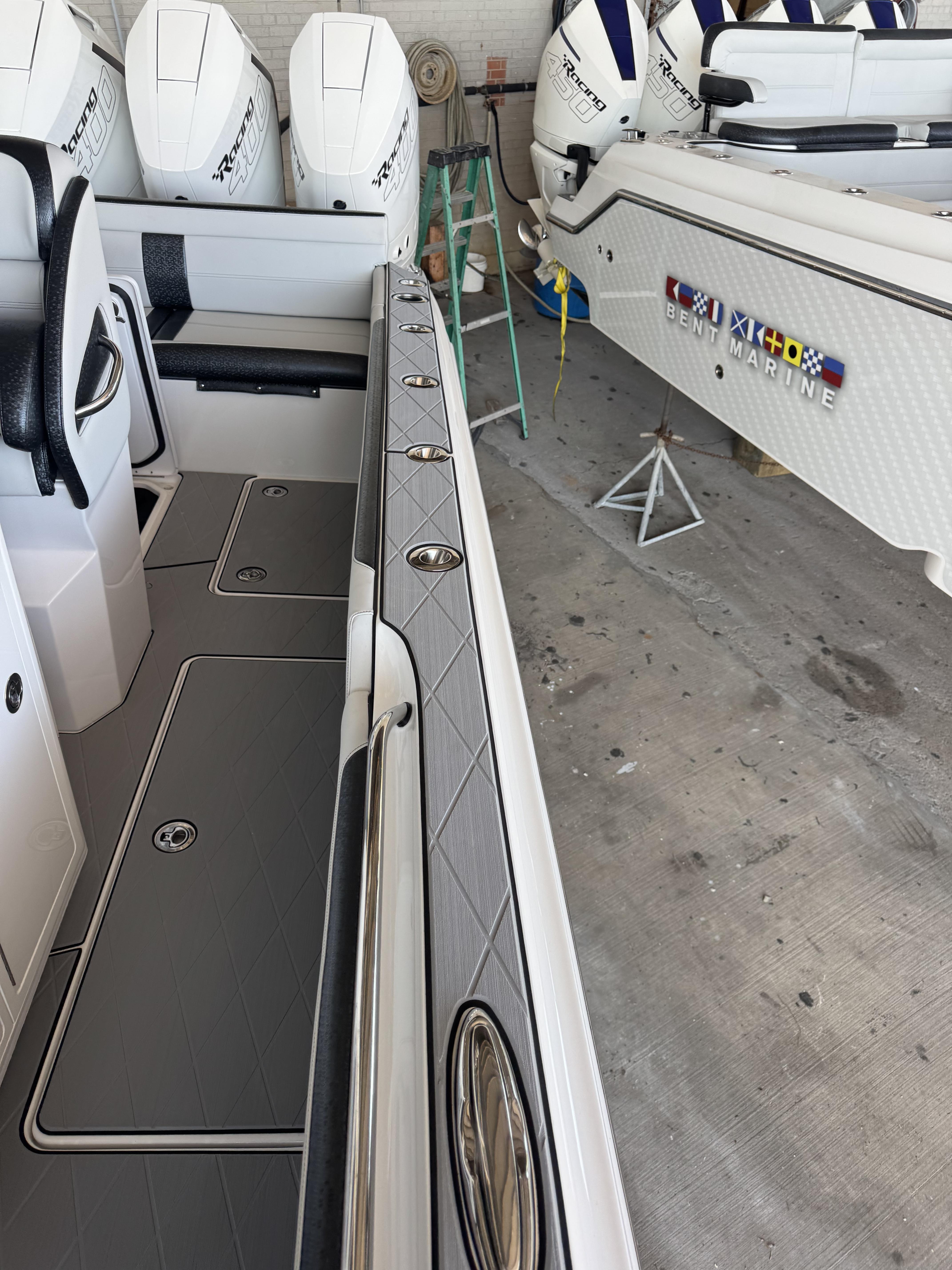 This is the brand new boat we have all been waiting for. It is the perfect combination of a comfortable sport boat with plenty seating for all of your crew and the 392 Nortech which is a super stable, smooth and dry, tough as nails Carbon Fiber and Kevlar reinforced hull that has 5 stringers, and 535 gallon of fuel capacity. The liner that is completely bonded all the way up both hullsides and across the top of all 5 stringers gives you peace of mind when the weather kicks up. It also has a huge fish box and under deck storage compartments. Whether you are tournament or recreational fishing, diving, hanging out on a beach, or running Poker Runs, this one is specially built for it all. To keep it all in Nor-Tech fashion we started with selecting Four 400R V-10 Mercury Engines in Cold Fusion White with Shadow controls and fresh water engine flush. Af the dash there are twin 22” Garmin multifunction glass screen displays flush mounted in the carbon fiber dash panel, XM Weather, sounder with dual chirp transducers, autopilot and GMR XHD Radar. There are 2 VHF Radios and a Sound system that surrounds you with JL Audio Speakers with the cleanest highs and the deepest lows. Here is the rest of the list that sums up the build. -Lumishore SMX 154 LED RGB Underwater lights -Second Row Helmseat-Molded Bow seating with Forward facing backrests-Upholstered Dash Panel with net-Cabin AIr Condition with Dash Vents-Cockpit Coaming pads-8 Group 31 AGM Batteries-2 Battery Chargers-Joystick Bow Thruster Control-Tackle Center Helmseat with Salt and Fresh water Sink-Frigid Rigid Cooler on Slides-Rod holder Cup Holders-Gunnel Rod Holders-Transom Rod Holders (13) With tilted center trolling rod-Extra Large Hard Top with Rod Holders and welded rear legs-Marine White Powder Coat-Hard Top Upper Storage Box-Gemlux Outrigger Bases with Carbon Fiber Telescopic Poles-Windlass, Anchor, Chain and Rope-Electric Head with tank and overboard Discharge-Side Dive Door with Ladder-Light Blue Gelcoat in Livewells andFishboxes-30” LED Light Bar-4 Electric Reel or Downrigger Outlets-Storm Grey Sea Deck with Ghosted Diamonds on -Light Grey Hull Sides and Bottom-2 Washdown pumps with 4 Hose Spigots-Fresh Water system with 2 Spigots and Fresh Water Shower-Forward and Rear Spreader Lights-Lighted Storage Boxes-Port side Steering Wheel for driver mobility-Tilt Steering Helm