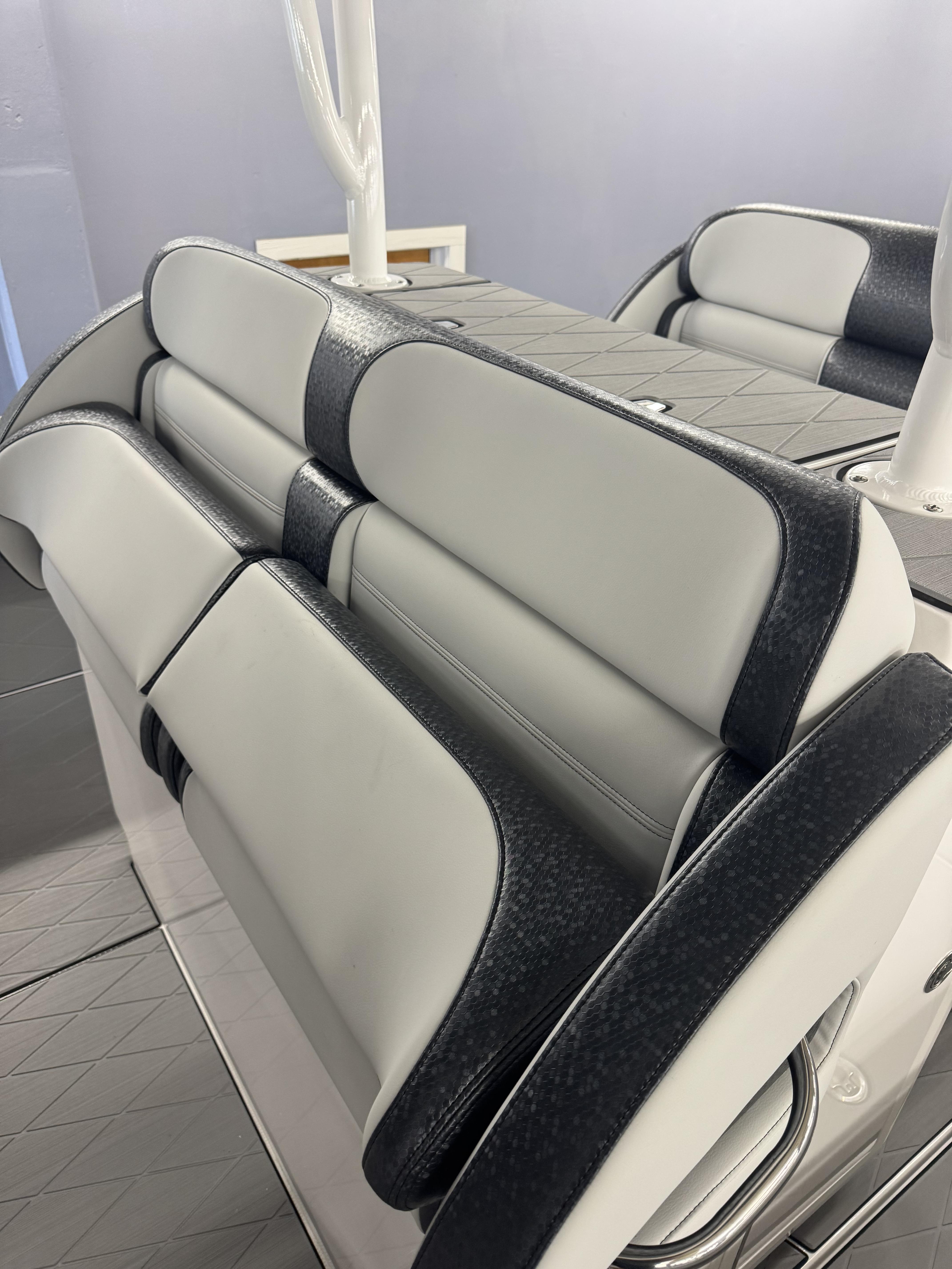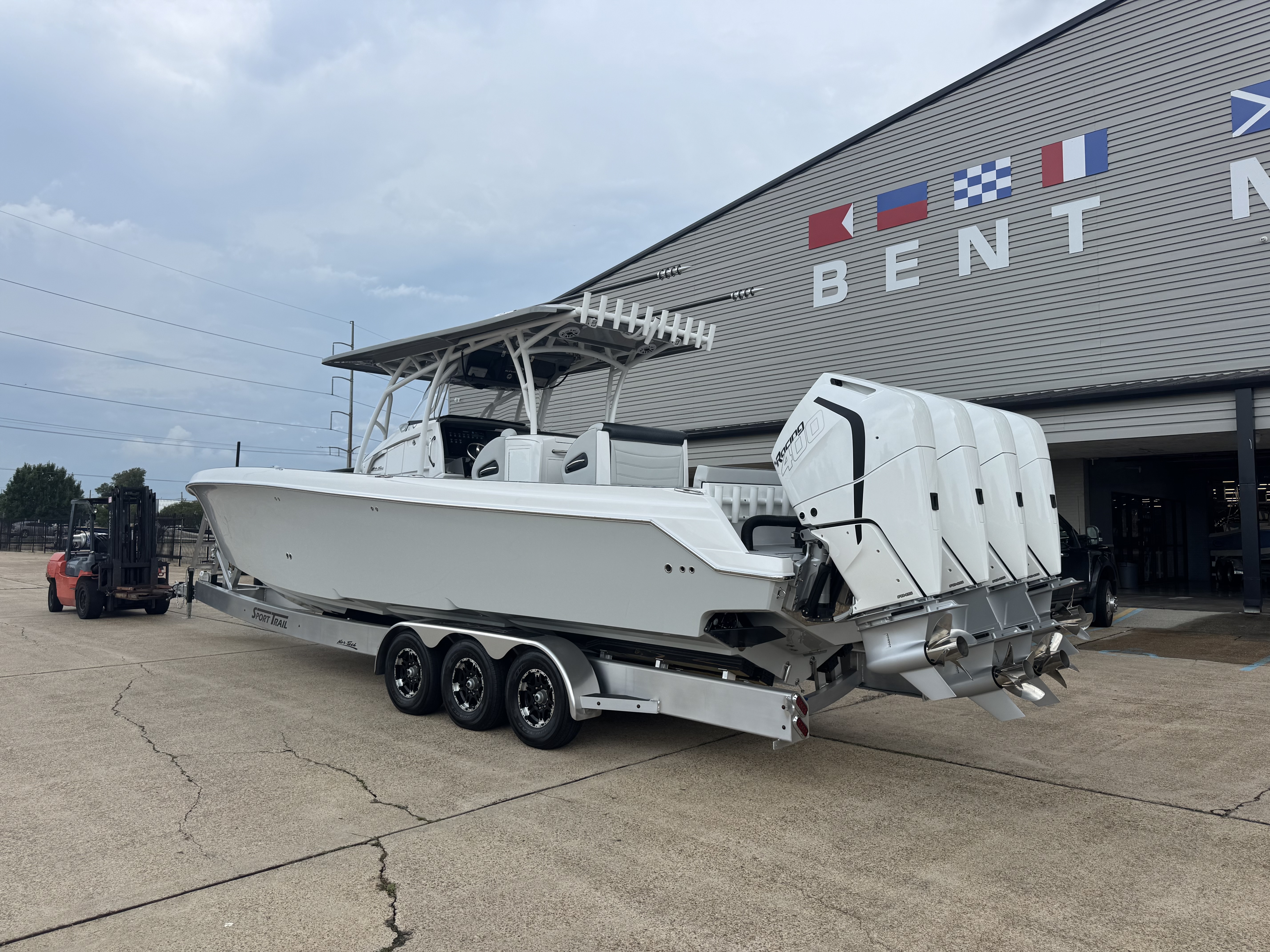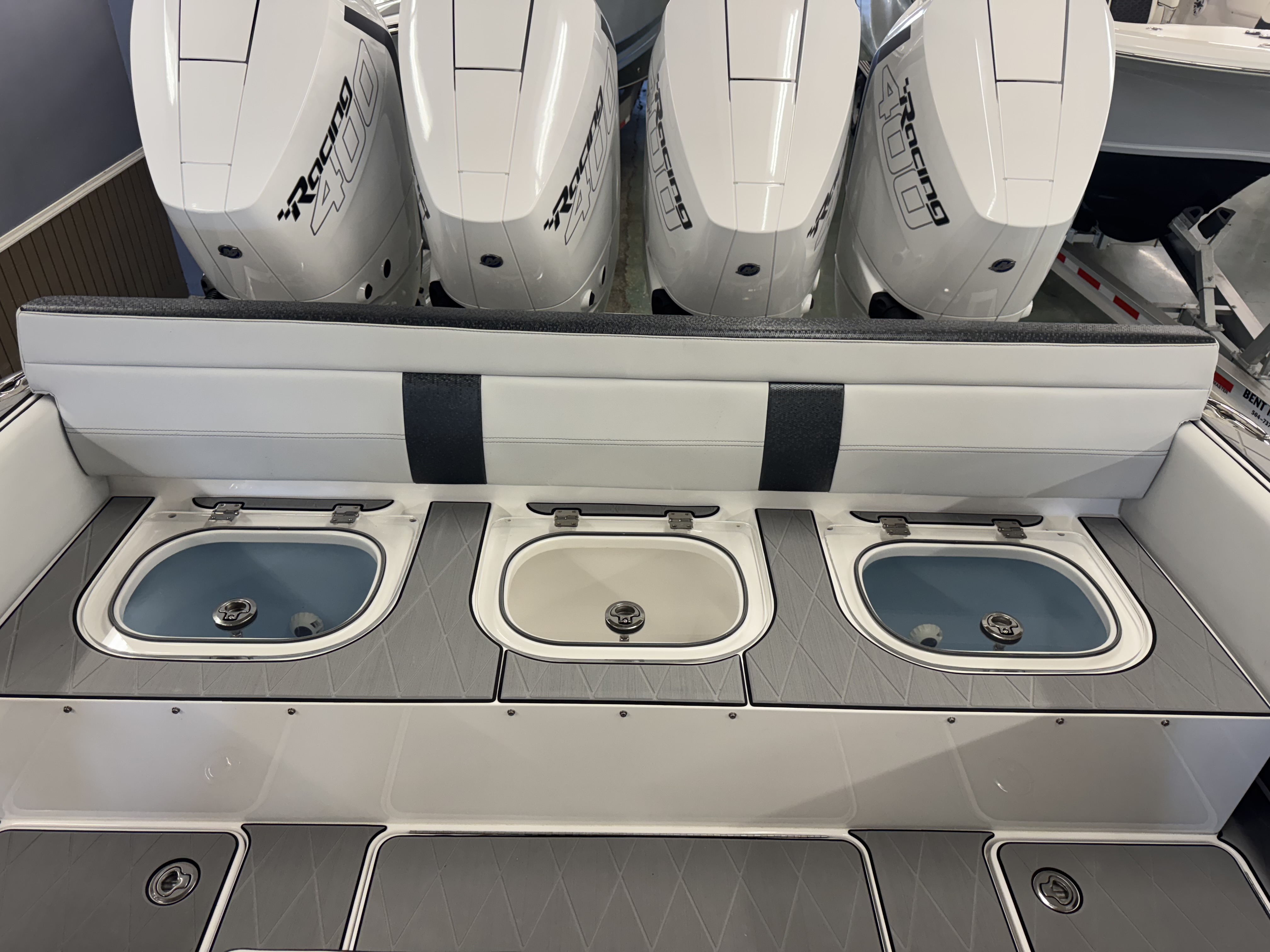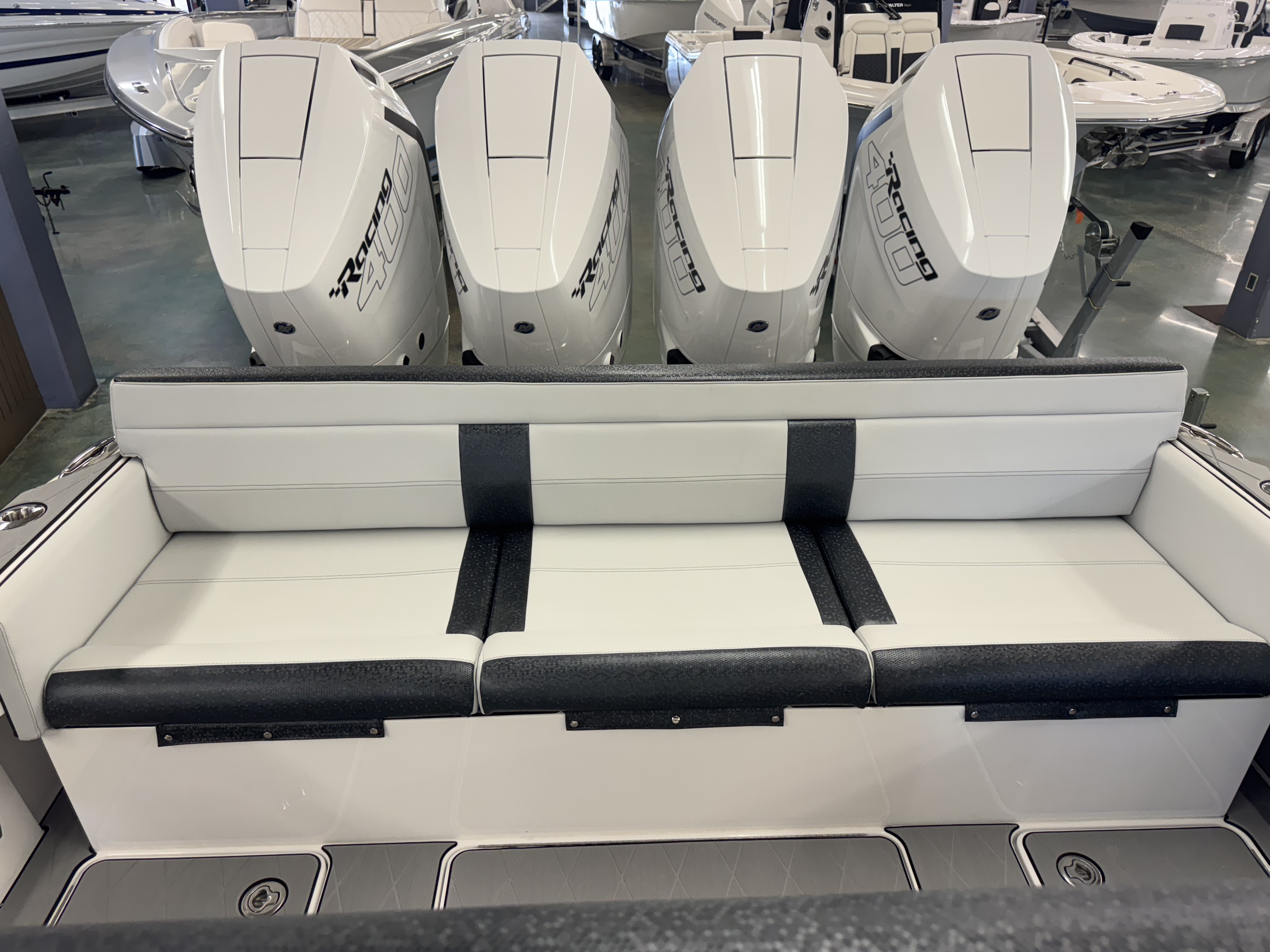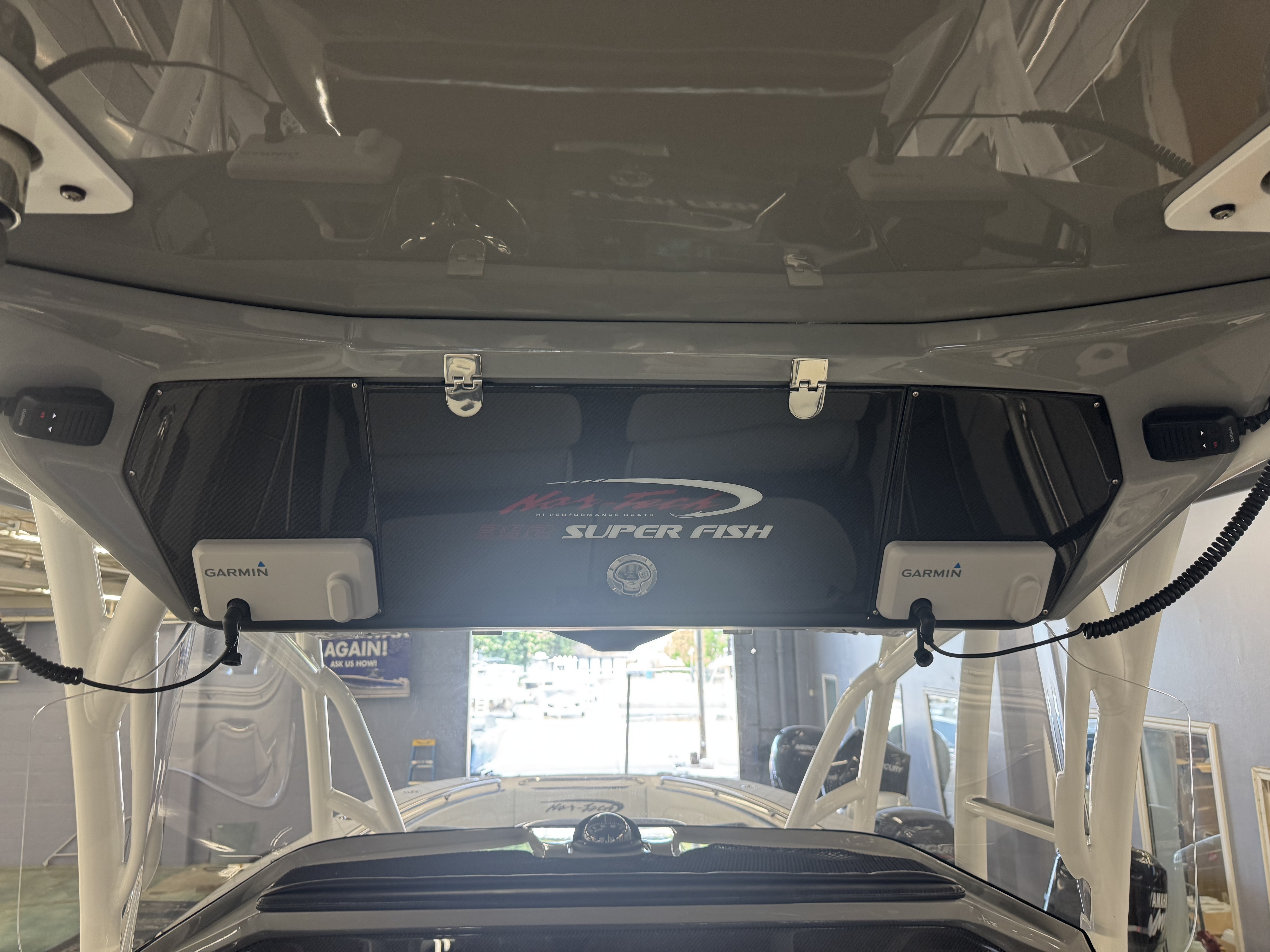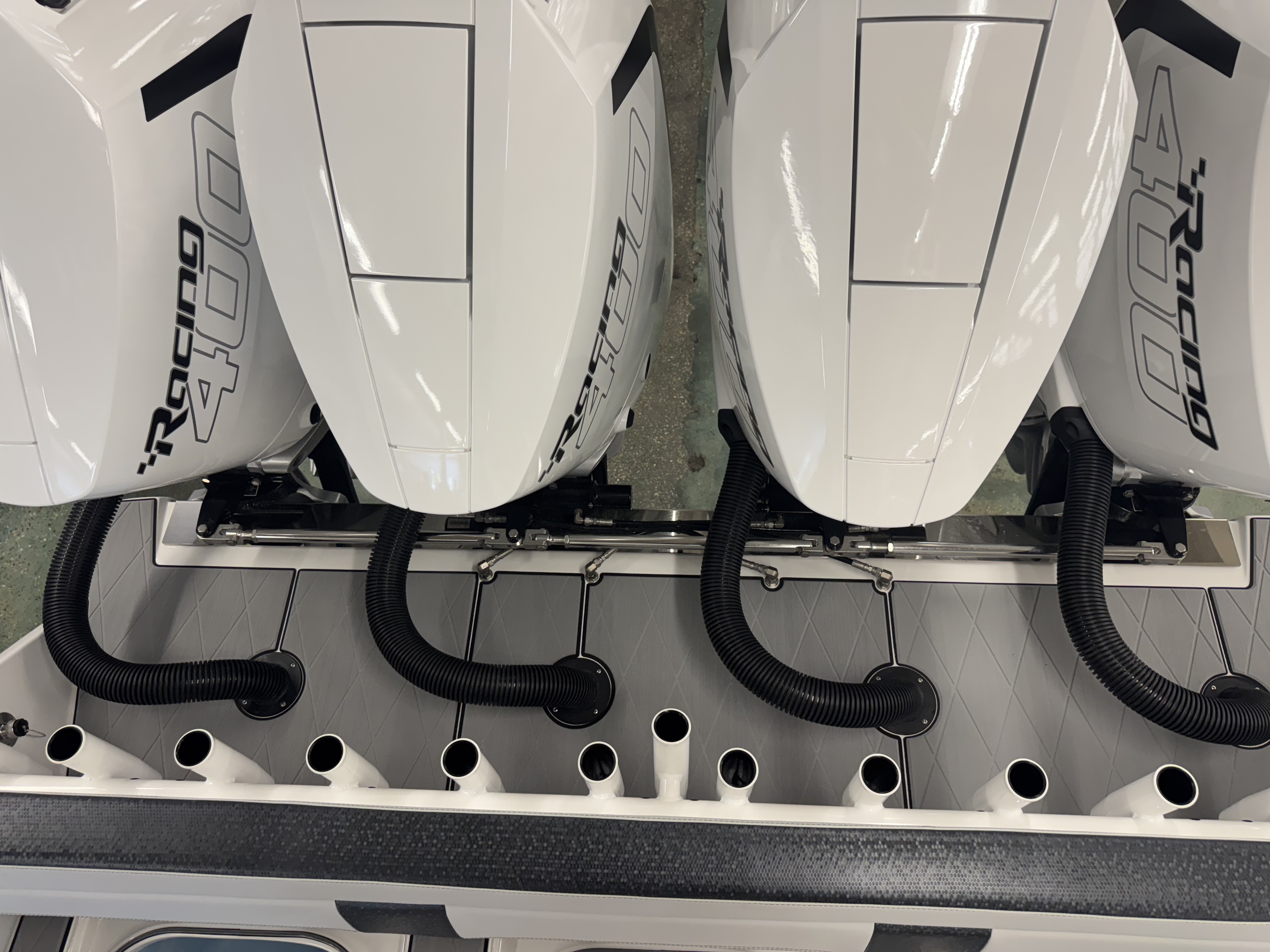 This is the brand new boat we have all been waiting for. It is the perfect combination of a comfortable sport boat with plenty seating for all of your crew and the 392 Nortech which is a super stable, smooth and dry, tough as nails Carbon Fiber and Kevlar reinforced hull that has 5 stringers, and 535 gallon of fuel capacity. The liner that is completely bonded all the way up both hullsides and across the top of all 5 stringers gives you peace of mind when the weather kicks up. It also has a huge fish box and under deck storage compartments. Whether you are tournament or recreational fishing, diving, hanging out on a beach, or running Poker Runs, this one is specially built for it all. To keep it all in Nor-Tech fashion we started with selecting Four 400R V-10 Mercury Engines in Cold Fusion White with Shadow controls and fresh water engine flush. Af the dash there are twin 22” Garmin multifunction glass screen displays flush mounted in the carbon fiber dash panel, XM Weather, sounder with dual chirp transducers, autopilot and GMR XHD Radar. There are 2 VHF Radios and a Sound system that surrounds you with JL Audio Speakers with the cleanest highs and the deepest lows. Here is the rest of the list that sums up the build. -Lumishore SMX 154 LED RGB Underwater lights -Second Row Helmseat-Molded Bow seating with Forward facing backrests-Upholstered Dash Panel with net-Cabin AIr Condition with Dash Vents-Cockpit Coaming pads-8 Group 31 AGM Batteries-2 Battery Chargers-Joystick Bow Thruster Control-Tackle Center Helmseat with Salt and Fresh water Sink-Frigid Rigid Cooler on Slides-Rod holder Cup Holders-Gunnel Rod Holders-Transom Rod Holders (13) With tilted center trolling rod-Extra Large Hard Top with Rod Holders and welded rear legs-Marine White Powder Coat-Hard Top Upper Storage Box-Gemlux Outrigger Bases with Carbon Fiber Telescopic Poles-Windlass, Anchor, Chain and Rope-Electric Head with tank and overboard Discharge-Side Dive Door with Ladder-Light Blue Gelcoat in Livewells andFishboxes-30” LED Light Bar-4 Electric Reel or Downrigger Outlets-Storm Grey Sea Deck with Ghosted Diamonds on -Light Grey Hull Sides and Bottom-2 Washdown pumps with 4 Hose Spigots-Fresh Water system with 2 Spigots and Fresh Water Shower-Forward and Rear Spreader Lights-Lighted Storage Boxes-Port side Steering Wheel for driver mobility-Tilt Steering Helm