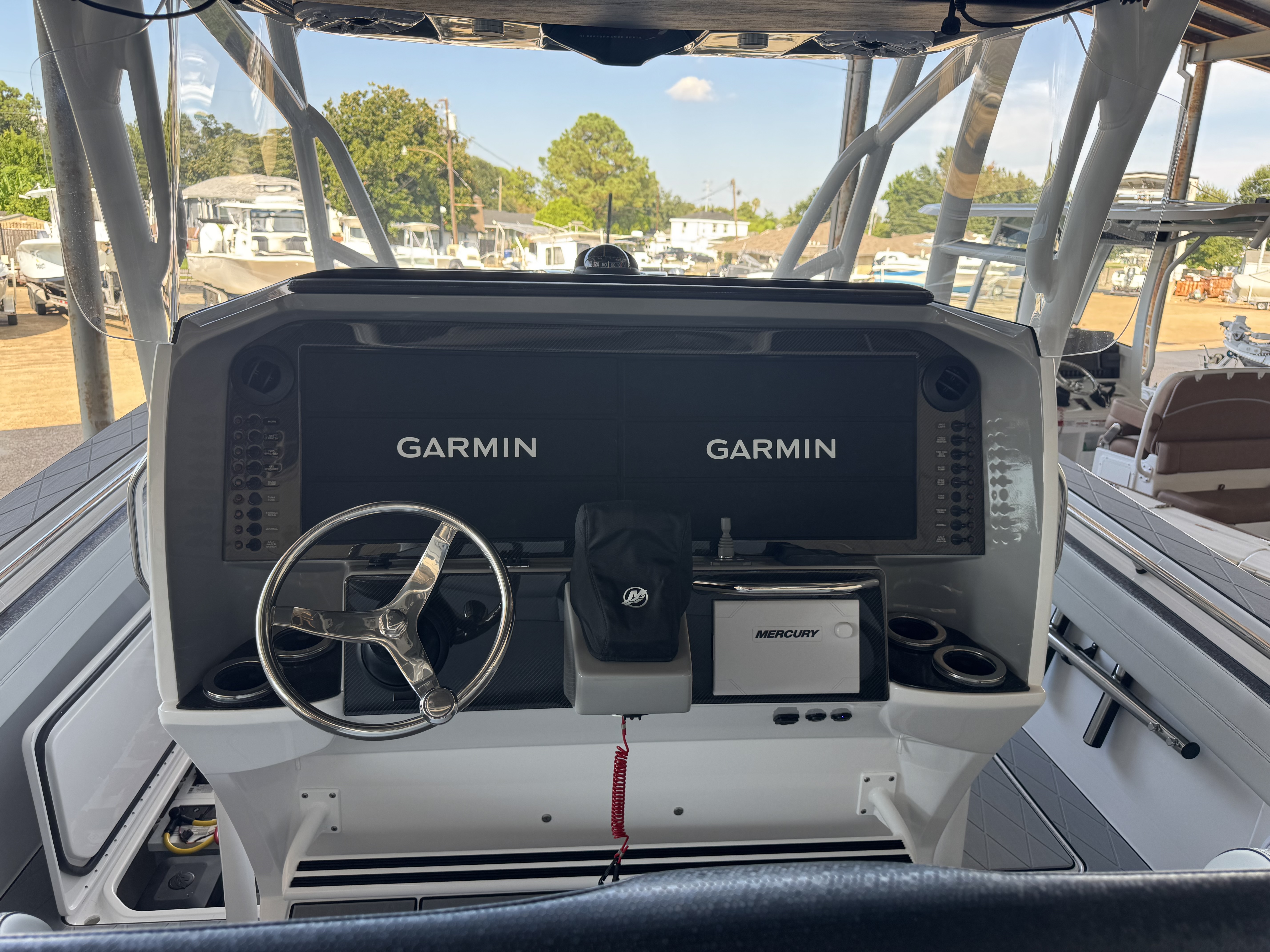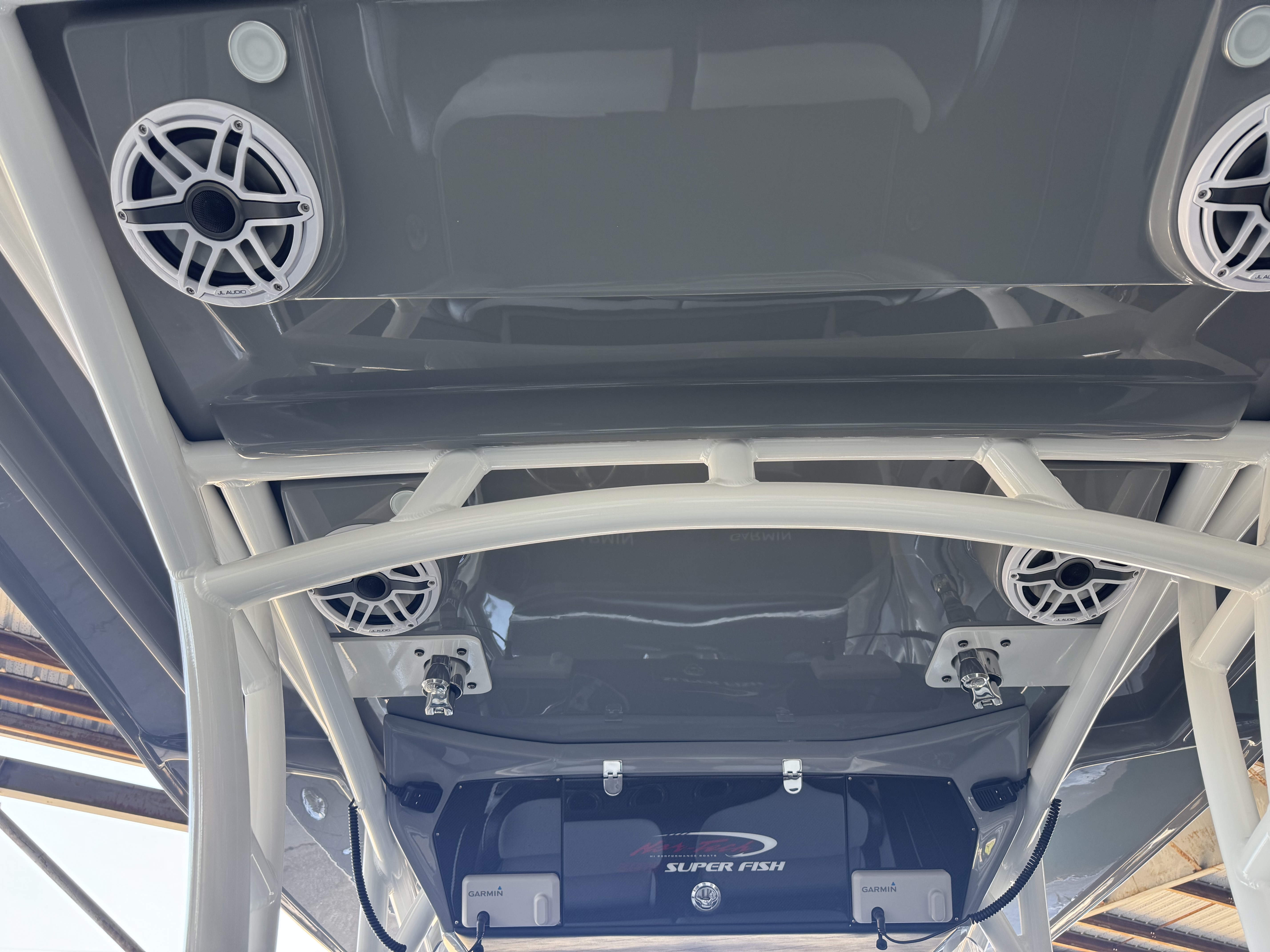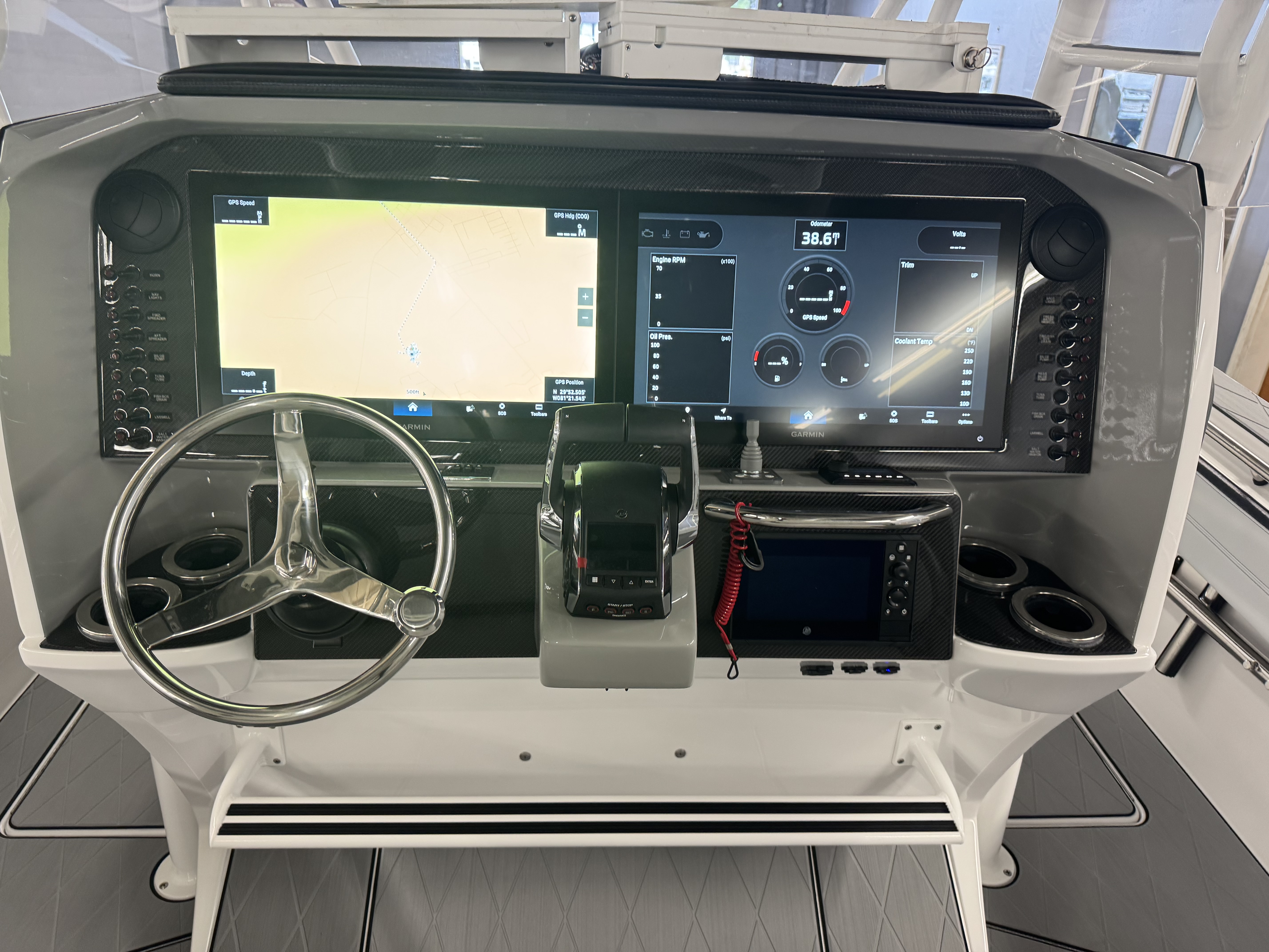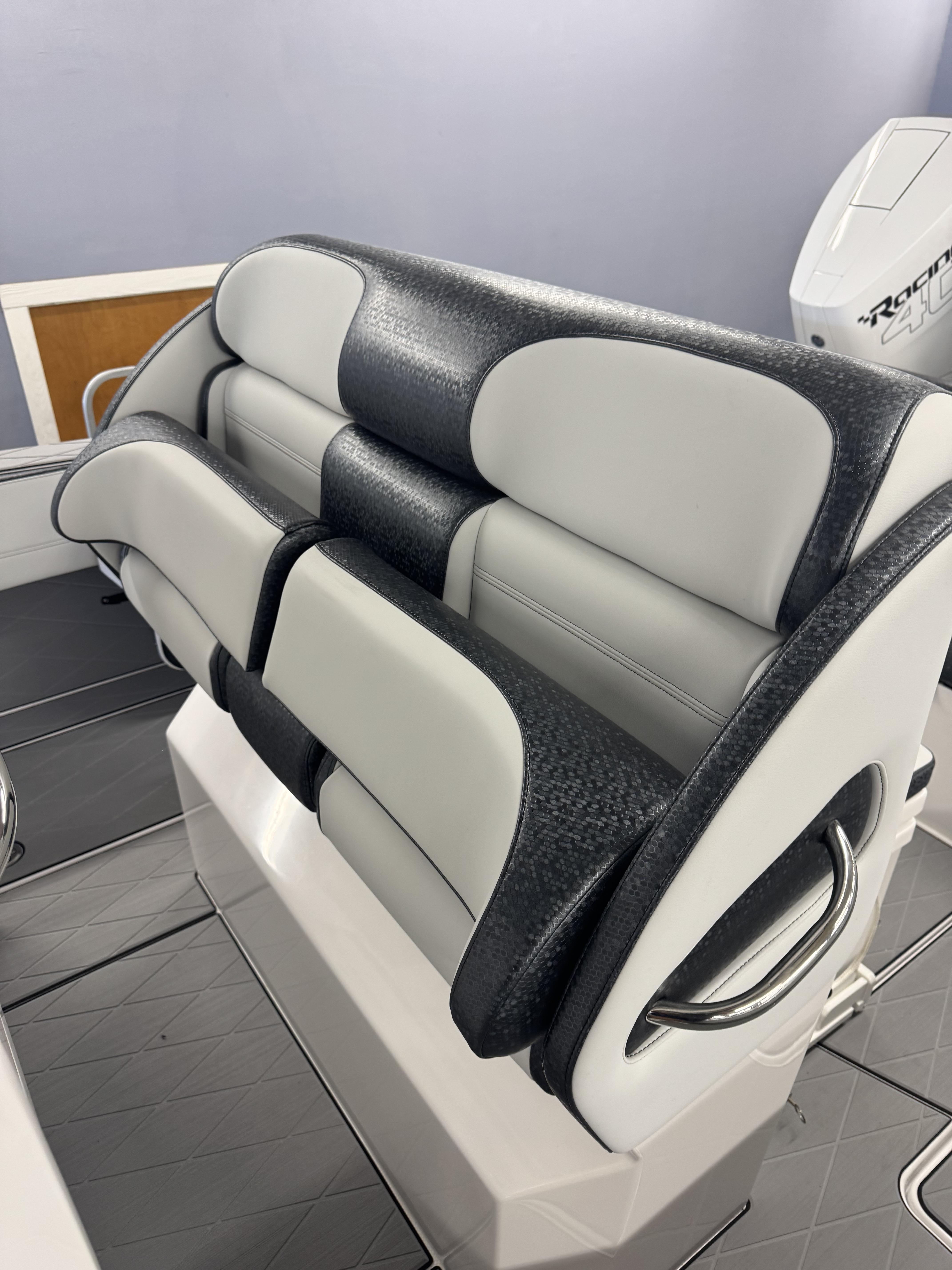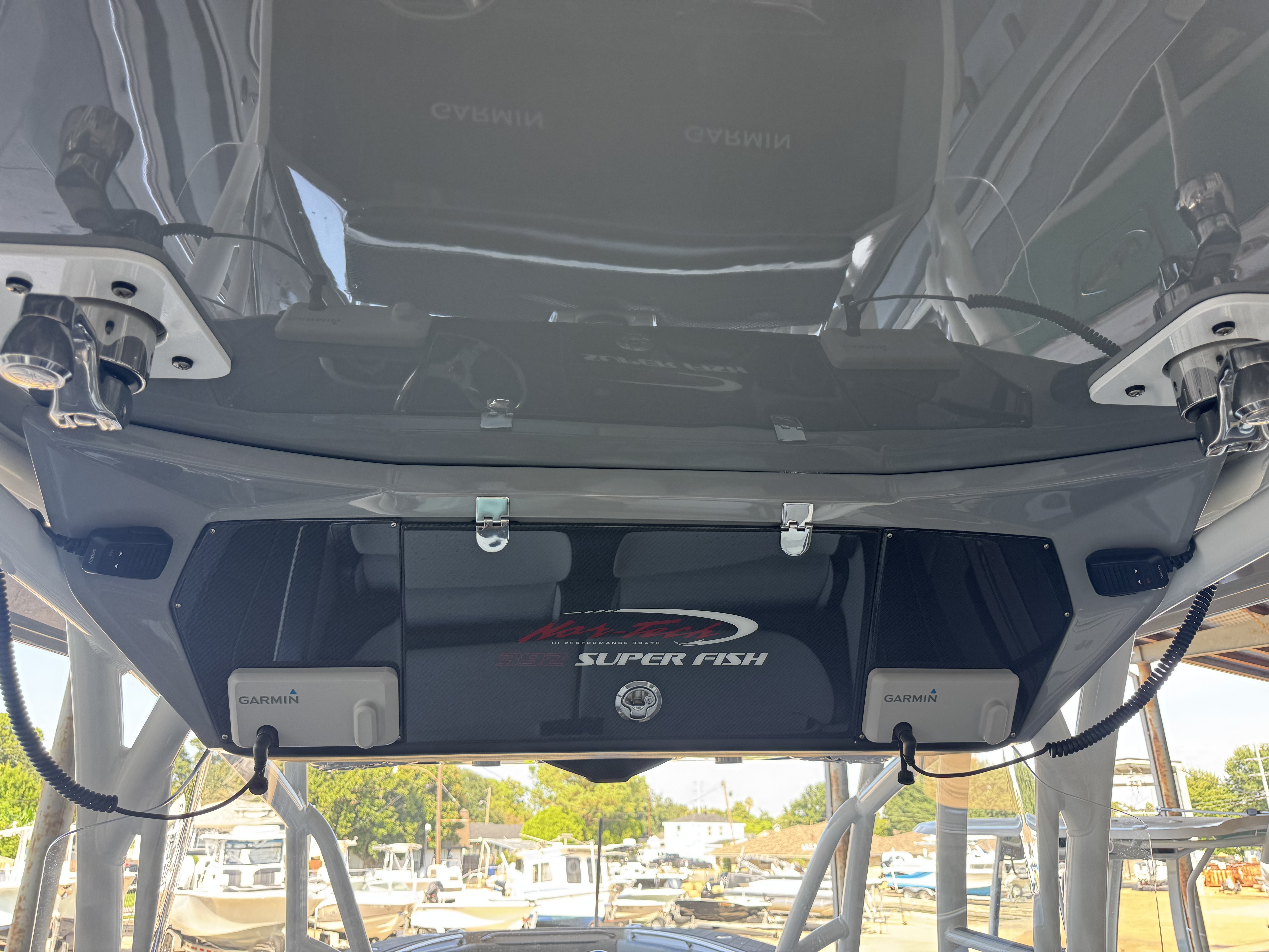This is the brand new boat we have all been waiting for. It is the perfect combination of a comfortable sport boat with plenty seating for all of your crew and the 392 Nortech which is a super stable, smooth and dry, tough as nails Carbon Fiber and Kevlar reinforced hull that has 5 stringers, and 535 gallon of fuel capacity. The liner that is completely bonded all the way up both hullsides and across the top of all 5 stringers gives you peace of mind when the weather kicks up. It also has a huge fish box and under deck storage compartments. Whether you are tournament or recreational fishing, diving, hanging out on a beach, or running Poker Runs, this one is specially built for it all. To keep it all in Nor-Tech fashion we started with selecting Four 400R V-10 Mercury Engines in Cold Fusion White with Shadow controls and fresh water engine flush. Af the dash there are twin 22” Garmin multifunction glass screen displays flush mounted in the carbon fiber dash panel, XM Weather, sounder with dual chirp transducers, autopilot and GMR XHD Radar. There are 2 VHF Radios and a Sound system that surrounds you with JL Audio Speakers with the cleanest highs and the deepest lows. Here is the rest of the list that sums up the build. -Lumishore SMX 154 LED RGB Underwater lights -Second Row Helmseat-Molded Bow seating with Forward facing backrests-Upholstered Dash Panel with net-Cabin AIr Condition with Dash Vents-Cockpit Coaming pads-8 Group 31 AGM Batteries-2 Battery Chargers-Joystick Bow Thruster Control-Tackle Center Helmseat with Salt and Fresh water Sink-Frigid Rigid Cooler on Slides-Rod holder Cup Holders-Gunnel Rod Holders-Transom Rod Holders (13) With tilted center trolling rod-Extra Large Hard Top with Rod Holders and welded rear legs-Marine White Powder Coat-Hard Top Upper Storage Box-Gemlux Outrigger Bases with Carbon Fiber Telescopic Poles-Windlass, Anchor, Chain and Rope-Electric Head with tank and overboard Discharge-Side Dive Door with Ladder-Light Blue Gelcoat in Livewells andFishboxes-30” LED Light Bar-4 Electric Reel or Downrigger Outlets-Storm Grey Sea Deck with Ghosted Diamonds on -Light Grey Hull Sides and Bottom-2 Washdown pumps with 4 Hose Spigots-Fresh Water system with 2 Spigots and Fresh Water Shower-Forward and Rear Spreader Lights-Lighted Storage Boxes-Port side Steering Wheel for driver mobility-Tilt Steering Helm