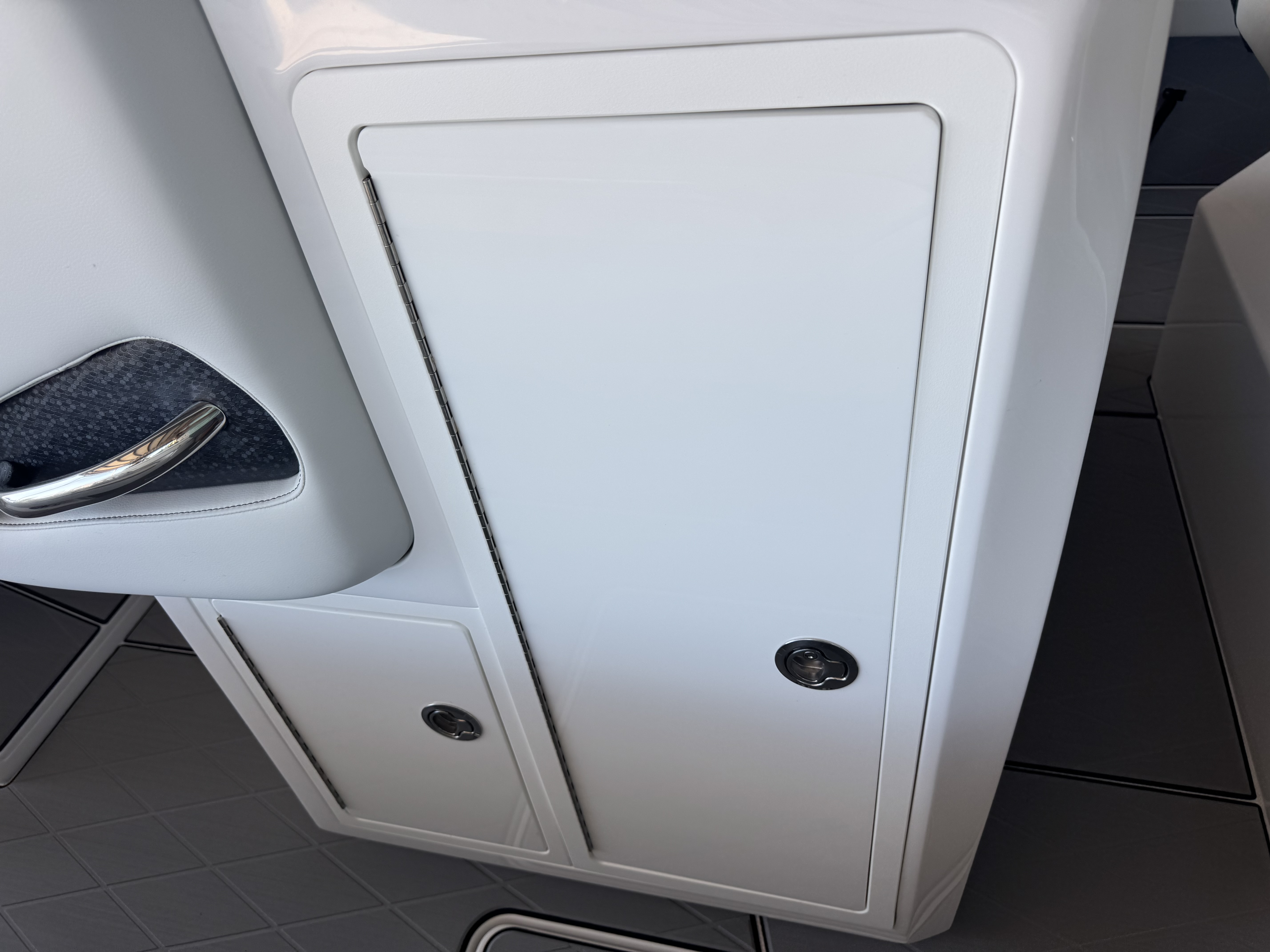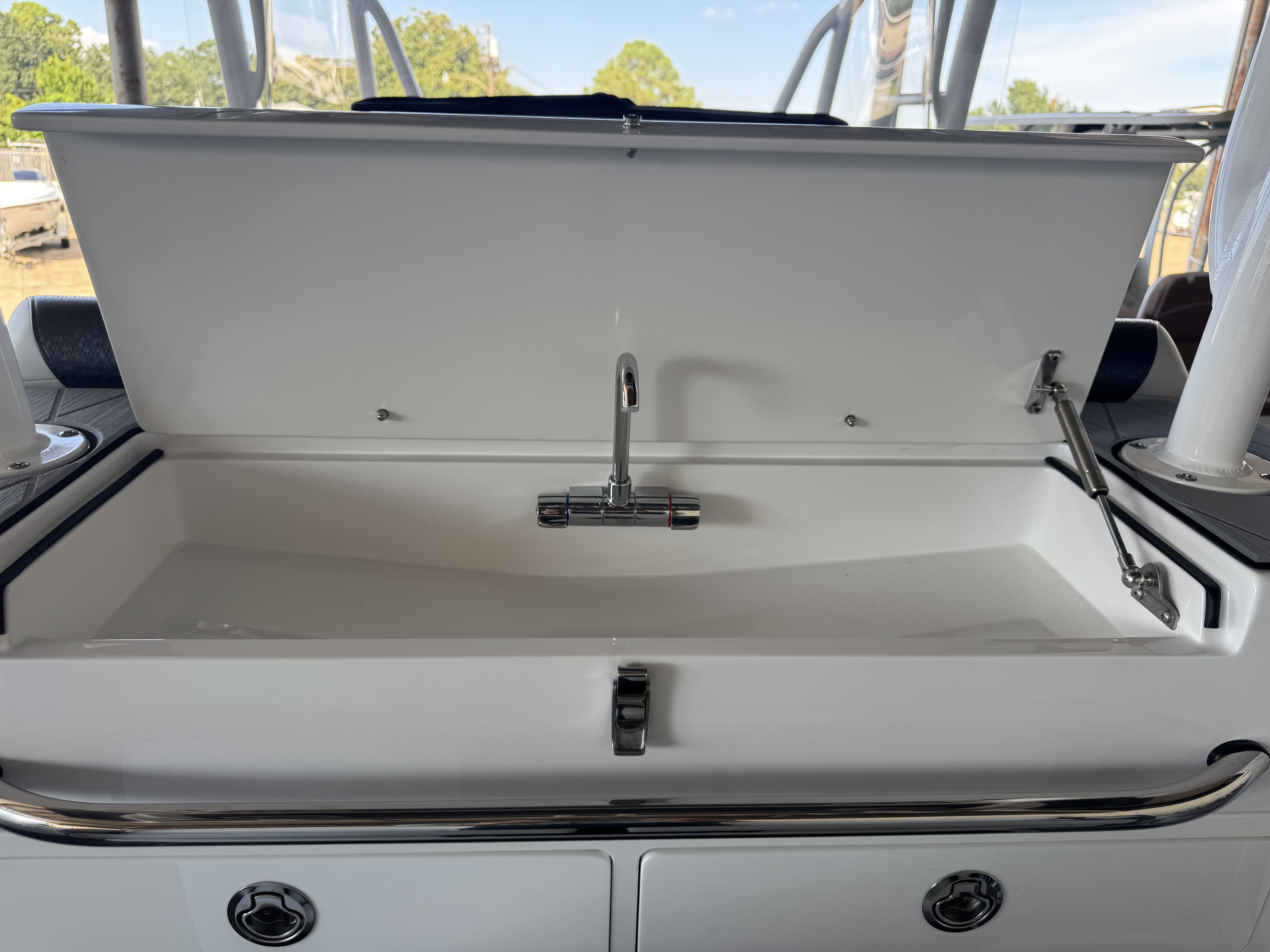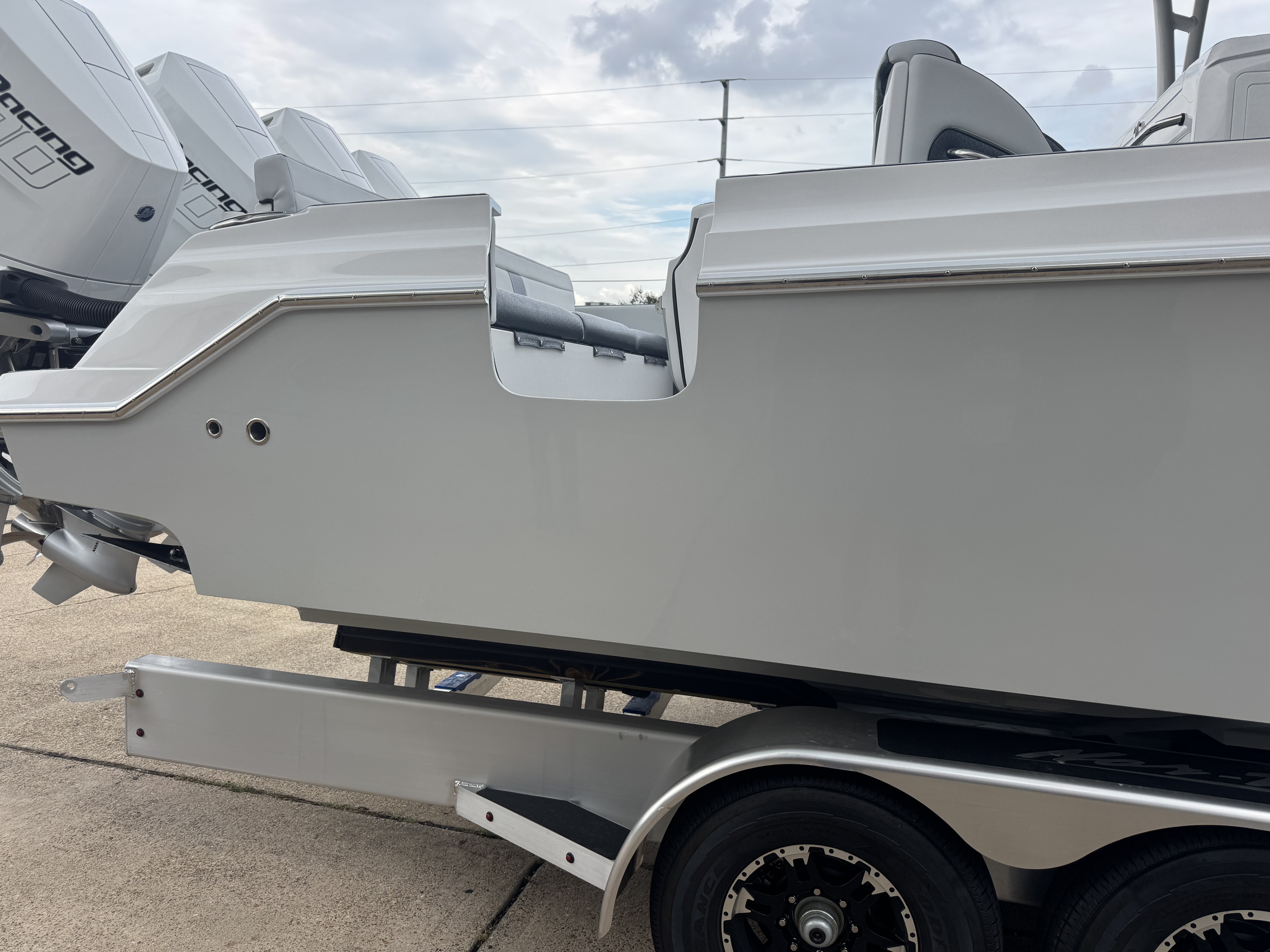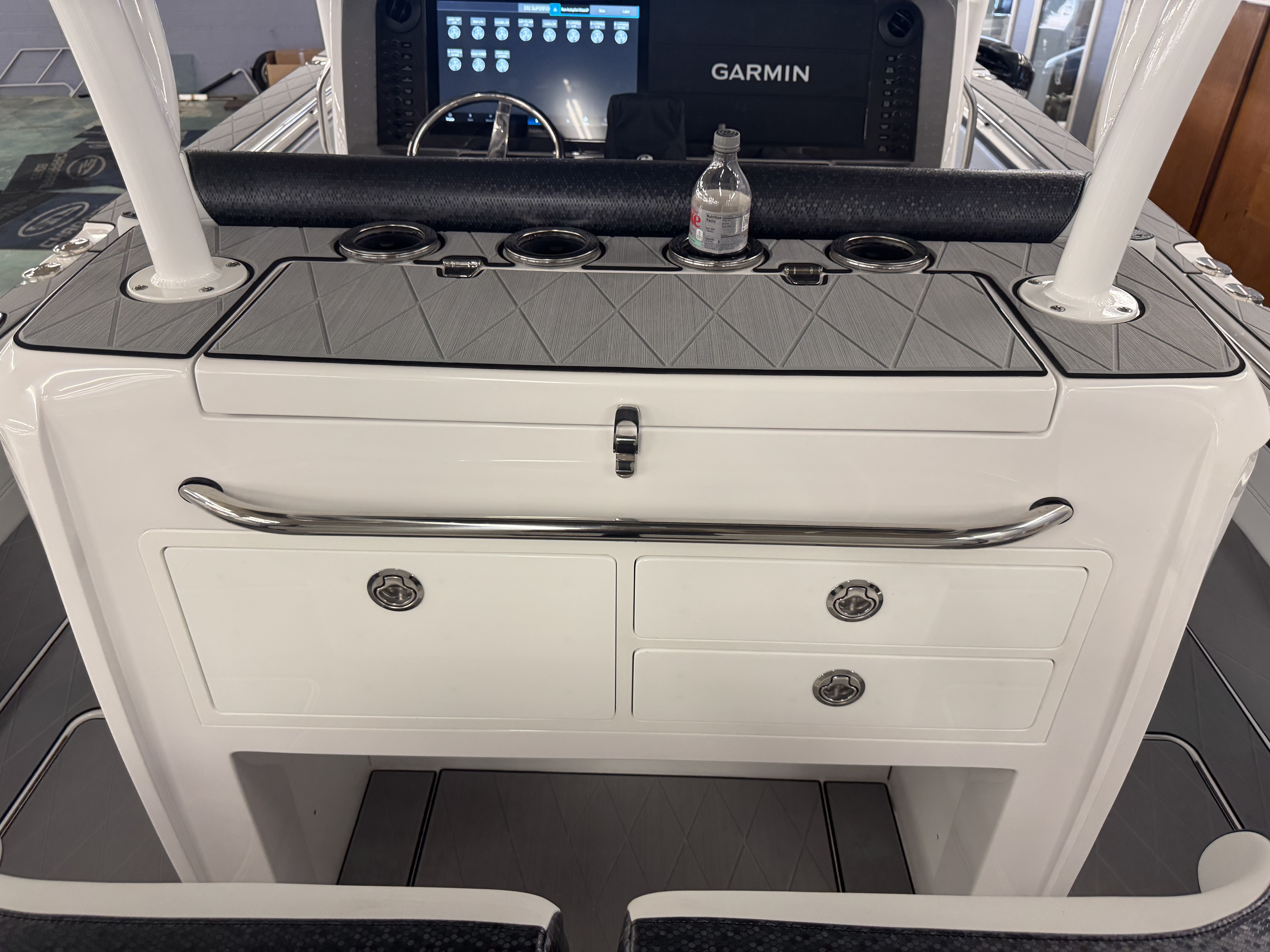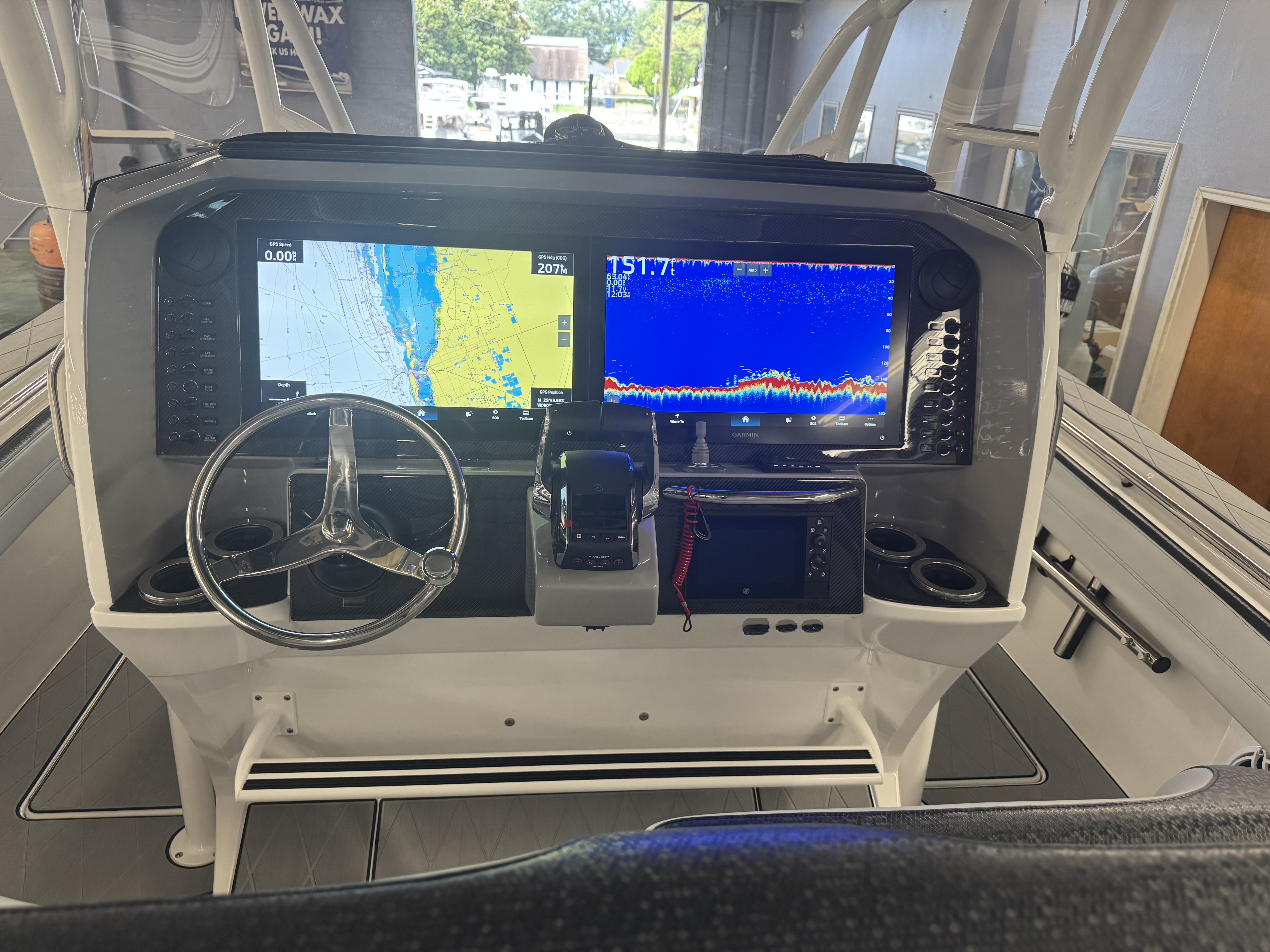 This is the brand new boat we have all been waiting for. It is the perfect combination of a comfortable sport boat with plenty seating for all of your crew and the 392 Nortech which is a super stable, smooth and dry, tough as nails Carbon Fiber and Kevlar reinforced hull that has 5 stringers, and 535 gallon of fuel capacity. The liner that is completely bonded all the way up both hullsides and across the top of all 5 stringers gives you peace of mind when the weather kicks up. It also has a huge fish box and under deck storage compartments. Whether you are tournament or recreational fishing, diving, hanging out on a beach, or running Poker Runs, this one is specially built for it all. To keep it all in Nor-Tech fashion we started with selecting Four 400R V-10 Mercury Engines in Cold Fusion White with Shadow controls and fresh water engine flush. Af the dash there are twin 22” Garmin multifunction glass screen displays flush mounted in the carbon fiber dash panel, XM Weather, sounder with dual chirp transducers, autopilot and GMR XHD Radar. There are 2 VHF Radios and a Sound system that surrounds you with JL Audio Speakers with the cleanest highs and the deepest lows. Here is the rest of the list that sums up the build. -Lumishore SMX 154 LED RGB Underwater lights -Second Row Helmseat-Molded Bow seating with Forward facing backrests-Upholstered Dash Panel with net-Cabin AIr Condition with Dash Vents-Cockpit Coaming pads-8 Group 31 AGM Batteries-2 Battery Chargers-Joystick Bow Thruster Control-Tackle Center Helmseat with Salt and Fresh water Sink-Frigid Rigid Cooler on Slides-Rod holder Cup Holders-Gunnel Rod Holders-Transom Rod Holders (13) With tilted center trolling rod-Extra Large Hard Top with Rod Holders and welded rear legs-Marine White Powder Coat-Hard Top Upper Storage Box-Gemlux Outrigger Bases with Carbon Fiber Telescopic Poles-Windlass, Anchor, Chain and Rope-Electric Head with tank and overboard Discharge-Side Dive Door with Ladder-Light Blue Gelcoat in Livewells andFishboxes-30” LED Light Bar-4 Electric Reel or Downrigger Outlets-Storm Grey Sea Deck with Ghosted Diamonds on -Light Grey Hull Sides and Bottom-2 Washdown pumps with 4 Hose Spigots-Fresh Water system with 2 Spigots and Fresh Water Shower-Forward and Rear Spreader Lights-Lighted Storage Boxes-Port side Steering Wheel for driver mobility-Tilt Steering Helm