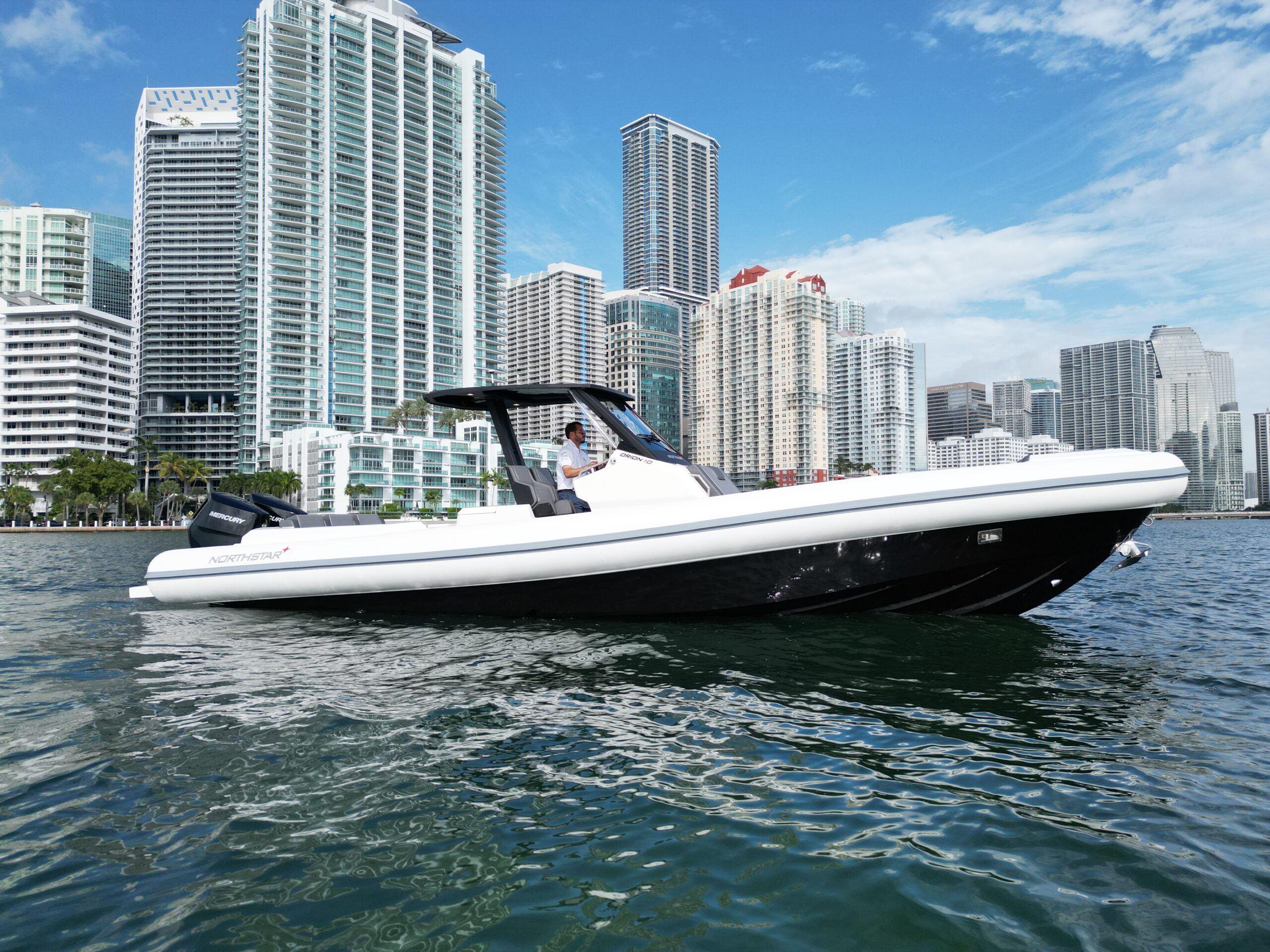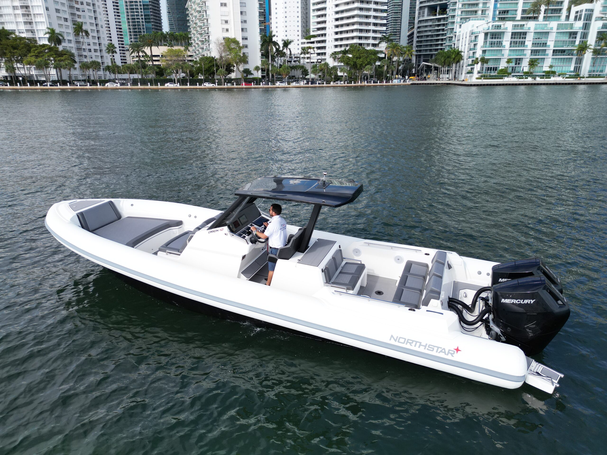 The Northstar Orion 10 is a luxury cruising tender with max speed of twin engine Mercury 350HP V10, . This class B, offshore RIB is ideal for use as a yacht tender or as a dayboat. The Evo-2 Stepped Hull design delivers stability, strength, and high-speed performance. Carrying on the NorthStar tradition of attractive but minimalist designs, the Orion 8 will set the new benchmark in mid range cruising RIBs.