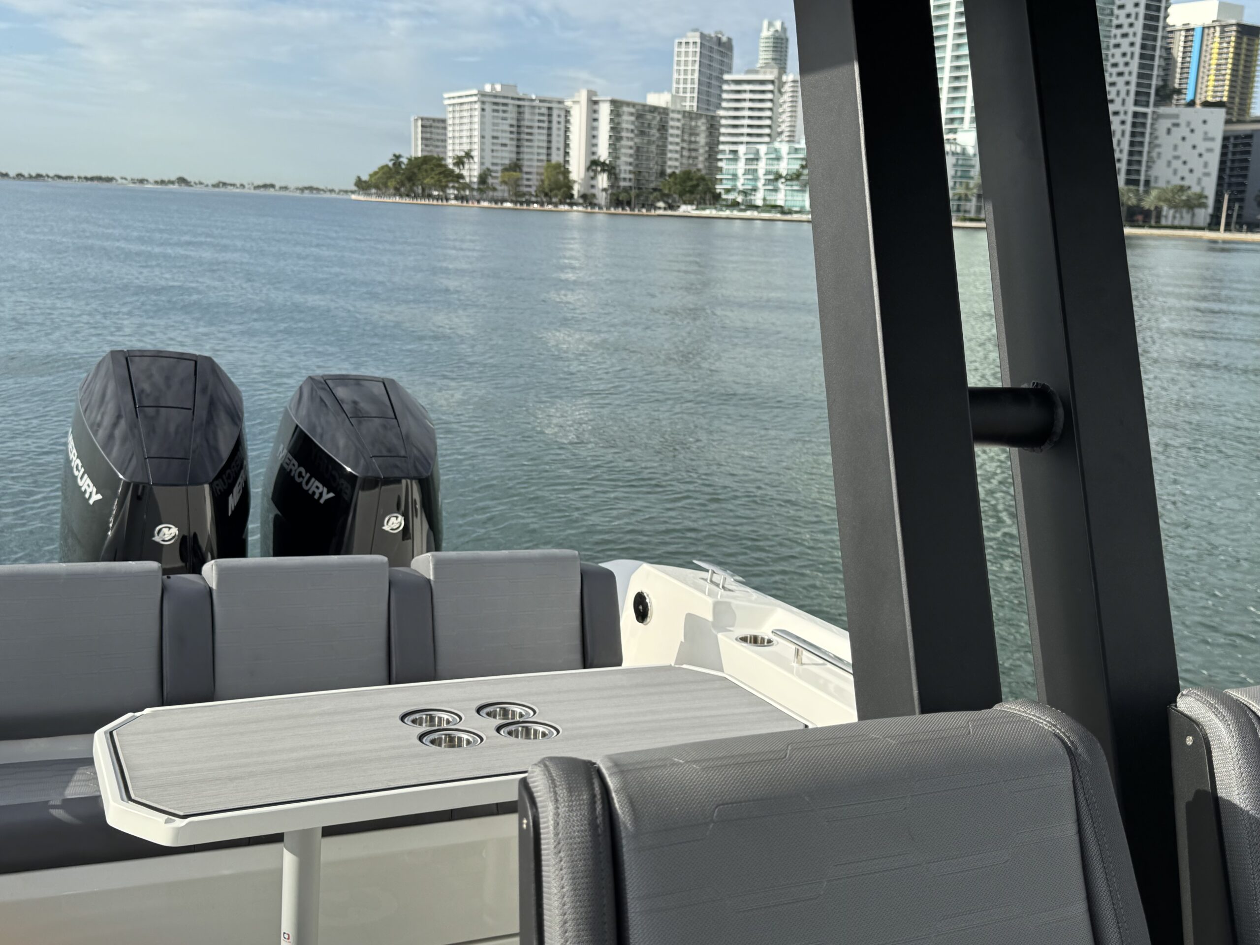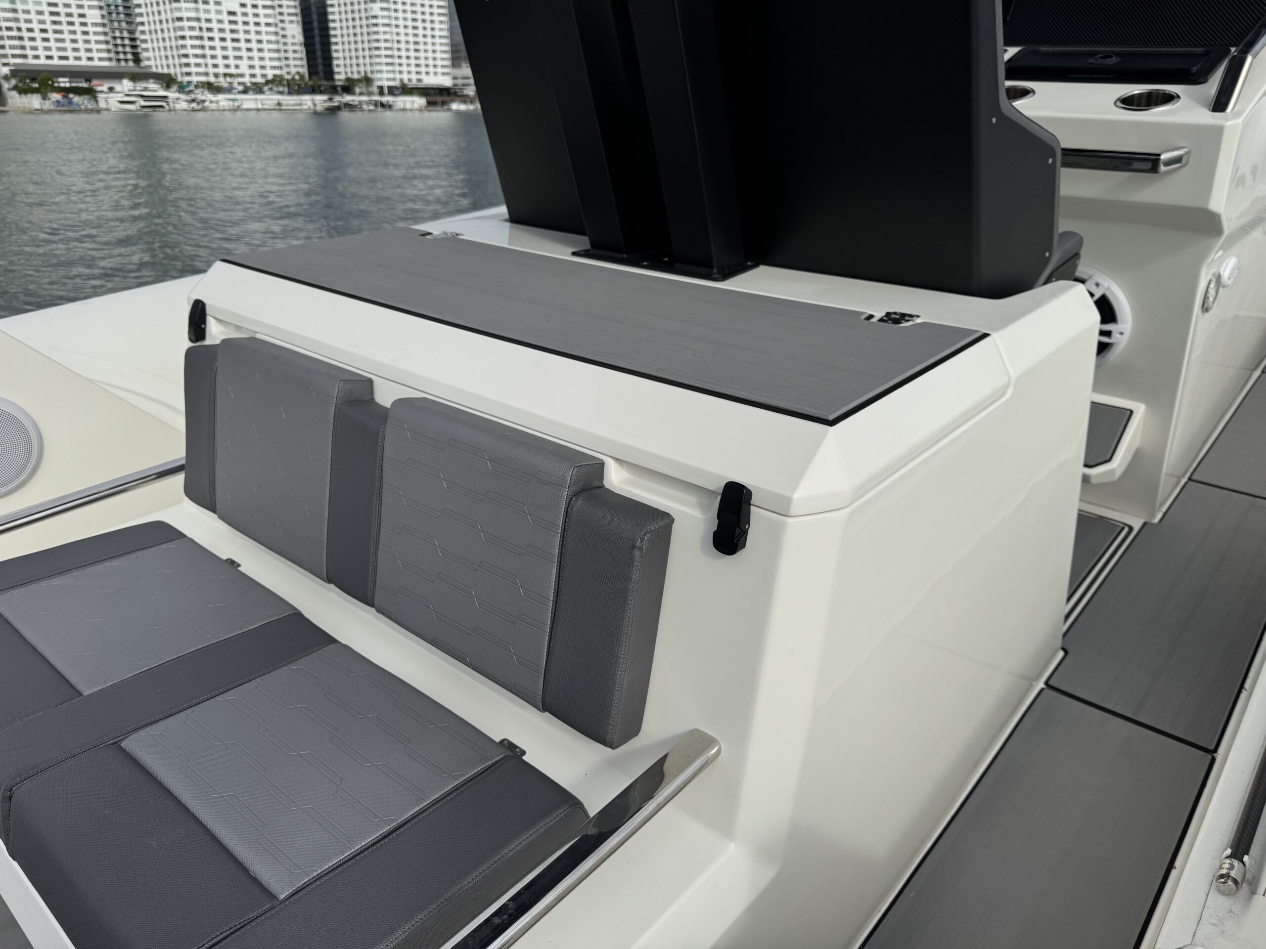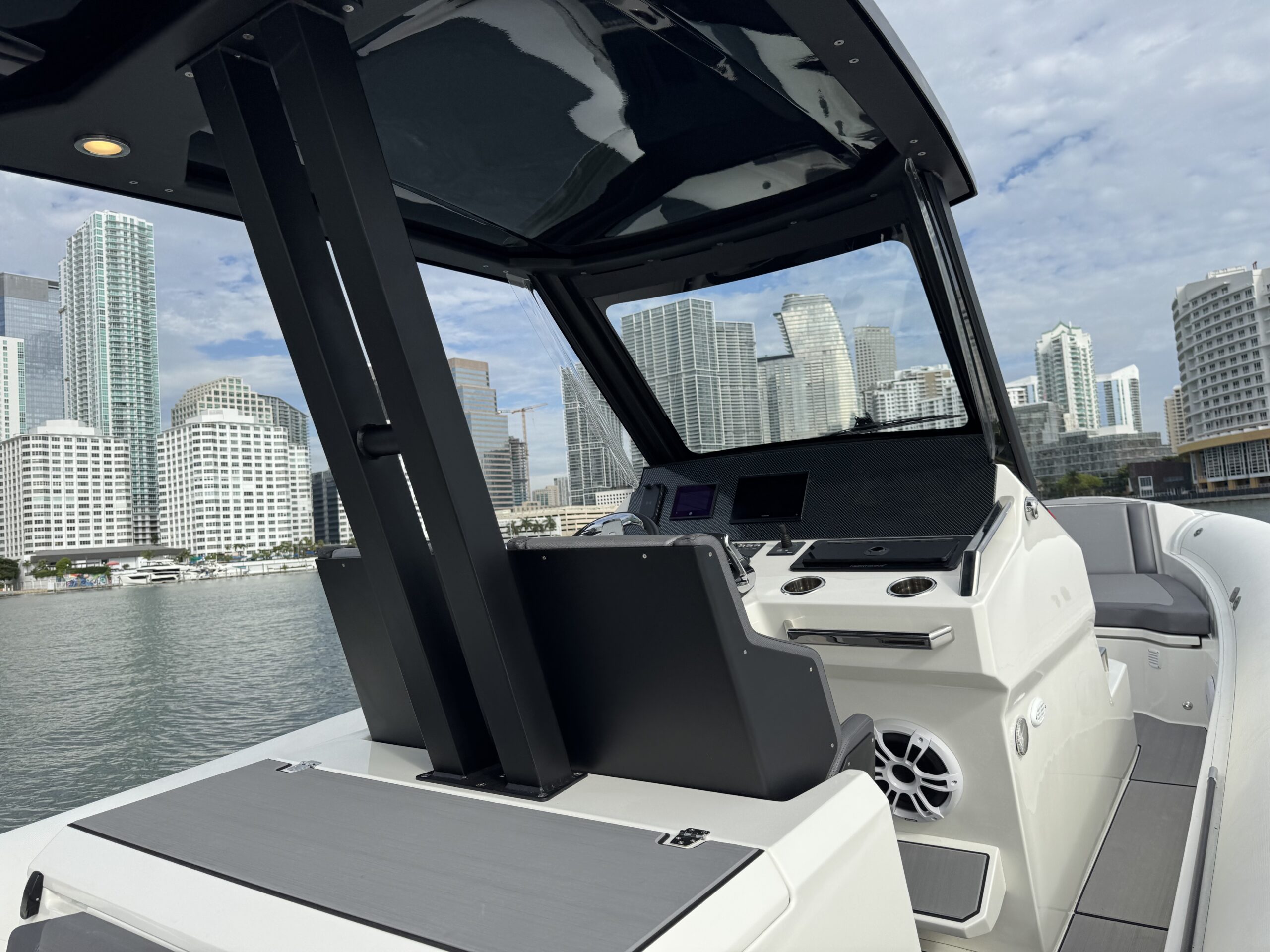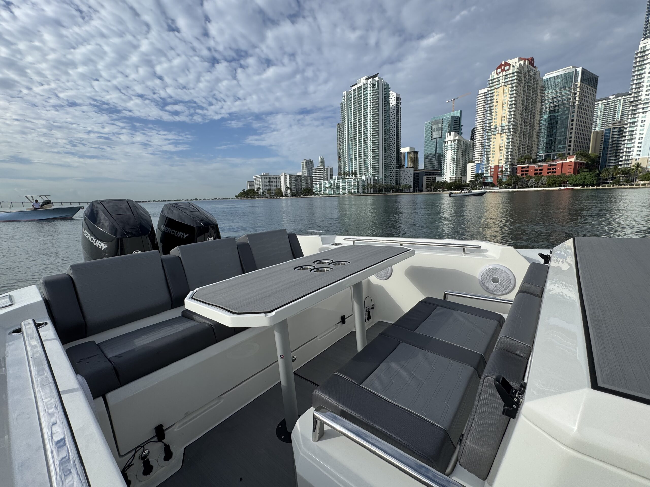 Loaded with impressive standard features, the Orion 10 includes Silvertex marine upholstery, large storage compartments, acrylic glove box with USB charging socket , twin flip-up seats, Hypalon tubes, hydraulic steering system, electrical plant with navigation lights and basic lighting, foldable table and fridge, automatic bilge pumps, tempered glass windshield, swim platform, stainless steel swim ladder, telescopic cleats and stainless steel console and aft seat grab handles, bow thruster, electric head