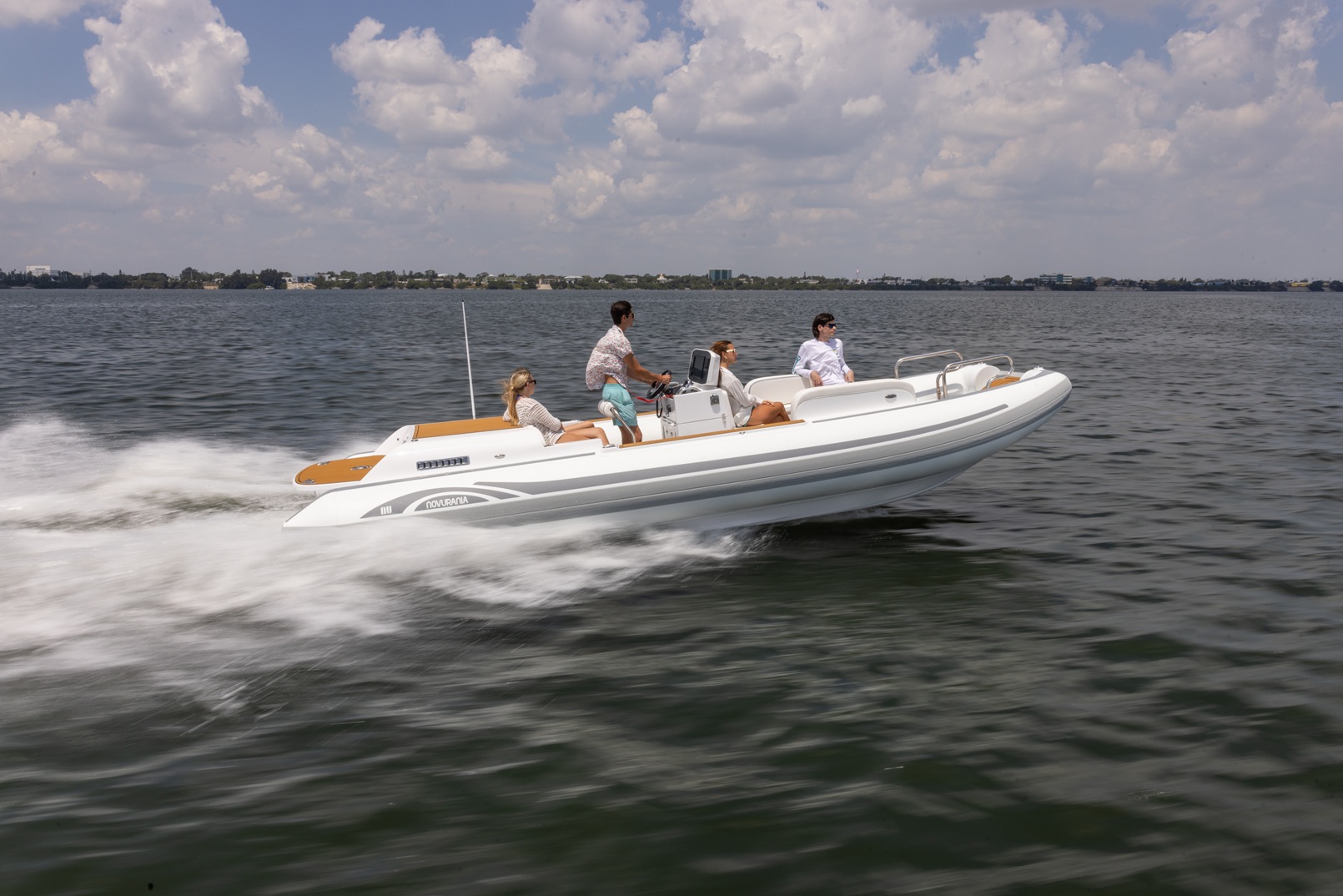 Novurania CAT 24 Tender from Inflatable Boat Pro - The Novurania CAT 24 Tender with its forward hydraulic landing craft door has an LOA or 20' and a beam of 8'6". Seating 10 people, and max of 250 HP Gas Outboard or 250hp Diesel Yanmar I/O, the Novurania CAT 24 from Inflatable Boat Pro is the perfect mix of style, functionality, and performance.