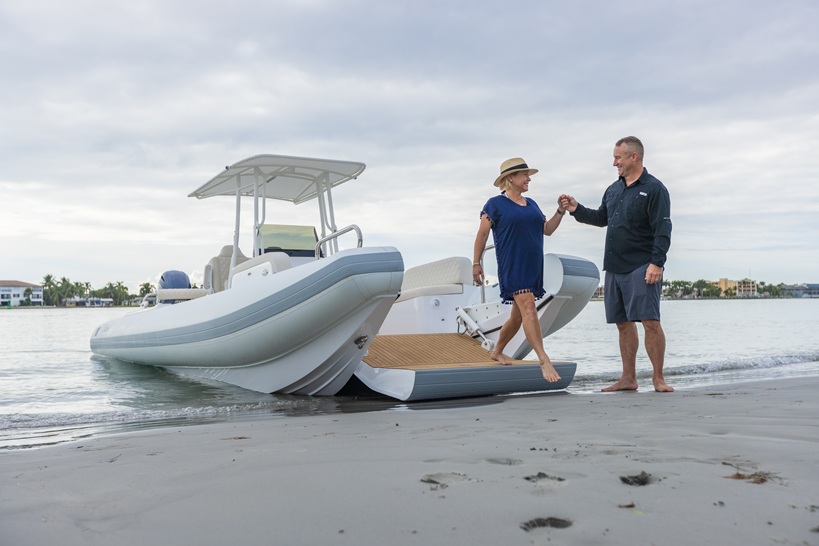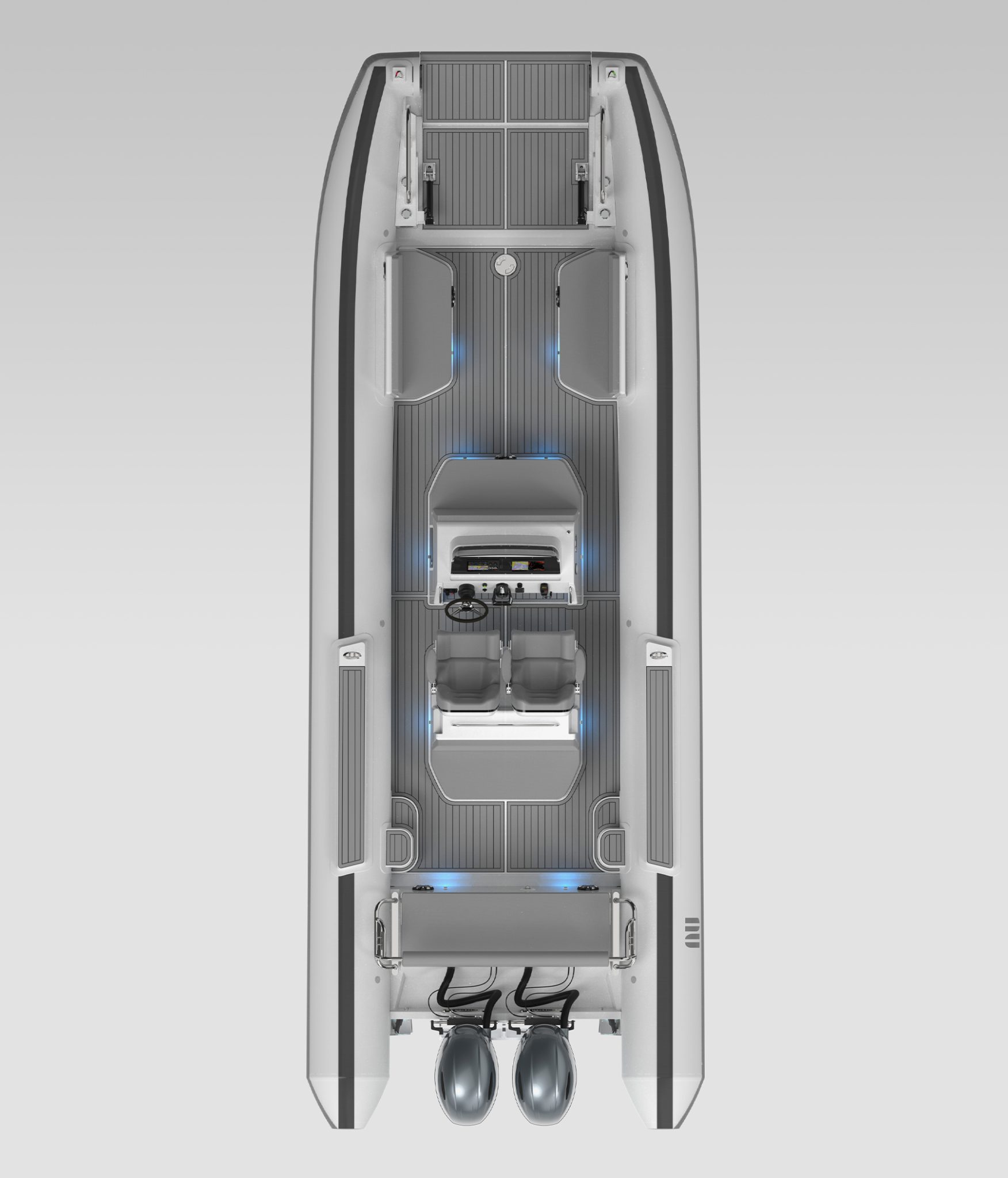 The Catamaran 28 is the biggest and most spacious model in the Series. The large forward deck area can carry people as well as equipment for your fun activities, like paddleboards, kayaks, bikes, and scuba diving gear. This tender is extremely versatile. You can customize it according to your usage preferences and needs.
