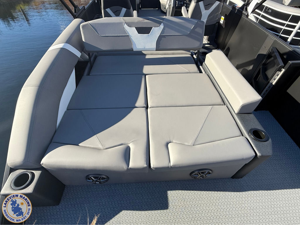 Two forward chaise loungers invite conversation, while the 7-position stern lounger delivers unmatched flexibility for hosting, relaxing, or soaking up the sun.