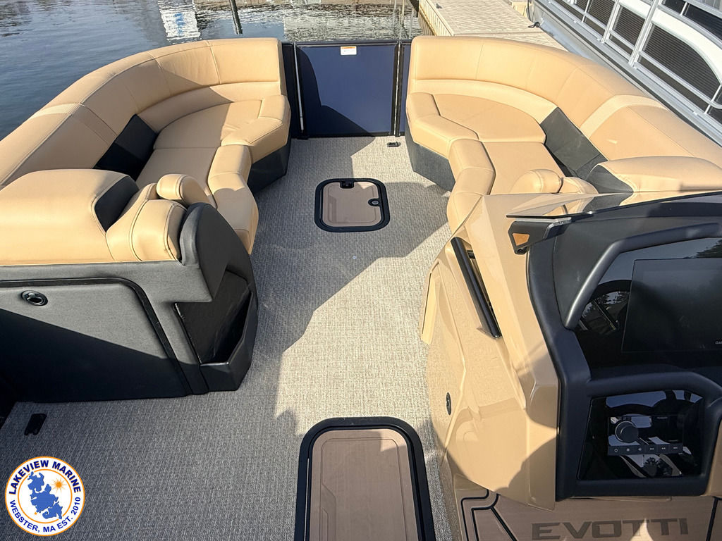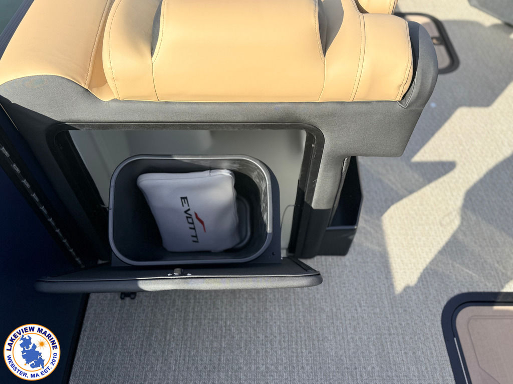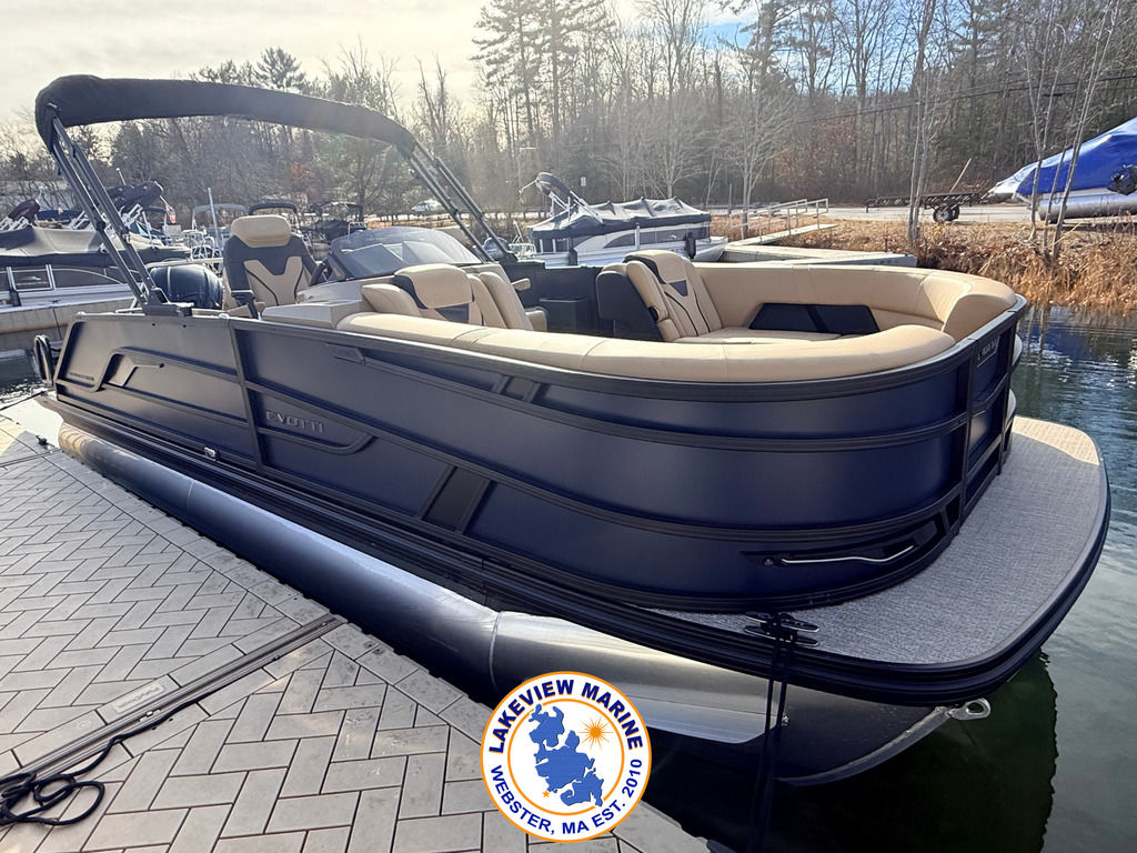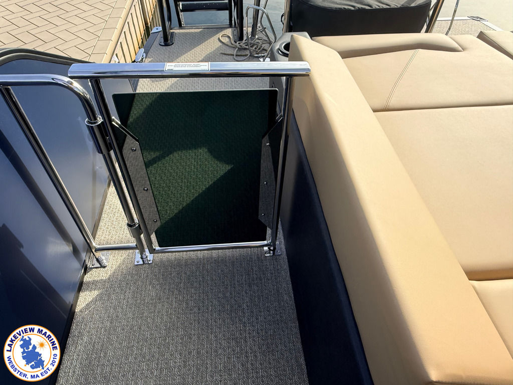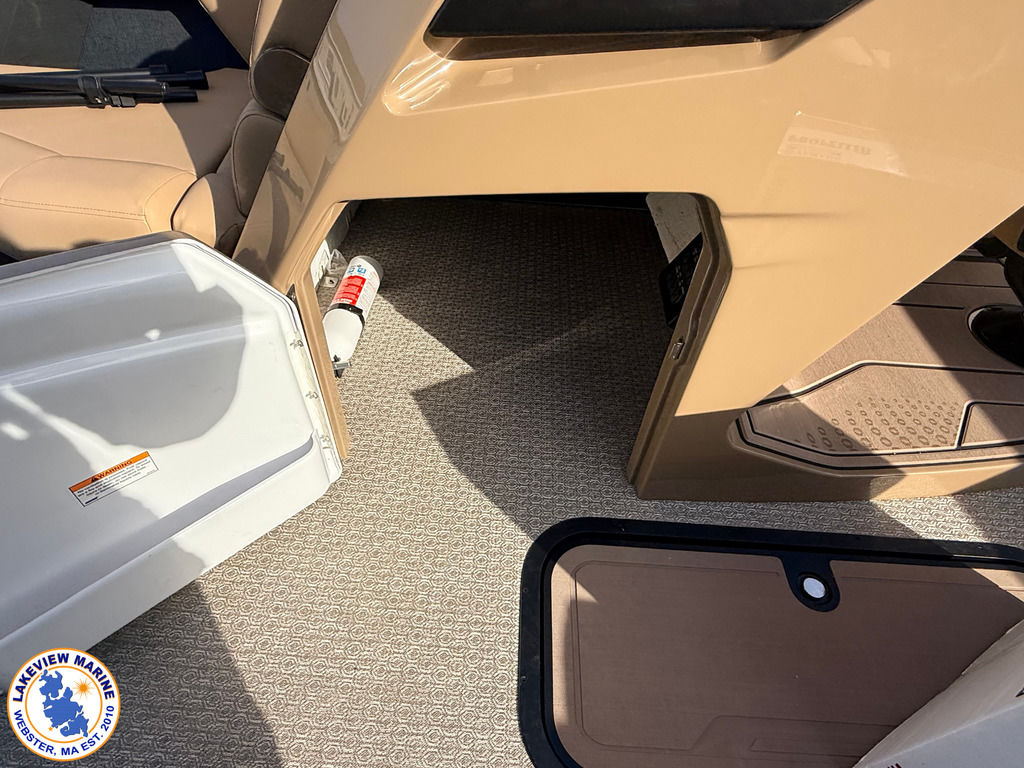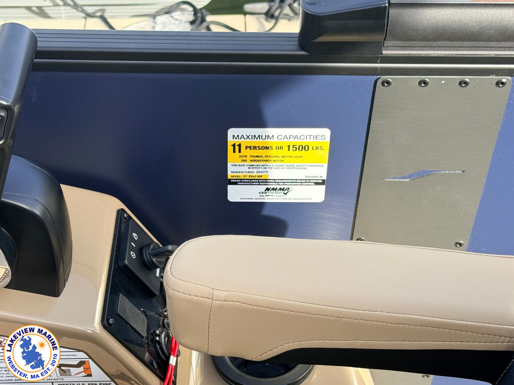 Powered by the 250hp Yamaha V-Max SHO, this Tritoon offers room for 11 passengers with two forward Chaise Loungers and a 7-Position Stern Lounger that delivers flexibility for hosting, relaxing or soaking up the sun. Features include Power Assist Steering, Flip-down Chaise Armrests, Blackout Rails, Power Bimini w/ Lights, Fiberglass Helm and In-Floor Bow Anchor Storage!