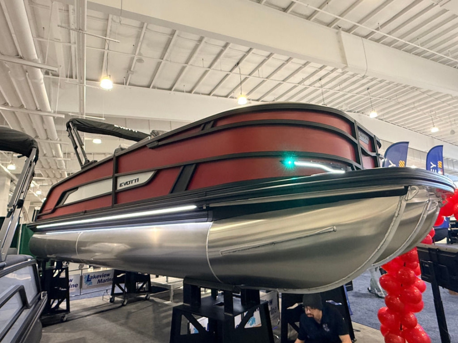 From bow to stern, every detail of the 700 Series from Evotti has been crafted with premium materials and modern design touches that elevate your time on the water. This Saltwater Editon Tritoon will be paired with the 200hp Yamaha engine and will feature 4 spacious Chaise Loungers and Co-Captain Seating, Power Assist Steering, 15" Ultra Wide Helm Display, Glass Windscreen, Black Lillipad Ladder, Docking Lights and RGB Lighting (Toe-Kick & Cups)