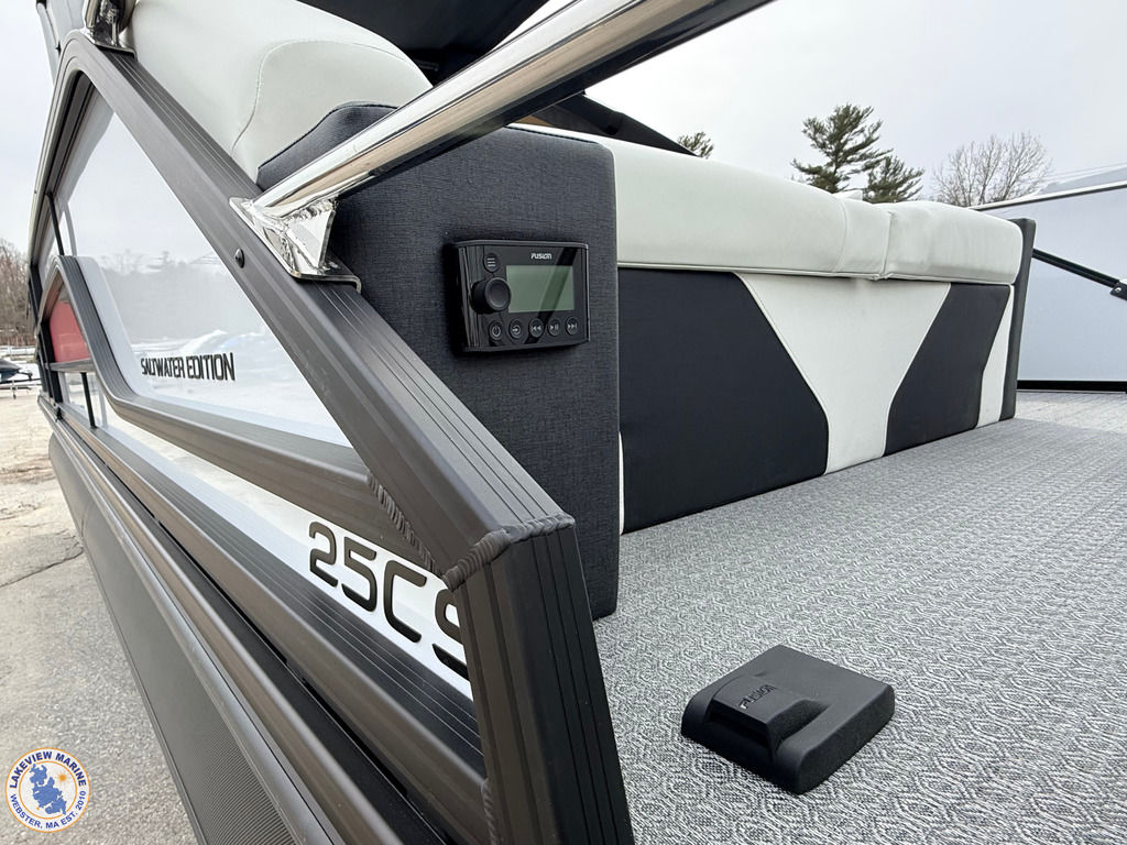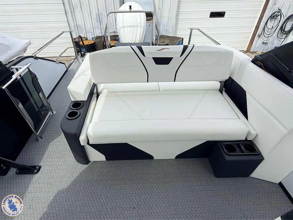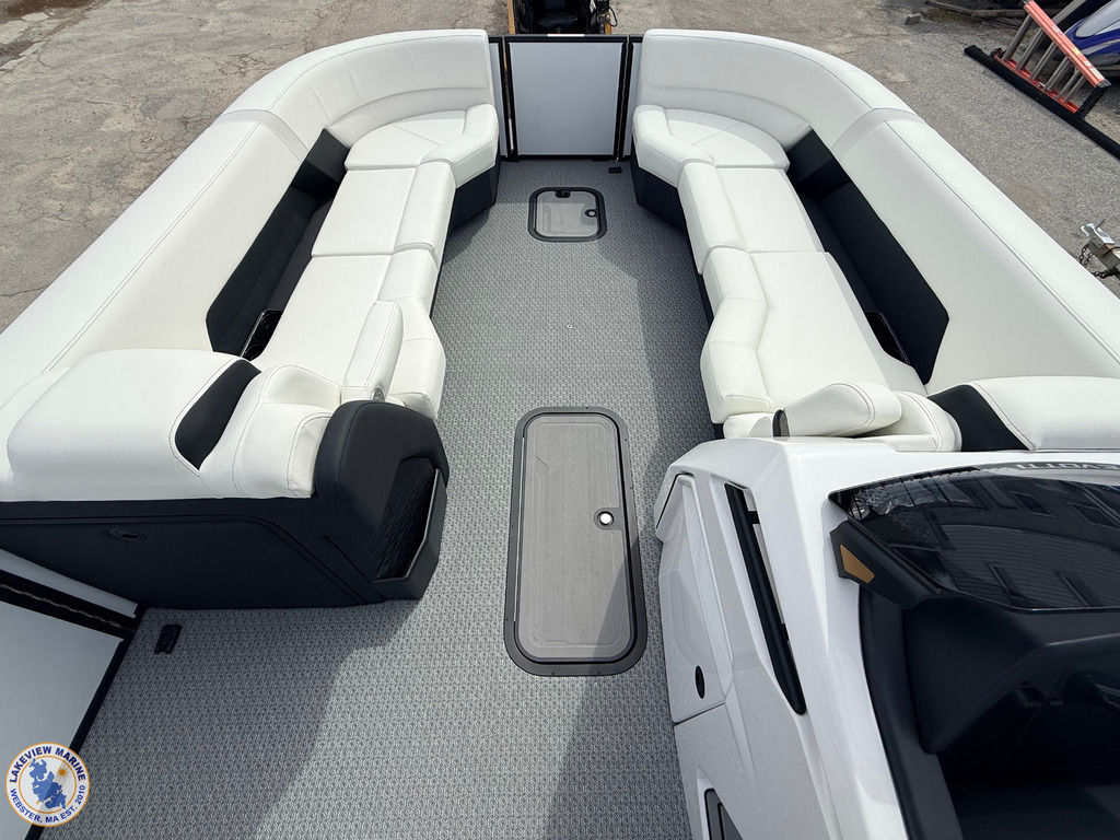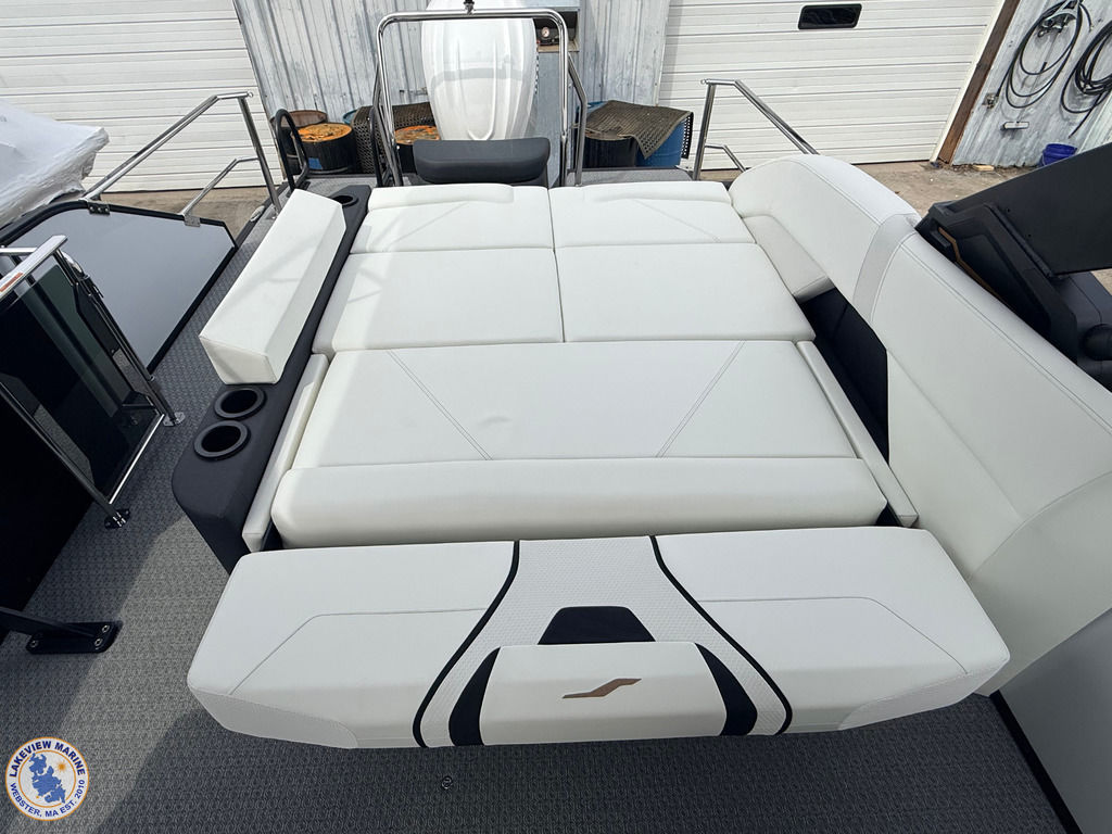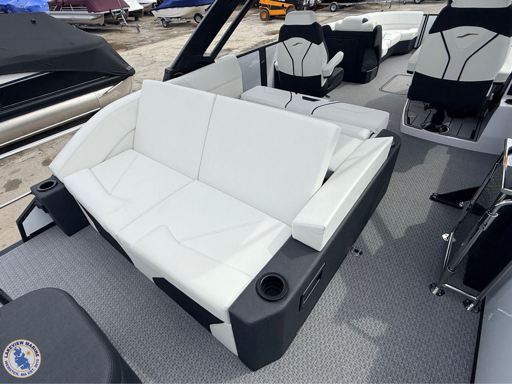 This 700 Series 25' Convertible Stern Tritoon is paired with the powerful Yamaha 350hp! Features include a freshly designed Power Arch with Integrated Fusion Speakers, Ghost White Interior, Steel Gray Evolution Flooring, 15" Ultra Wide Helm Display, Convertible Stern Rail System for added Safety, Exterior White Lighting Package and In-Floor Bow Anchor Storage!