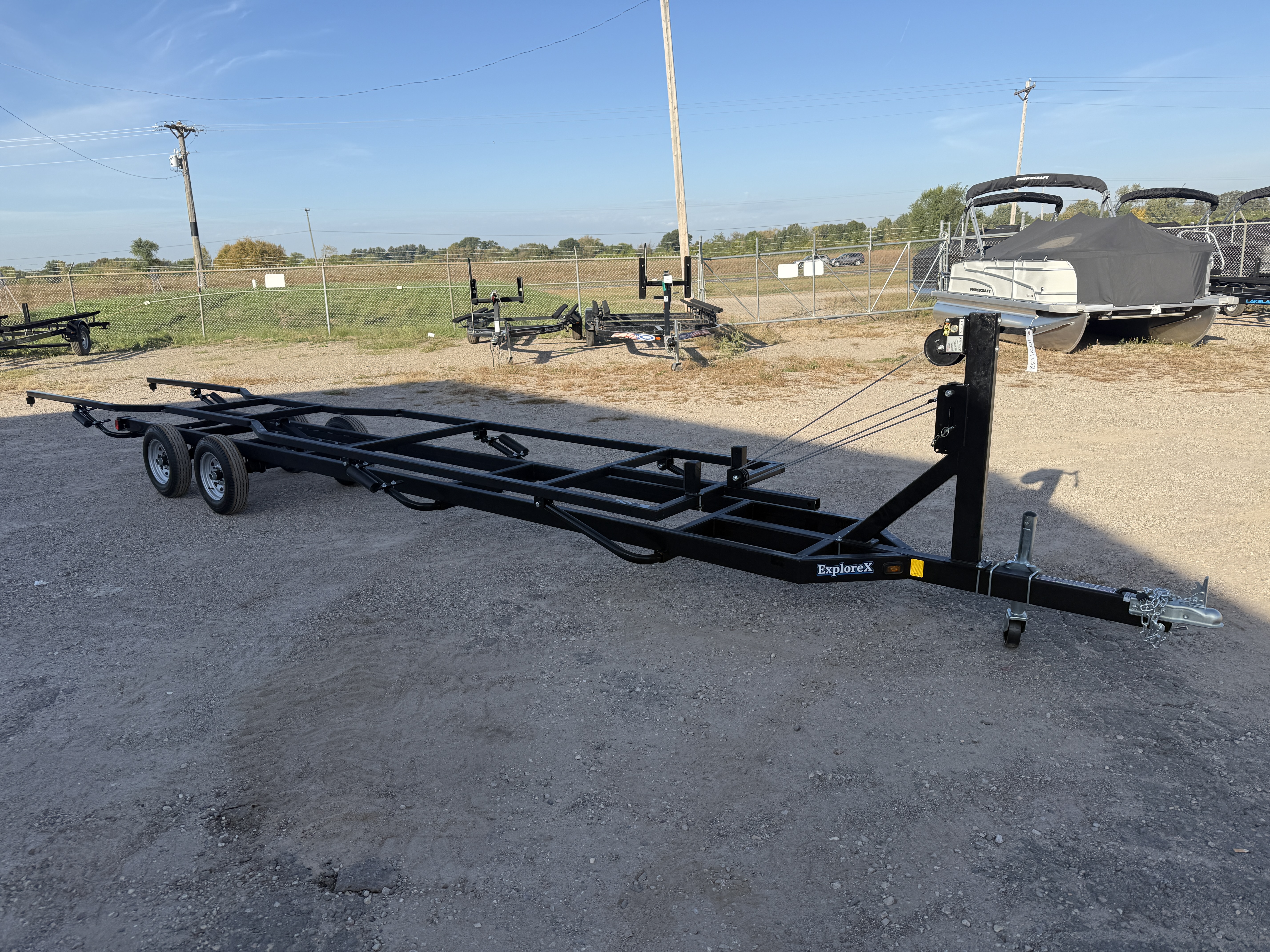 Reserve Yours Today! Only A Few Left In Stock. Brand New Explorer X Tandem Axle PL 21-23' Scissors Pontoon Trailers. Fits 21' up to 23' Long Pontoons. Has LED Lights, Guide Rollers, & Tongue Jack Is Included In Sale Price.