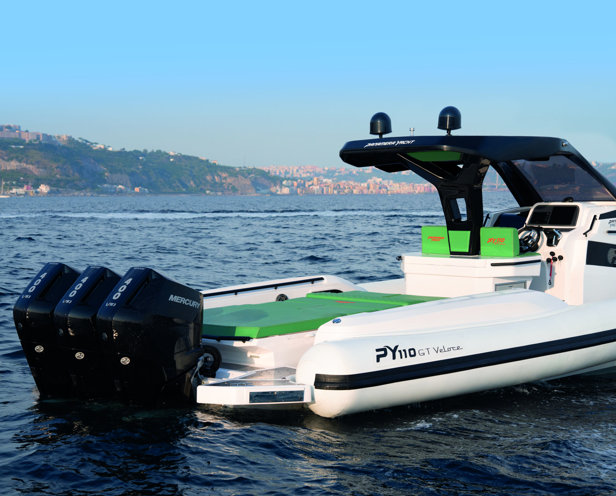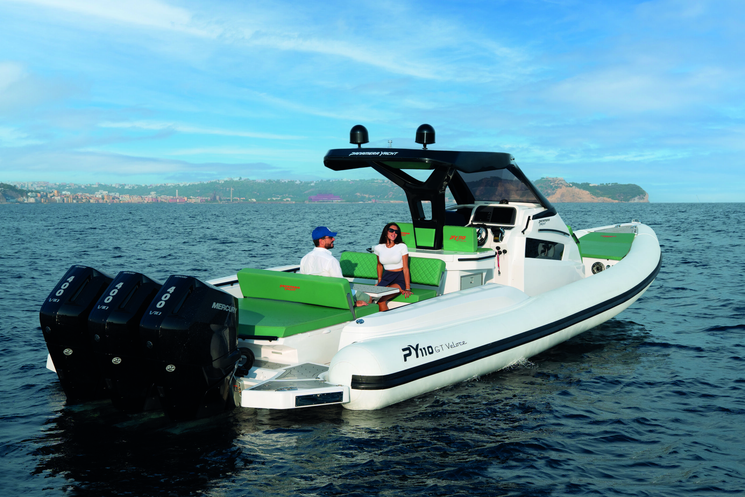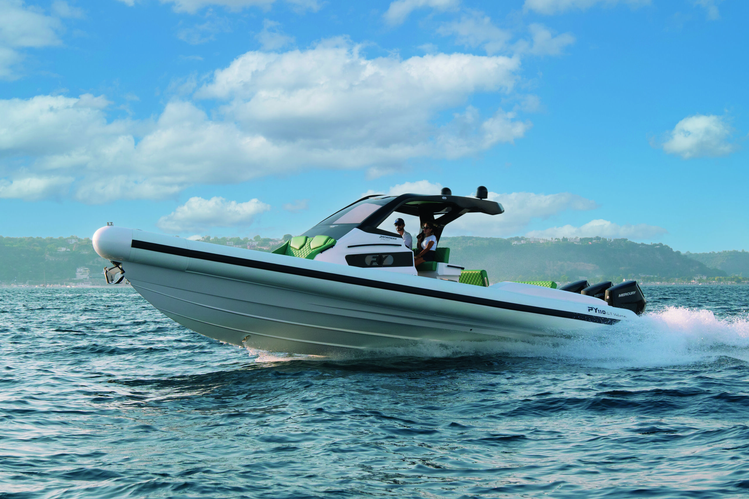 The Panamera PY 110 is a top-of-the-line 40-foot RIB that combines style, comfort, and performance in a single package. Made in Italy, this boat is powered by 3 350 outboard engines, providing a fast and powerful ride on the water.
