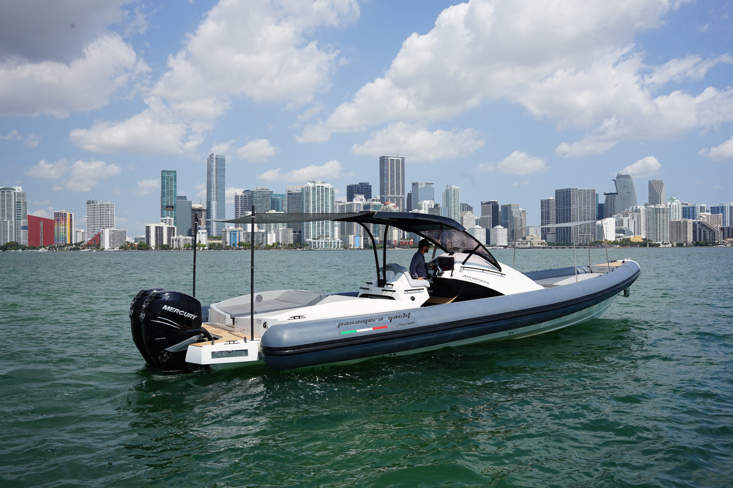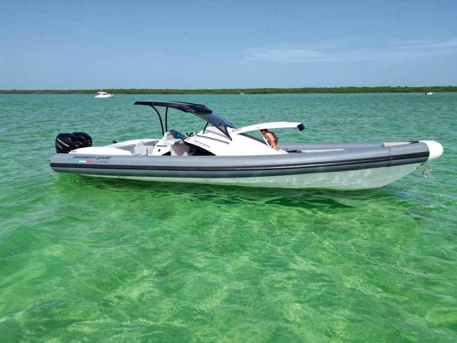 The Panamera PY 100 is a top-of-the-line 40-foot RIB that combines style, comfort, and performance in a single package. Made in Italy, this boat is powered by twin 350 outboard engines, providing a fast and powerful ride on the water.