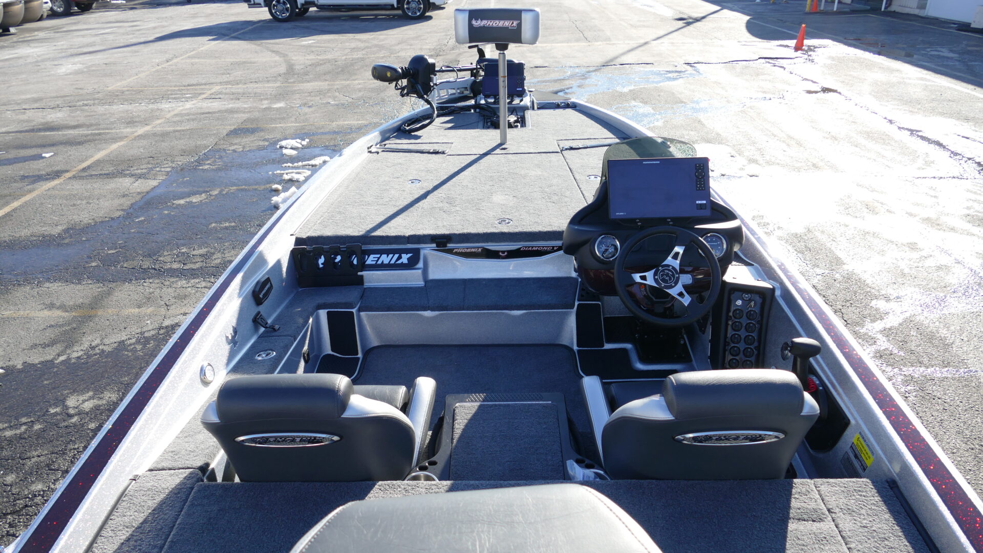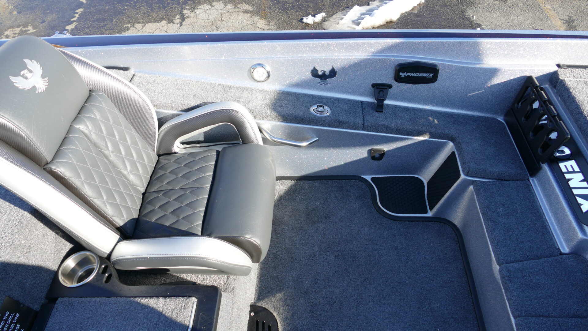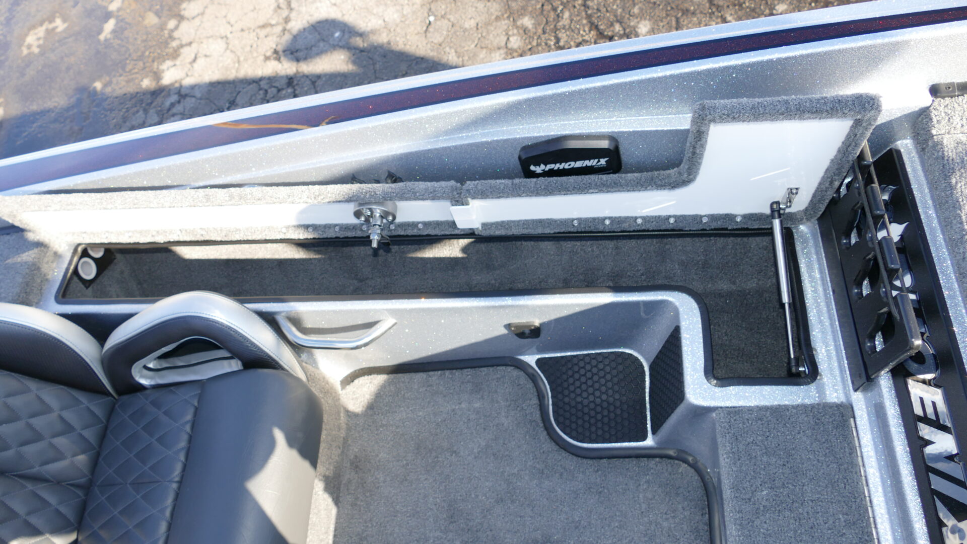 The all new 721 ZXL boasts a front deck that is 4” wider than the 721 Pro XP! The wider front deck allows the bow area to comfortably house up to 3 large screen electronics of your choice. Additionally, the 721 ZXL features an innovative 3-lid front deck layout which is comprised of two full-sized rod lockers and one completely re-designed, massive center storage box which can be accessorized with a sliding tackle system. While we have focused the attention of the 721 ZXL on the newly designed deck, Phoenix Boats customers can still experience the same high-speed performance hull that they have grown to love from the 721 Pro XP. The 721 ZXL utilizes the same running surface as the 721 Pro XP because everyone at Phoenix believes we got it right the first time!