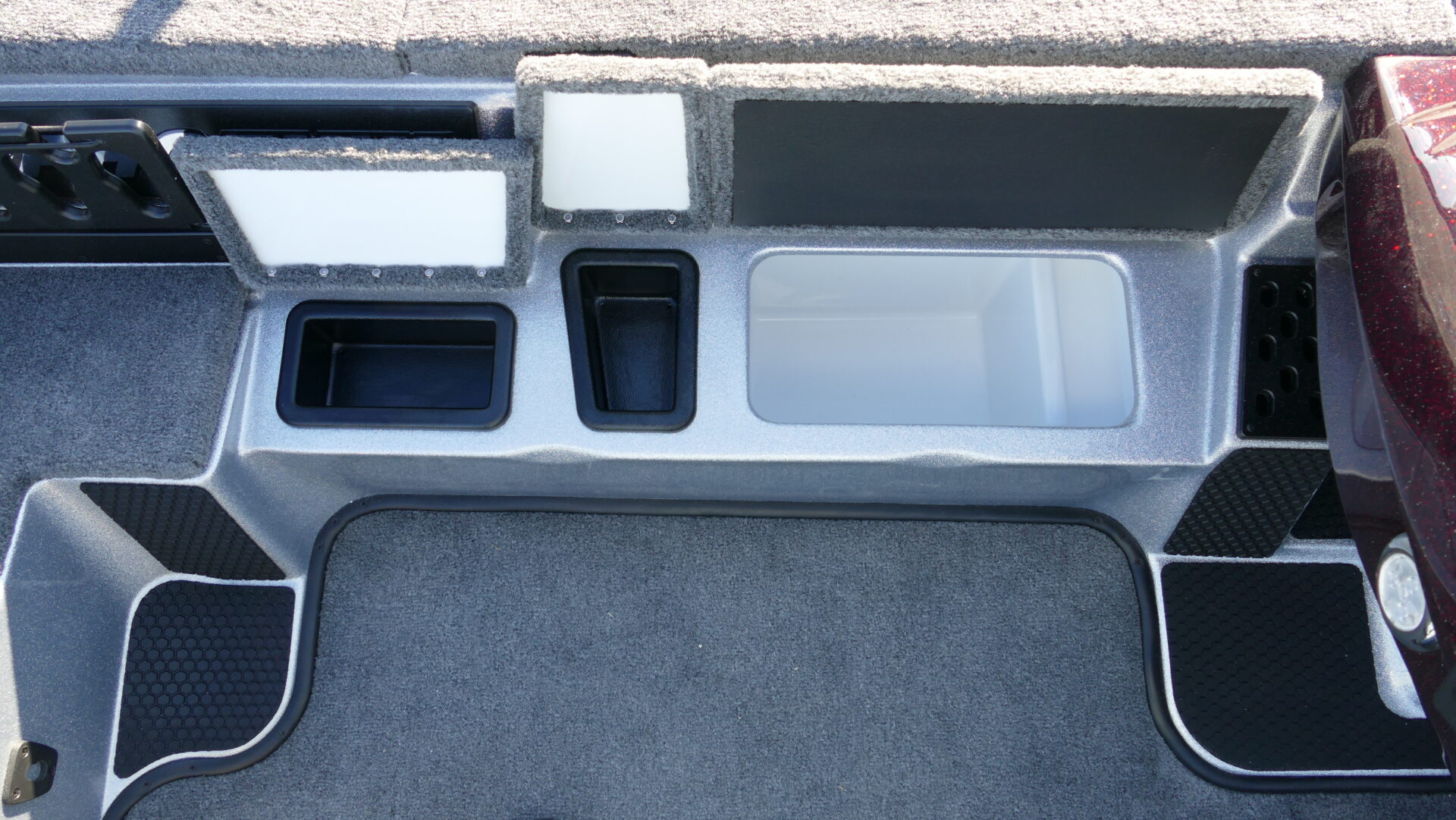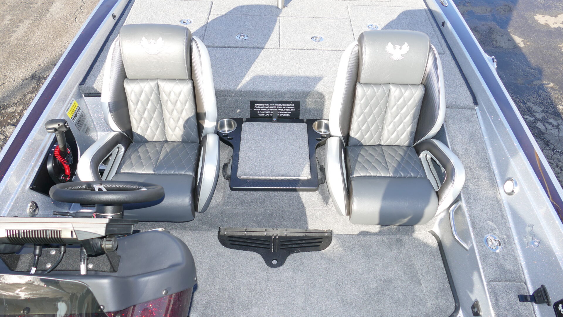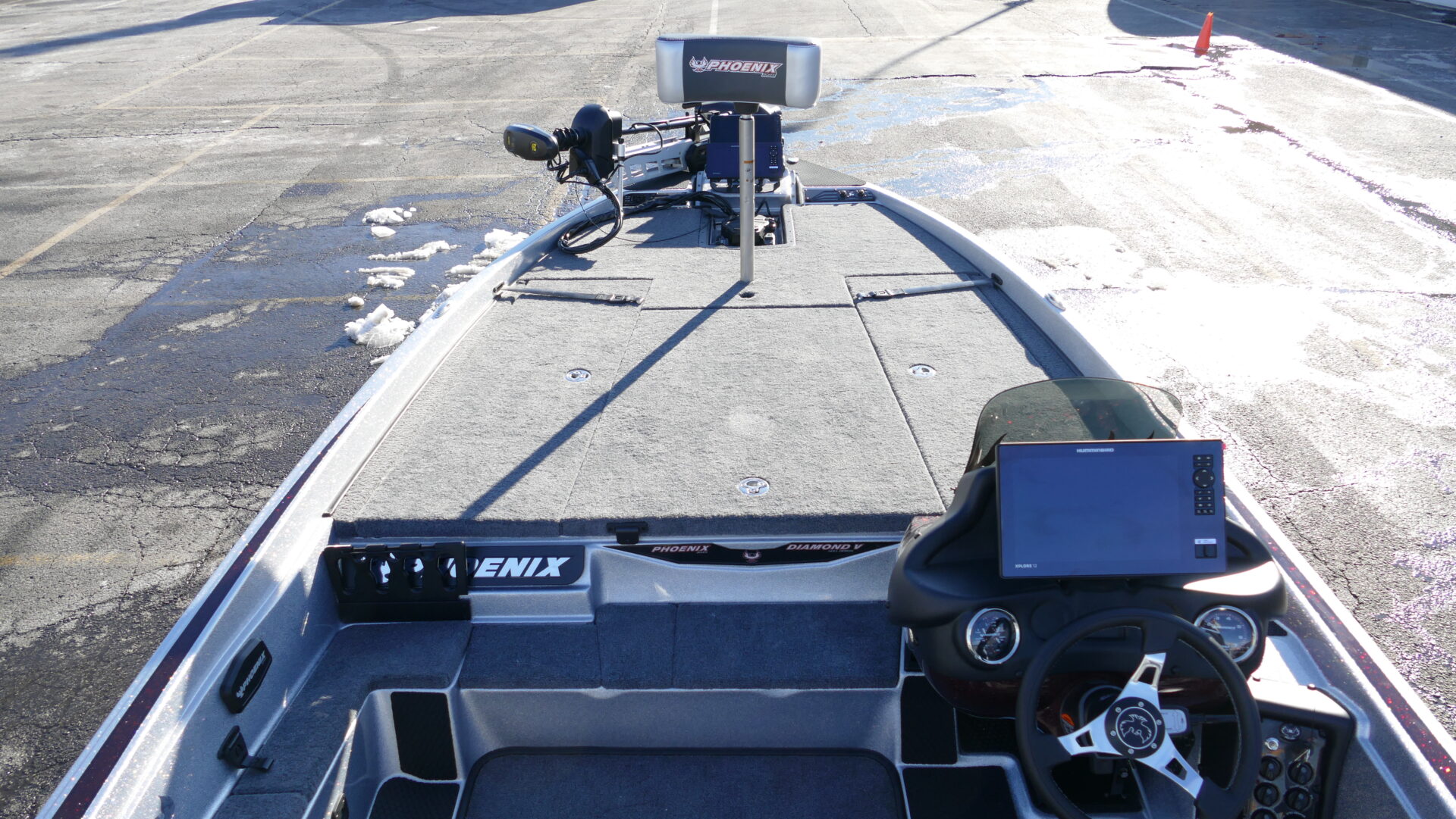 The all new 721 ZXL boasts a front deck that is 4” wider than the 721 Pro XP! The wider front deck allows the bow area to comfortably house up to 3 large screen electronics of your choice. Additionally, the 721 ZXL features an innovative 3-lid front deck layout which is comprised of two full-sized rod lockers and one completely re-designed, massive center storage box which can be accessorized with a sliding tackle system. While we have focused the attention of the 721 ZXL on the newly designed deck, Phoenix Boats customers can still experience the same high-speed performance hull that they have grown to love from the 721 Pro XP. The 721 ZXL utilizes the same running surface as the 721 Pro XP because everyone at Phoenix believes we got it right the first time!