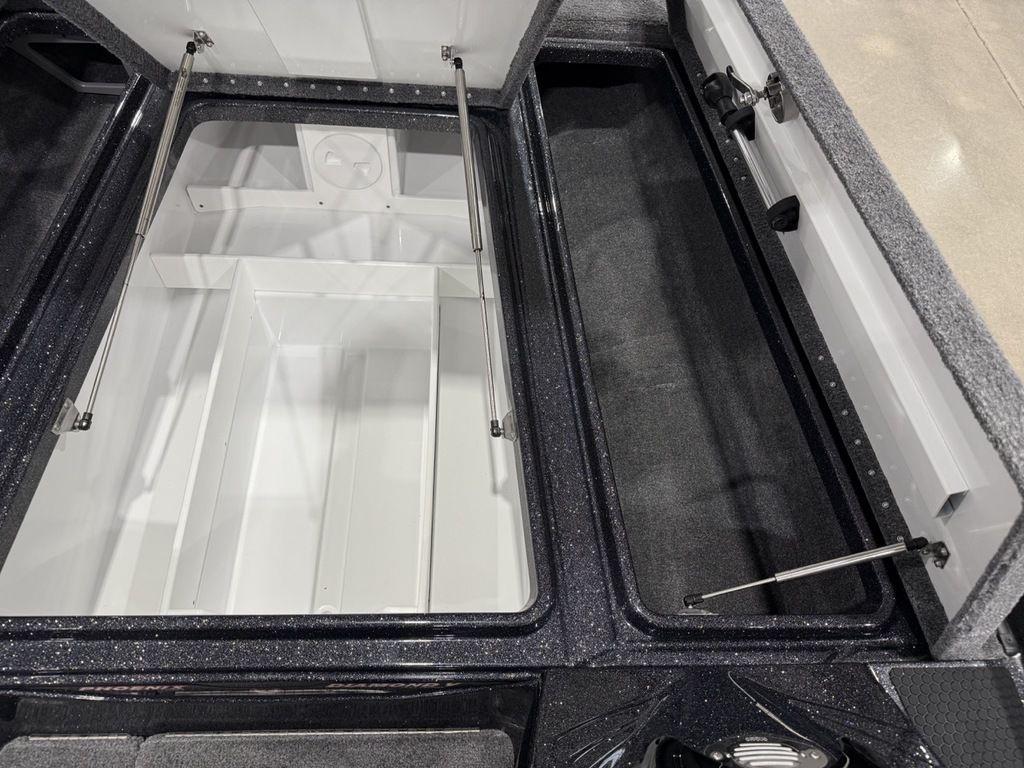 The 721 ZXL boasts a front deck that is 4” wider than the 721 Pro XP! The wider front deck allows the bow area to comfortably house up to 3 large screen electronics of your choice. Additionally, the 721 ZXL features an innovative 3-lid front deck layout which is comprised of two full-sized rod lockers and one completely re-designed, massive center storage box which can be accessorized with a sliding tackle system.