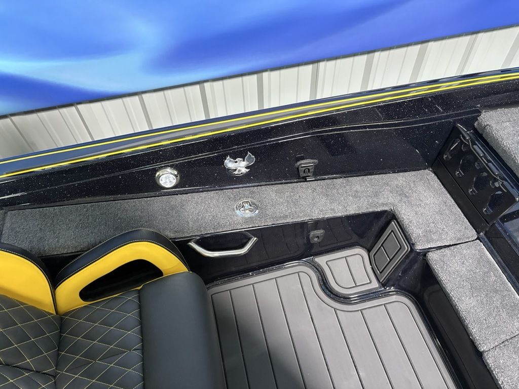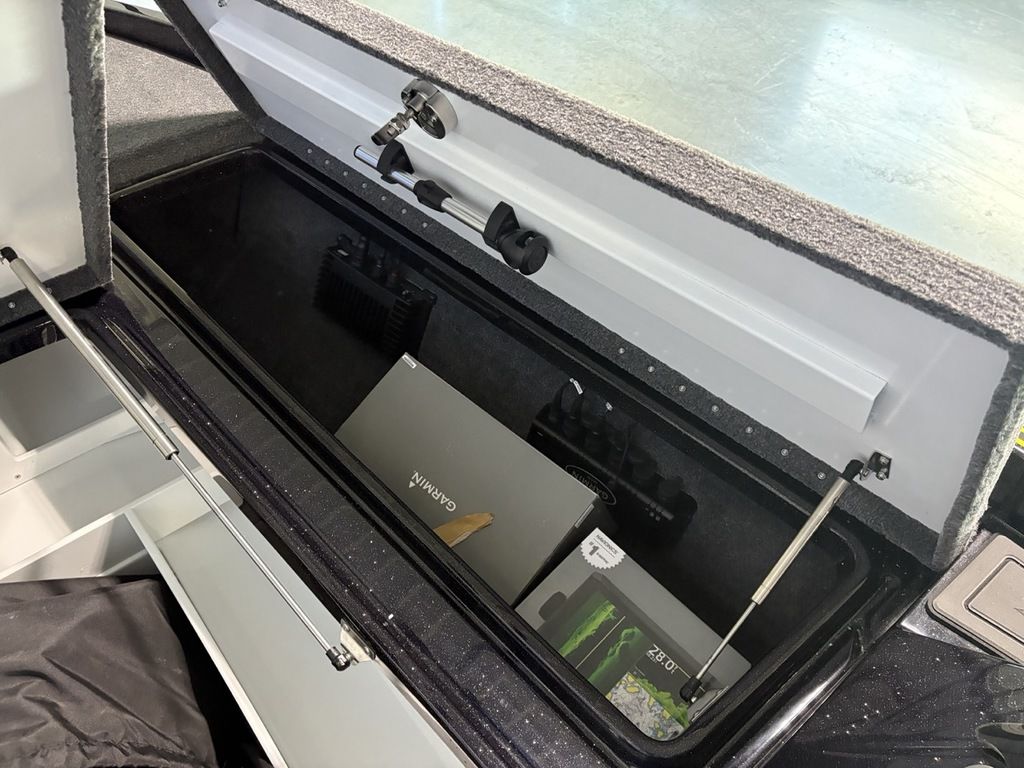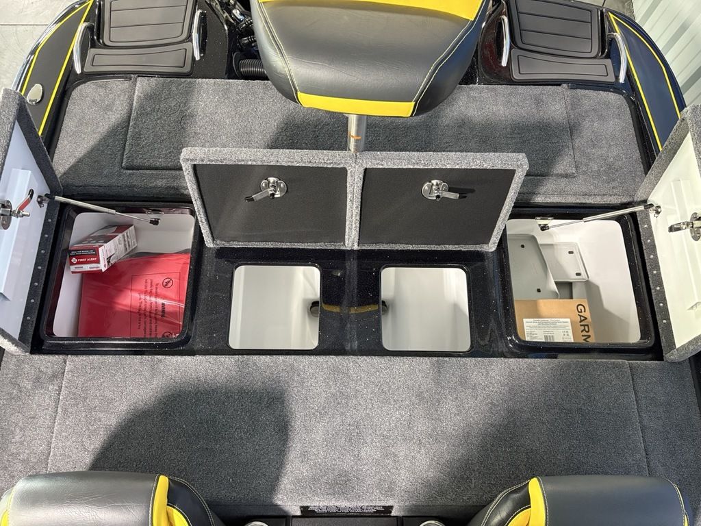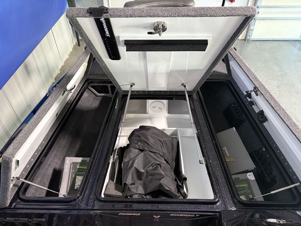 The 721 ZXL boasts a front deck that is 4” wider than the 721 Pro XP! The wider front deck allows the bow area to comfortably house up to 3 large screen electronics of your choice. Additionally, the 721 ZXL features an innovative 3-lid front deck layout which is comprised of two full-sized rod lockers and one completely re-designed, massive center storage box which can be accessorized with a sliding tackle system.