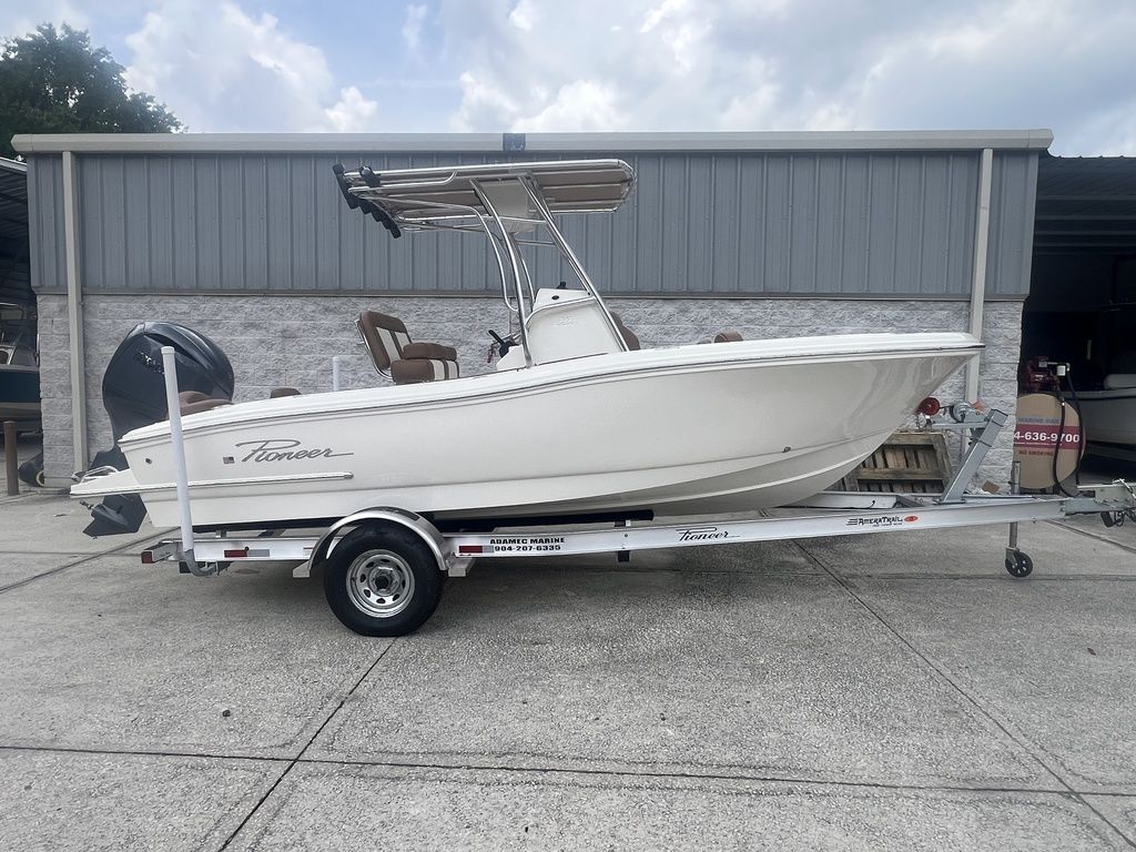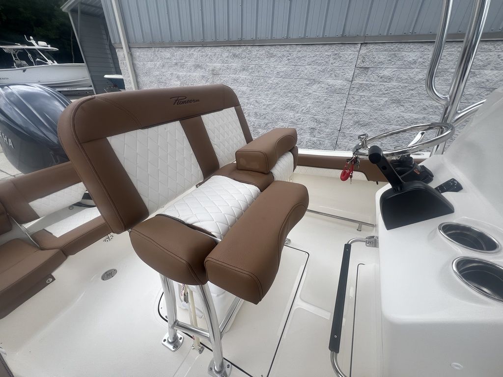 The 2026 Pioneer 202?Islander, powered by a rugged Yamaha 150HP outboard, represents the ultimate blend of versatility, comfort, and performance for anglers, families, and weekend explorers alike. At just over 20 feet long, this versatile bay boat features a smart, open-concept layout that seamlessly adapts from serious fishing to relaxed cruising. The thoughtfully designed foredeck includes a spacious casting platform with integrated rod holders and a lockable anchor locker, while the aft deck offers roomy jump seats with cushioned tops and stowage underneath—perfect for quick snap-on seating when entertaining or hauling gear. The helm station exudes modern functionality, with a stylish fiberglass console that accommodates large electronics (up to 12 inch screens), and recessed dry storage. A deluxe leaning post features additional rod storage and a built-in tackle tray, keeping everything anglers need within easy reach. Beneath the waterline, the 2026 202 Islander delivers crisp, confident handling thanks to its solid, hand-laid fiberglass hull and shallow-gaff chine design. Coupled with the reliable Yamaha 150, it offers brisk acceleration, smooth planing, and excellent fuel efficiency—delivering hours of enjoyable, economical cruising around coastal estuaries or inland lakes. Other standout features include courtesy lighting throughout the deck, a freshwater washdown, twin livewells, a VHF radio console tray, storage lockers for tackle and fenders, and rugged stainless-steel hardware throughout. With its sleek styling, smart layout, and dependable Yamaha power, the 2026 Pioneer 202?Islander is a no-compromise platform—equally at home chasing redfish in the bay, pulling the kids on a tube, or simply cruising with friends and family.