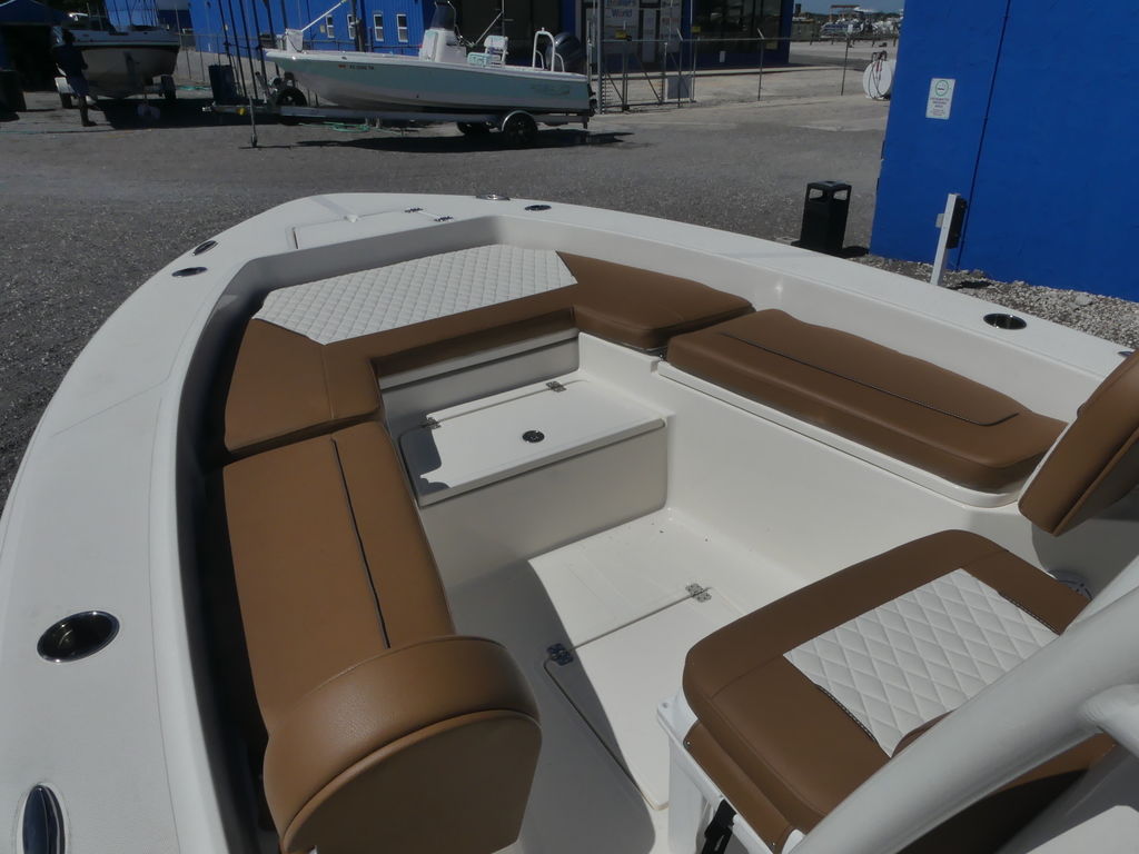 As the flagship of the series, the 22-foot Bay Sport 220 provides generous space and amenities for family recreation, including comfortable seating and ample storage for gear and supplies. Its design ensures a smooth and dry ride, enhancing the overall boating experience. For fishing enthusiasts, the Bay Sport 220 is equipped with twin live wells (15 gallons forward and 30 gallons aft), insulated fish boxes, and a large casting deck, making it a formidable fishing platform capable of handling both inshore and offshore excursions.
