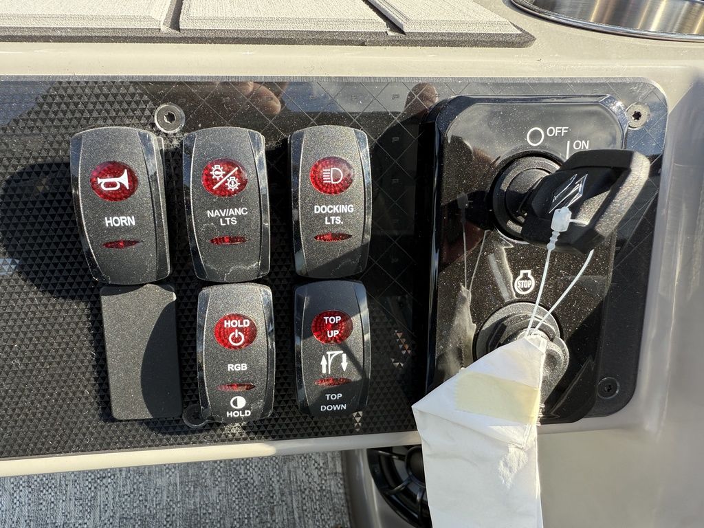Quick Fit Mooring Cover, Power Bimini Top, Raised Driver's Helm, Full Instrumentation w/Engine Hour Meter, LED Ski-Tow, 6 Speaker AM/FM Bluetooth Stereo w/RGB Speaker Lighting, In-Floor Ski Locker, Hydraulic Steering System, Soft Touch Vinyl Seating, LED Docking Lights and PTX Triple Tube Package.Trailer Not Included.